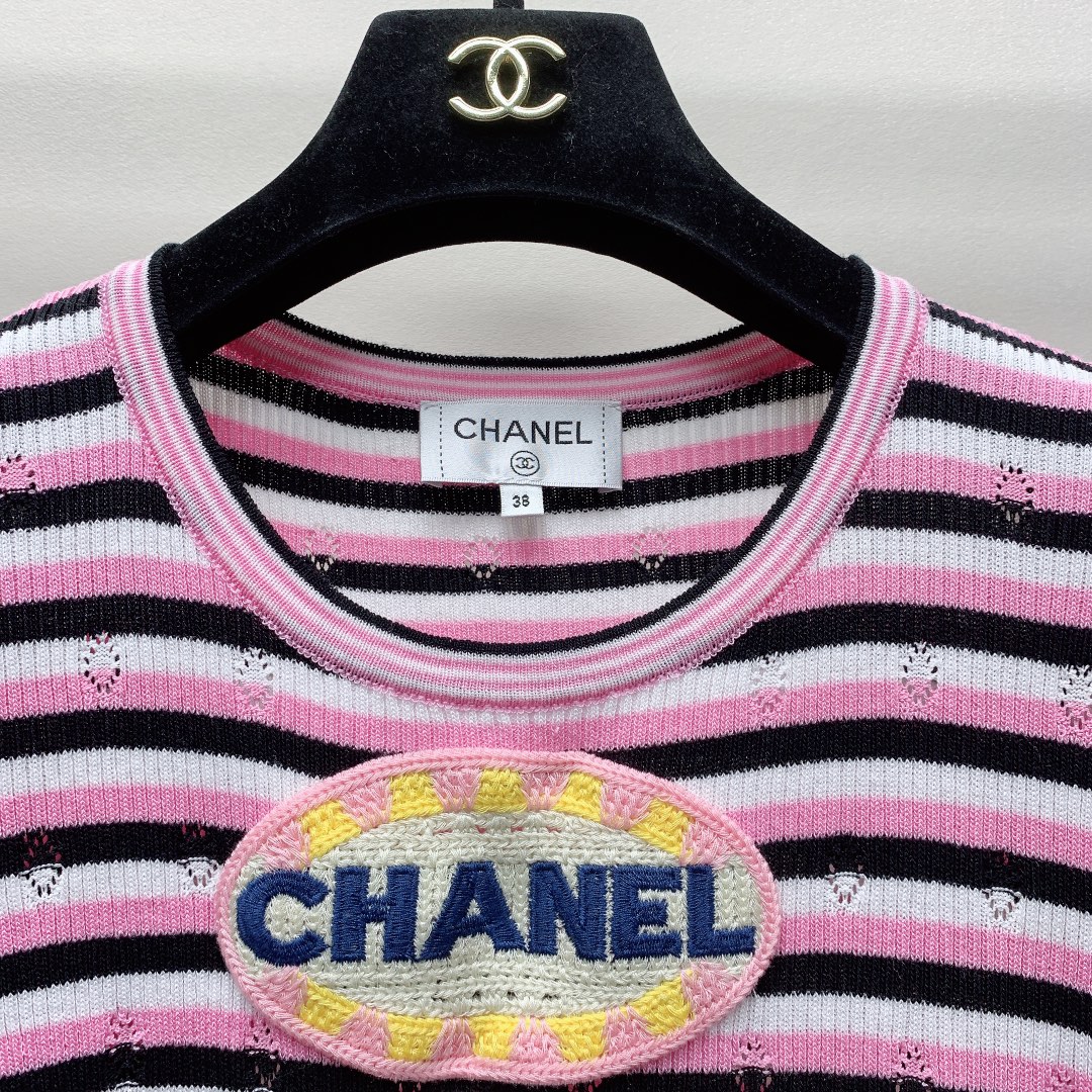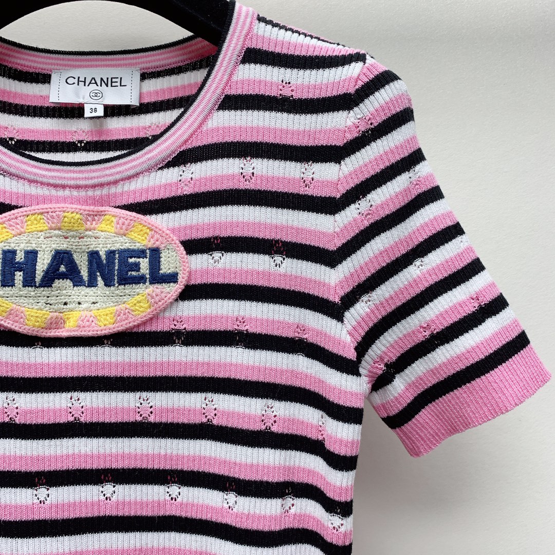 ~春夏新款圆领刺绣条纹针织毛衣短袖SML