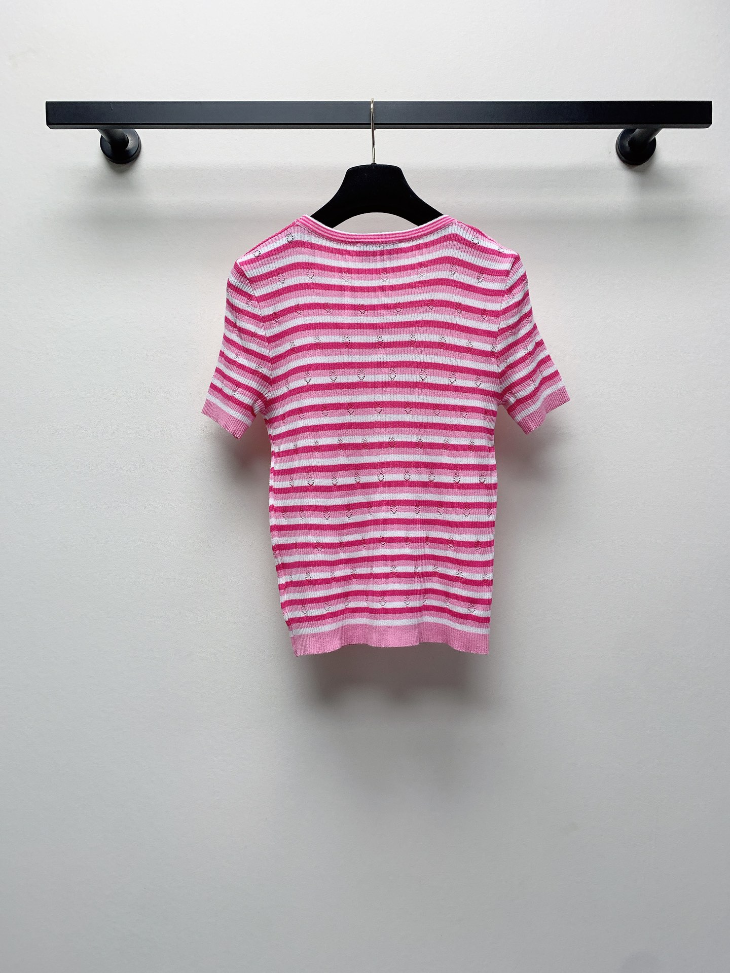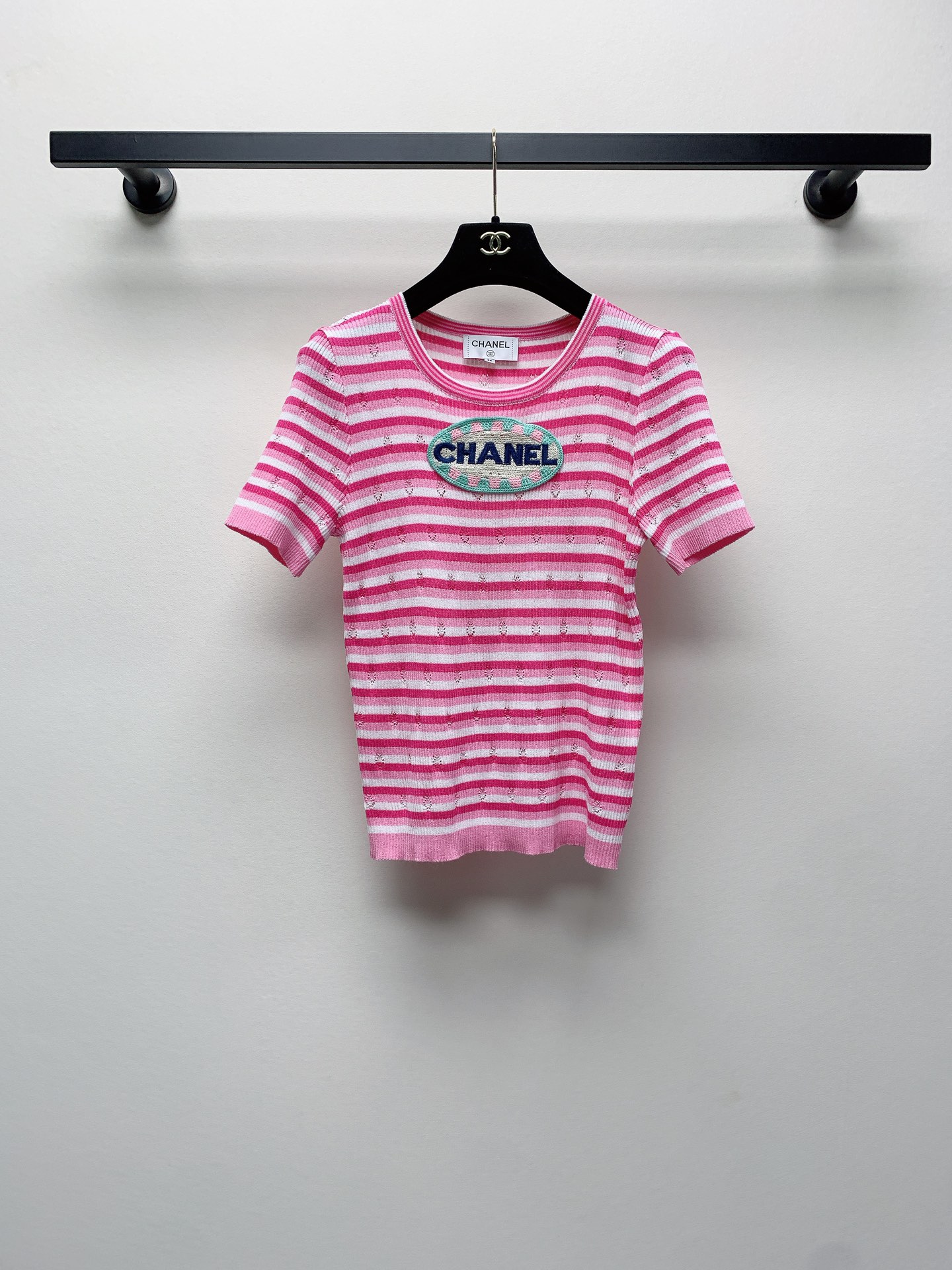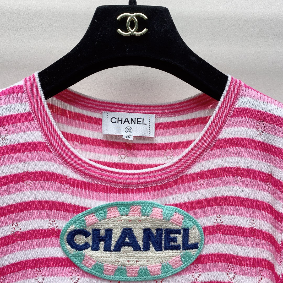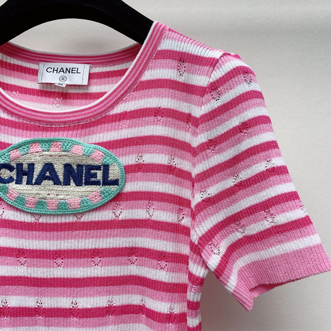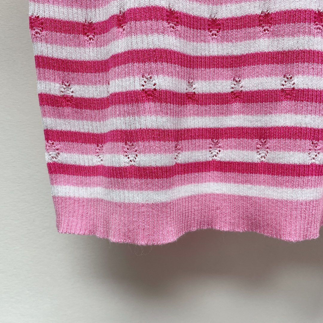 ~春夏新款圆领刺绣条纹针织毛衣短袖SML
