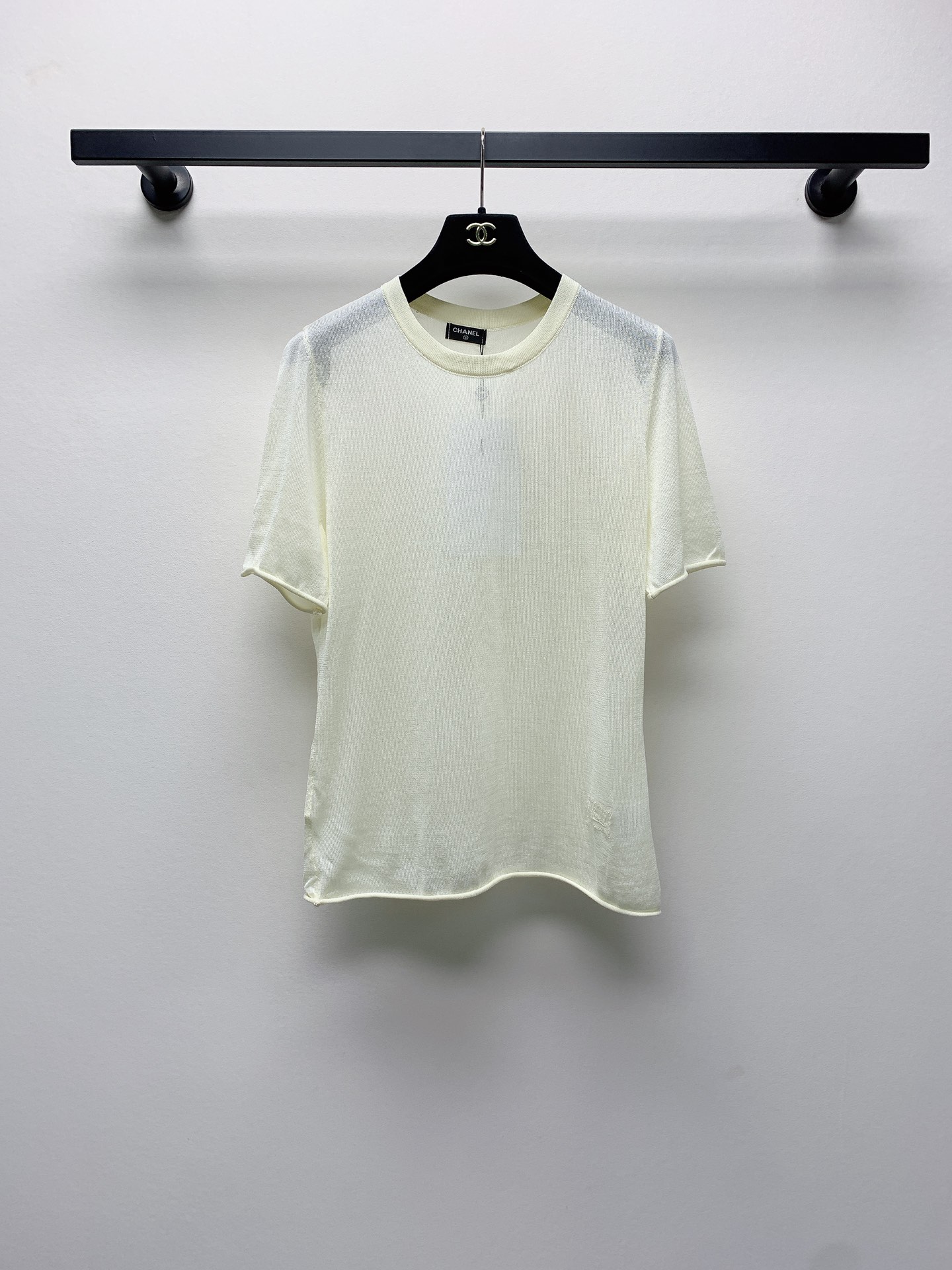~春夏新款圆领卷边刺绣针织毛衣短袖SML