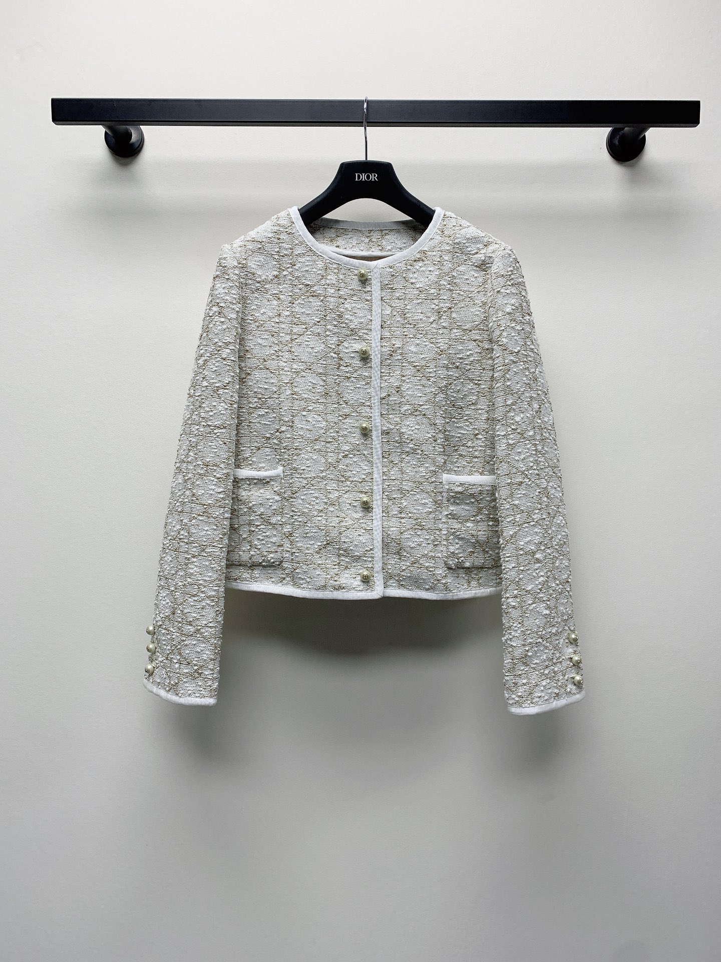 ~春夏新款圆领定制扣子格纹金丝小香外套SML