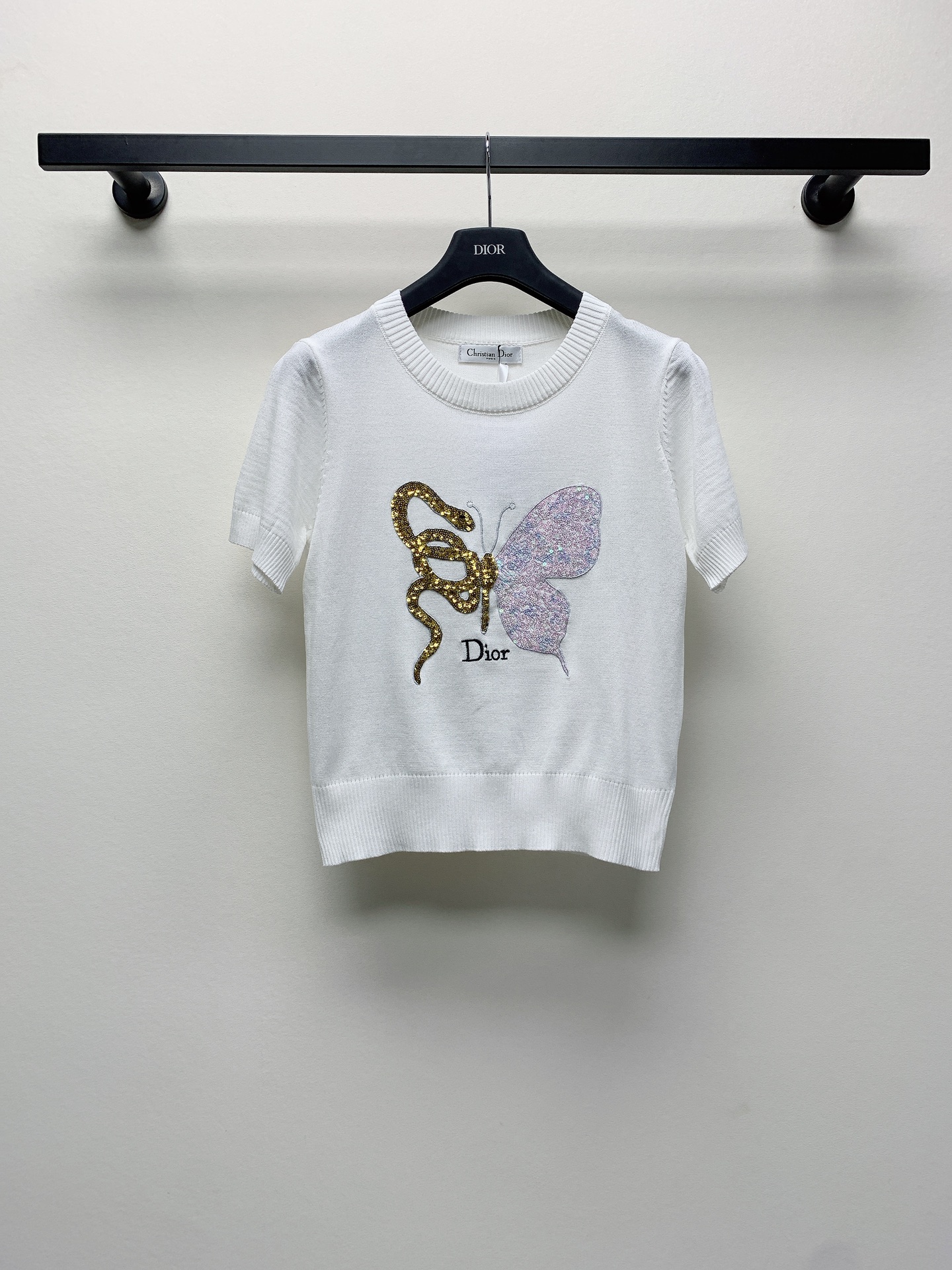 ~春夏新款圆领蛇年限定蝴蝶针织毛衣短袖SML