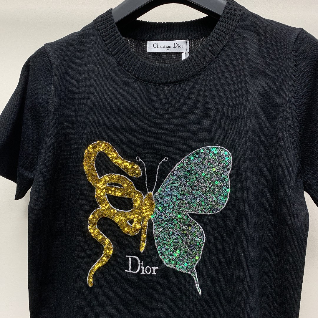 ~春夏新款圆领蛇年限定蝴蝶针织毛衣短袖SML