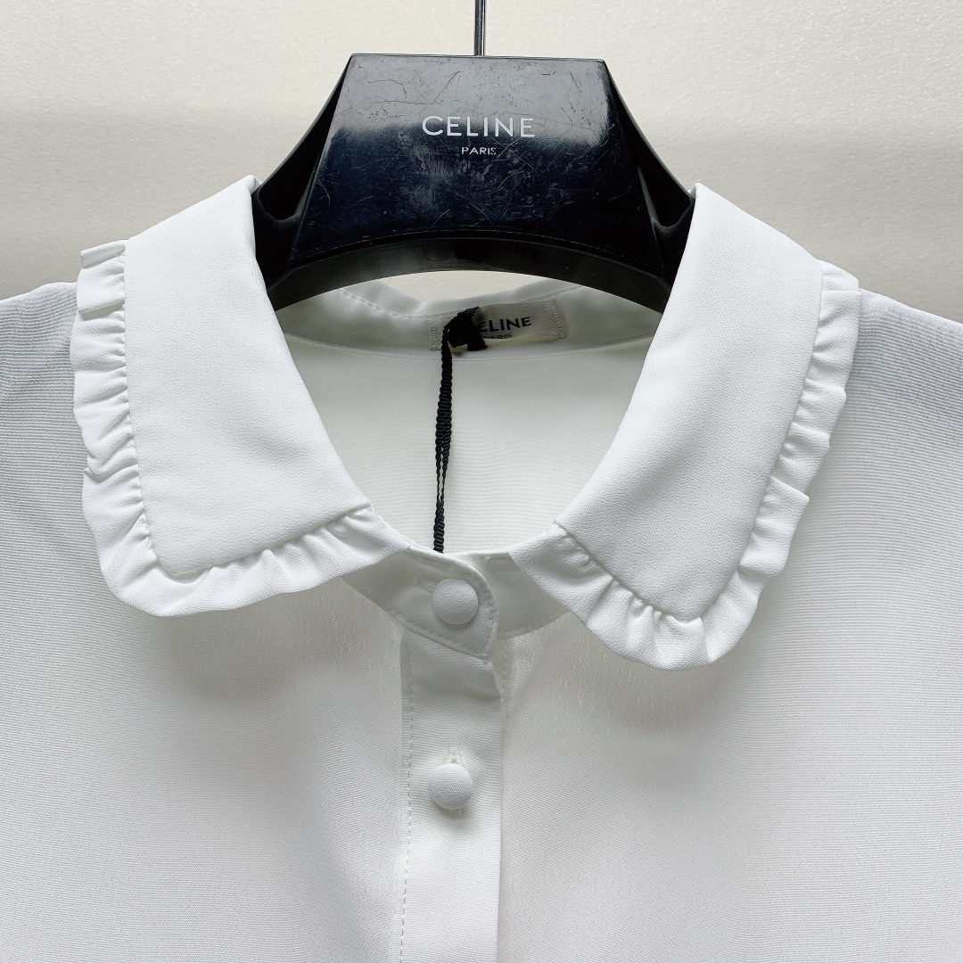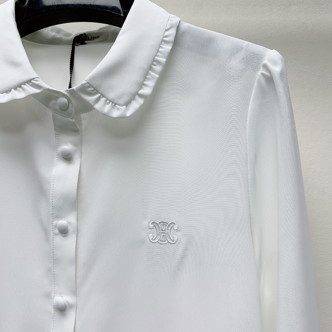 -春夏新款翻领刺绣小圆扣衬衫SML