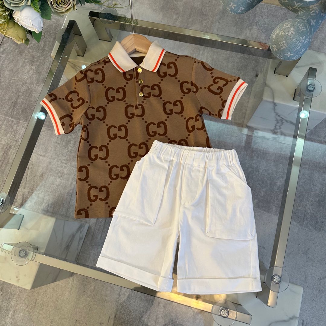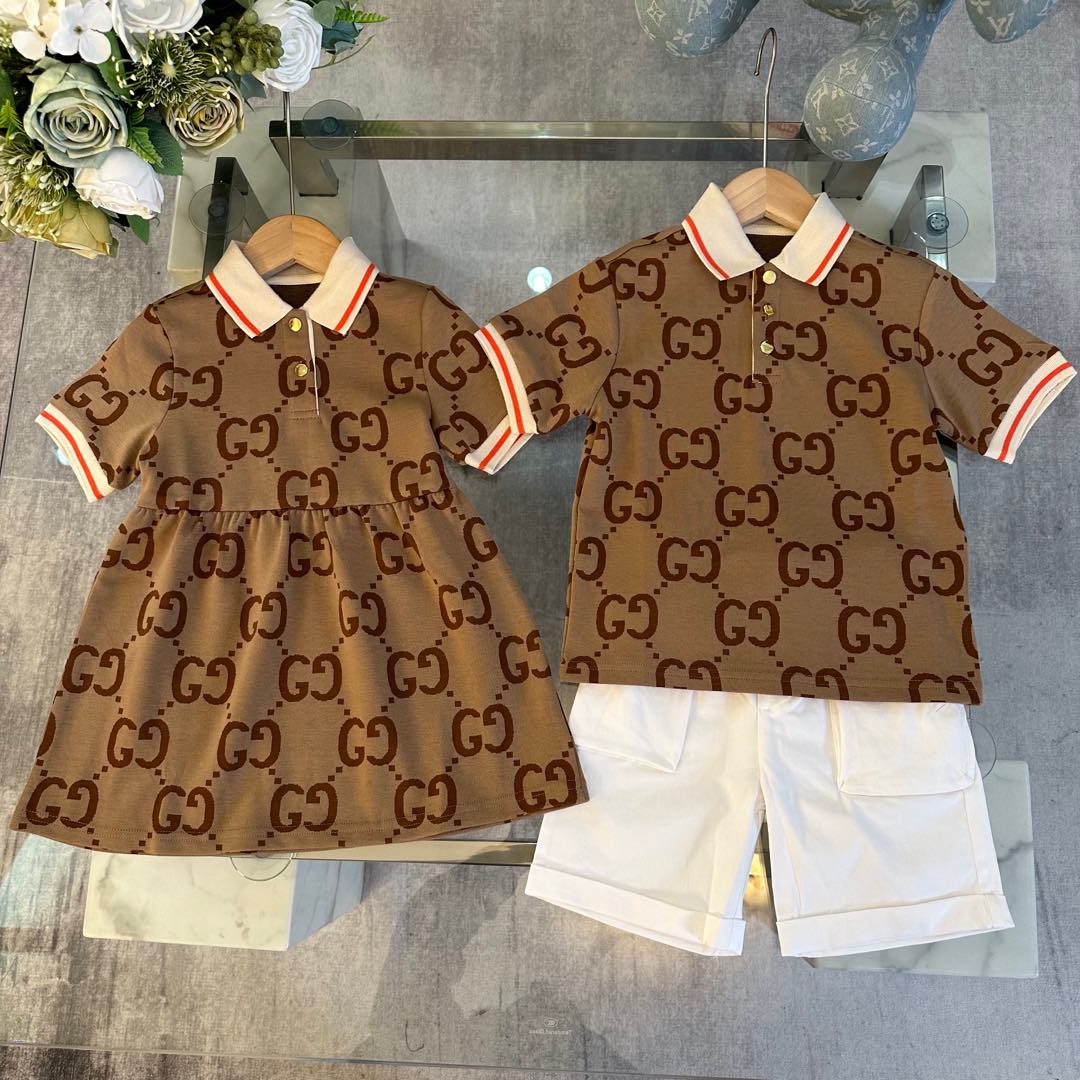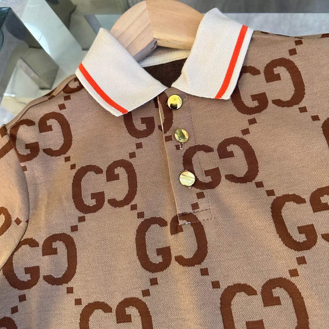 春夏款现货发售,出货三标齐全 尺码:100-110-120-130-140-150cm 元套装 单拿衣服无折 裤子无折 GG新款翻领Polo套装手感和做工堪称完美 纯棉面料 透气舒适微弹 版型挺括 翻领的设计在满足简约的风格上的需求同时,实穿性强,简约不简单!走线精致,话不多说,推荐入手