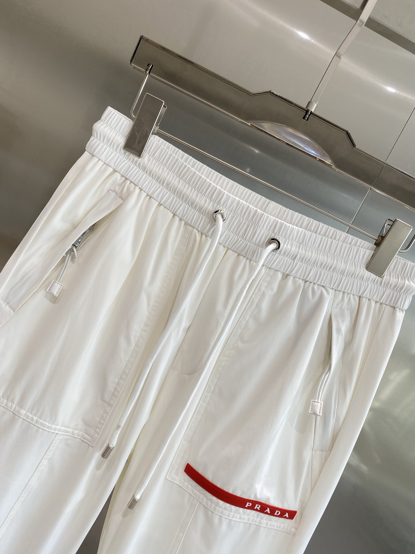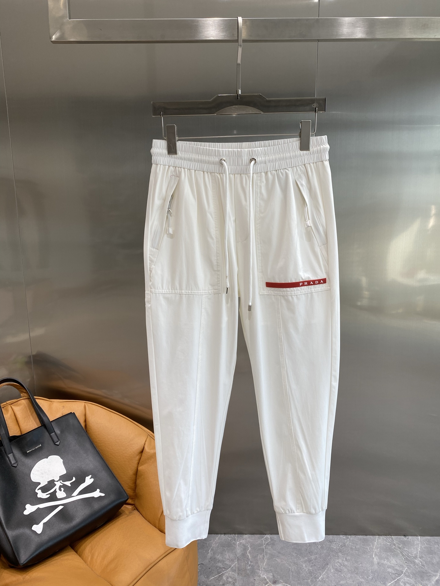 《 普家》 Prada休闲裤,时尚与实用的完美融合!抽绳设计方便调节,贴合不同腰围需求。两侧拉链口袋,既实用又增添了酷感,口袋上那一抹亮眼的红色“Prada”标识,瞬间提升时尚度。 面料舒适有质感,穿着自在又有型。束脚的款式,利落又显腿长,M-3XL隔天