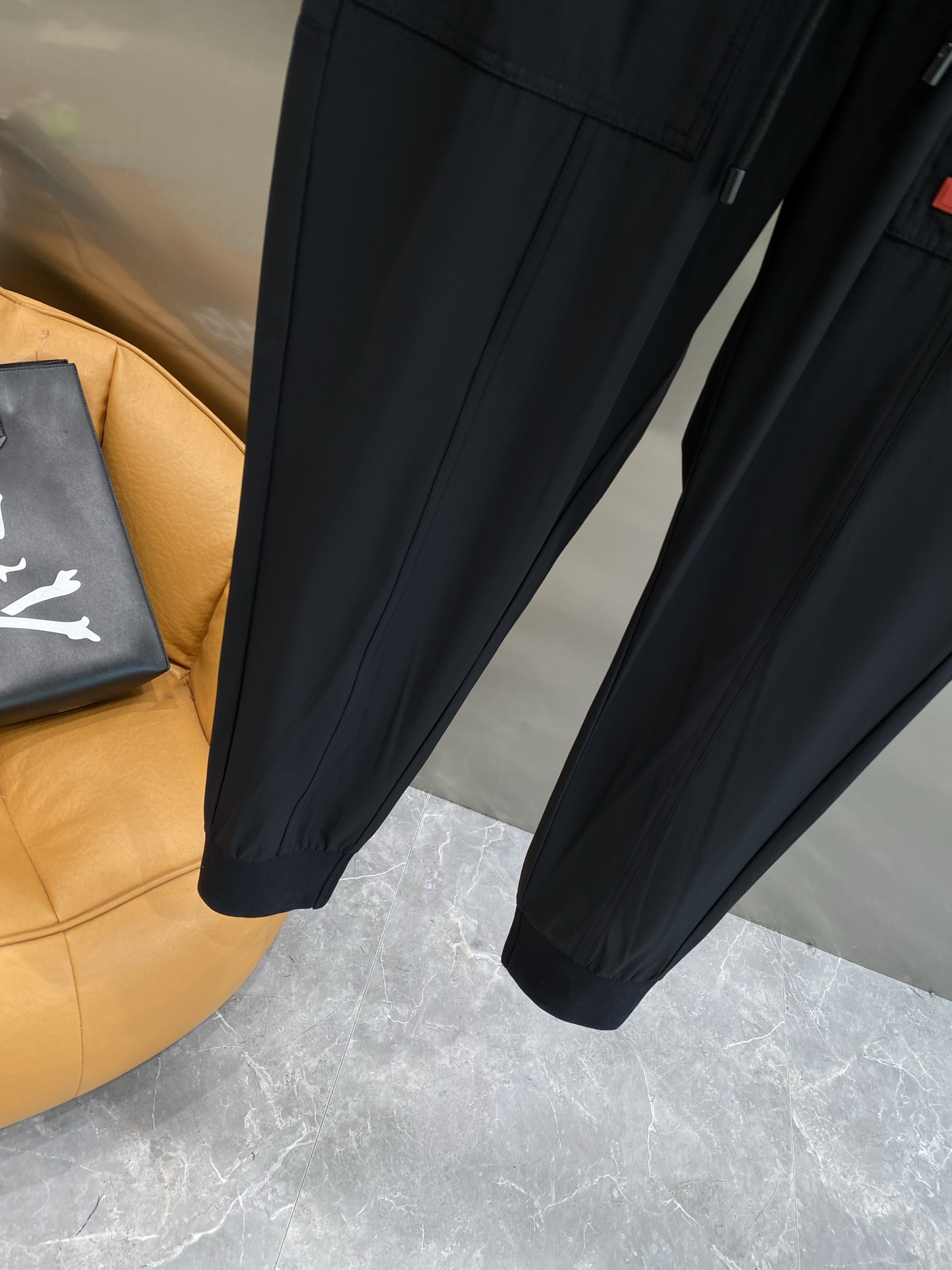 《 普家》 Prada休闲裤,时尚与实用的完美融合!抽绳设计方便调节,贴合不同腰围需求。两侧拉链口袋,既实用又增添了酷感,口袋上那一抹亮眼的红色“Prada”标识,瞬间提升时尚度。 面料舒适有质感,穿着自在又有型。束脚的款式,利落又显腿长,M-3XL隔天