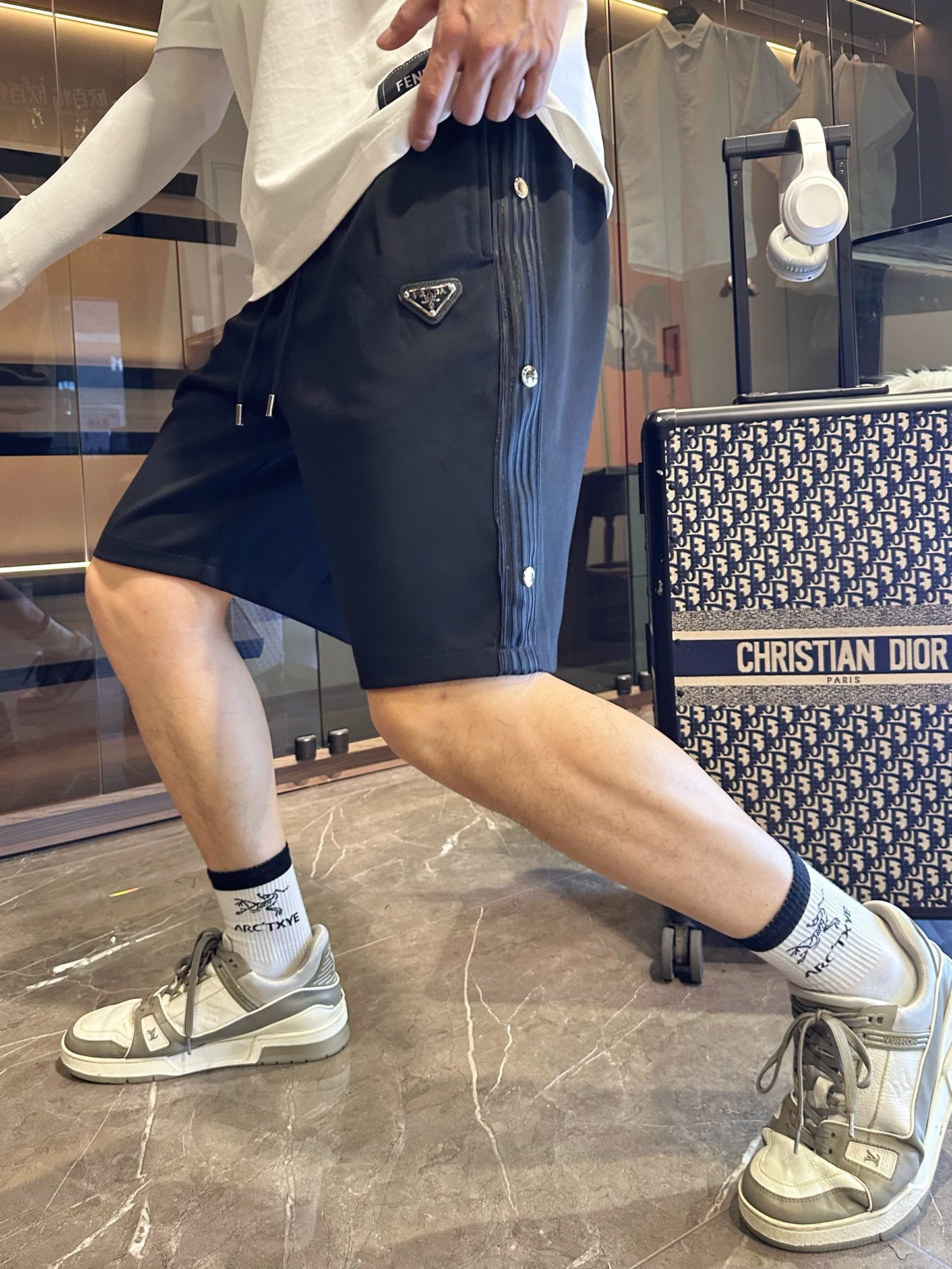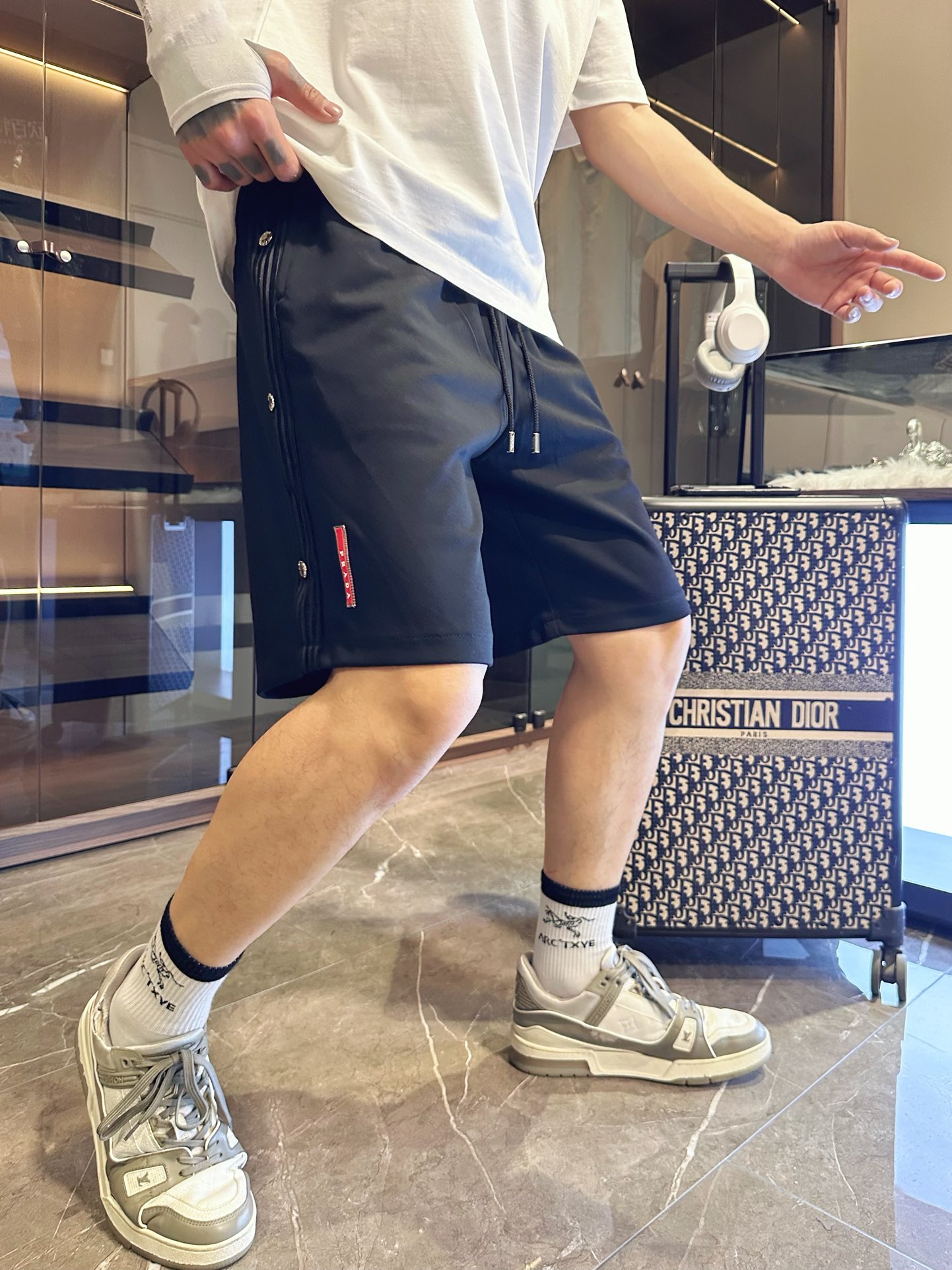 普拉达 三标齐全 2025夏季新款男士休闲短裤,高级定制面料透气面料 透气弹力舒适度极高,细节无可挑剔,顶级辅料配备,原版logo设计理念,手感细腻柔软!上身版型超赞!尺码:M-XXXL下单报身高体重