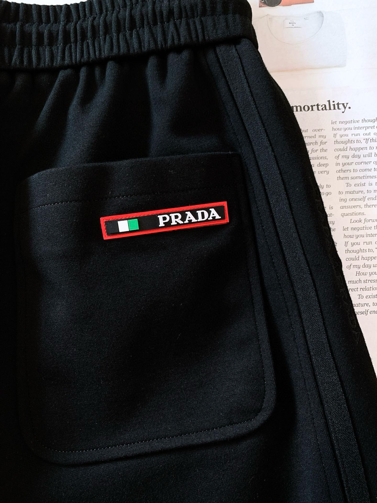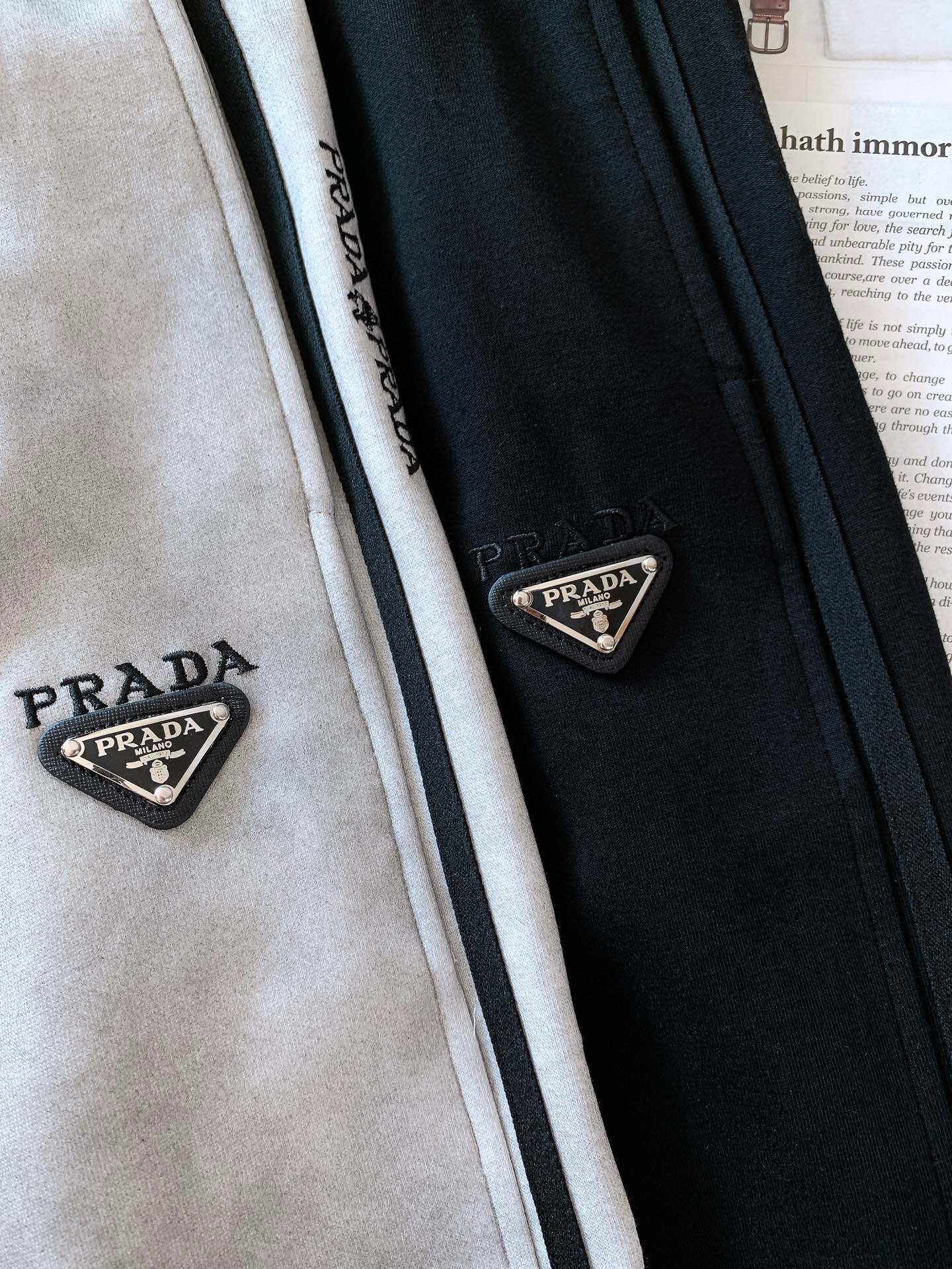 普拉达 2025春季新款休闲裤!官网同步发售。品牌经典LOGO休闲裤,定制面料,舒适度极好,手触感: