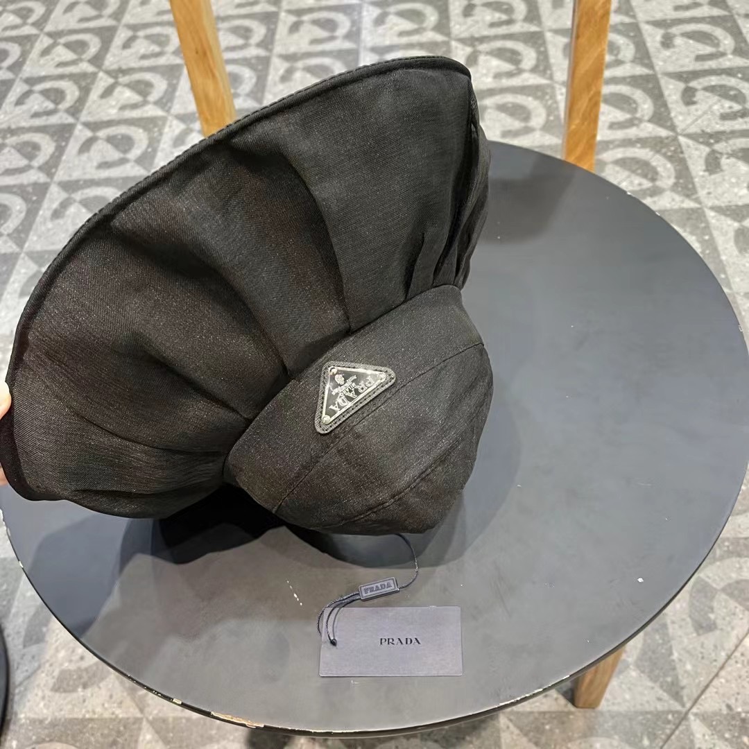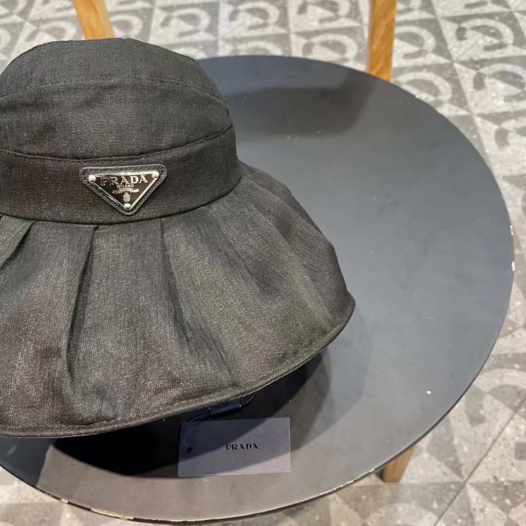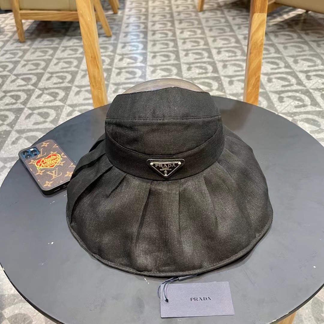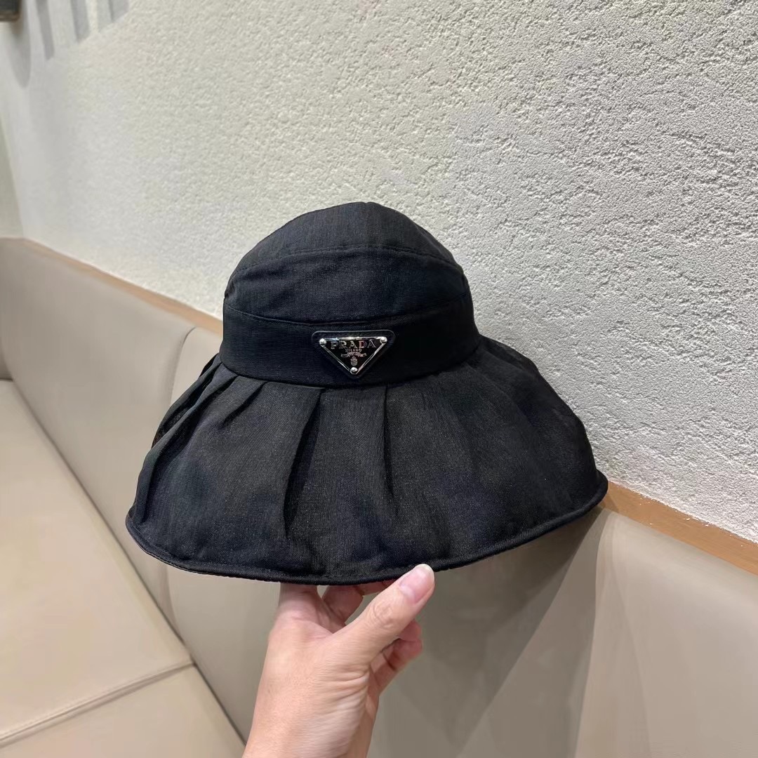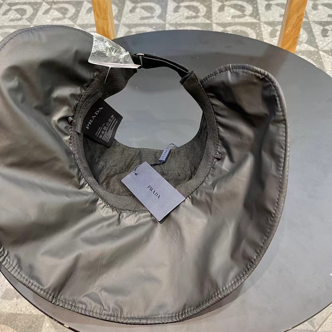 普拉达Prada新款春夏季防晒透气纯色简约空顶帽女遮阳大沿可调节帽子