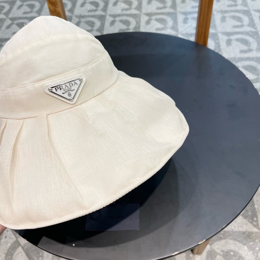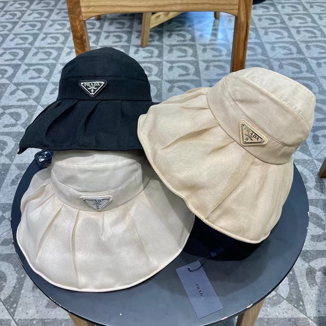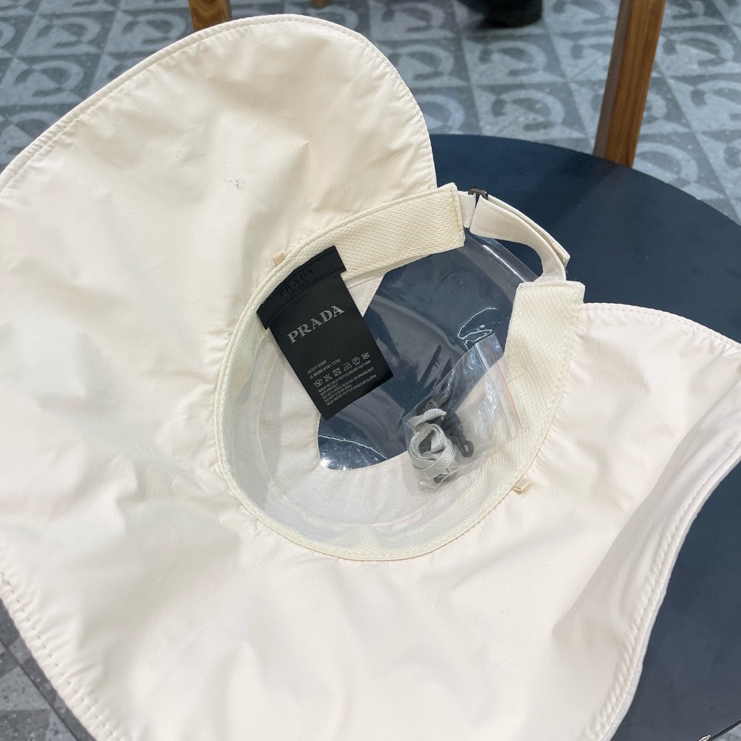 普拉达Prada新款春夏季防晒透气纯色简约空顶帽女遮阳大沿可调节帽子