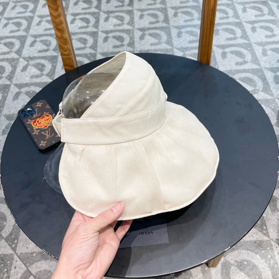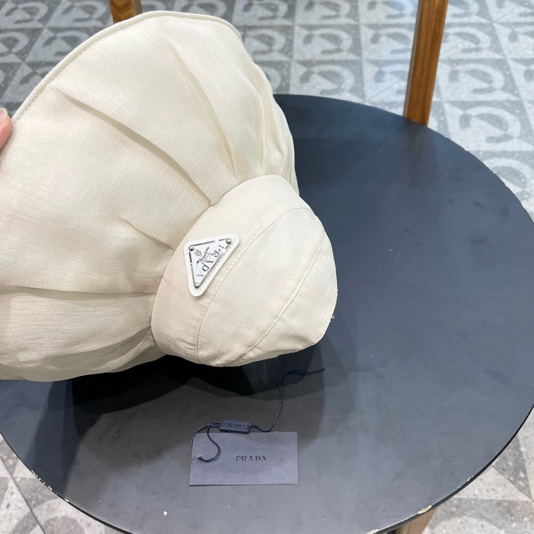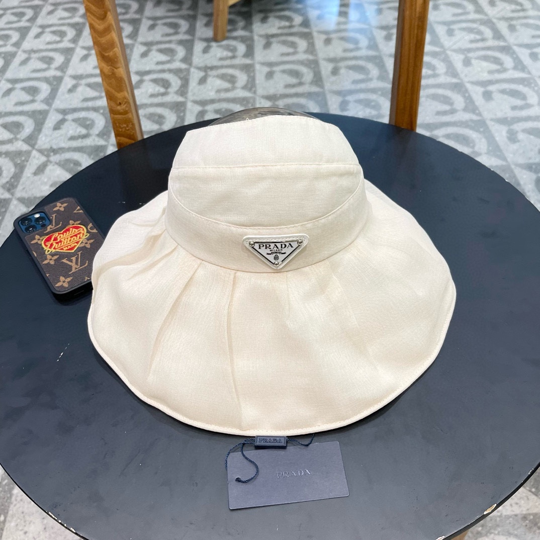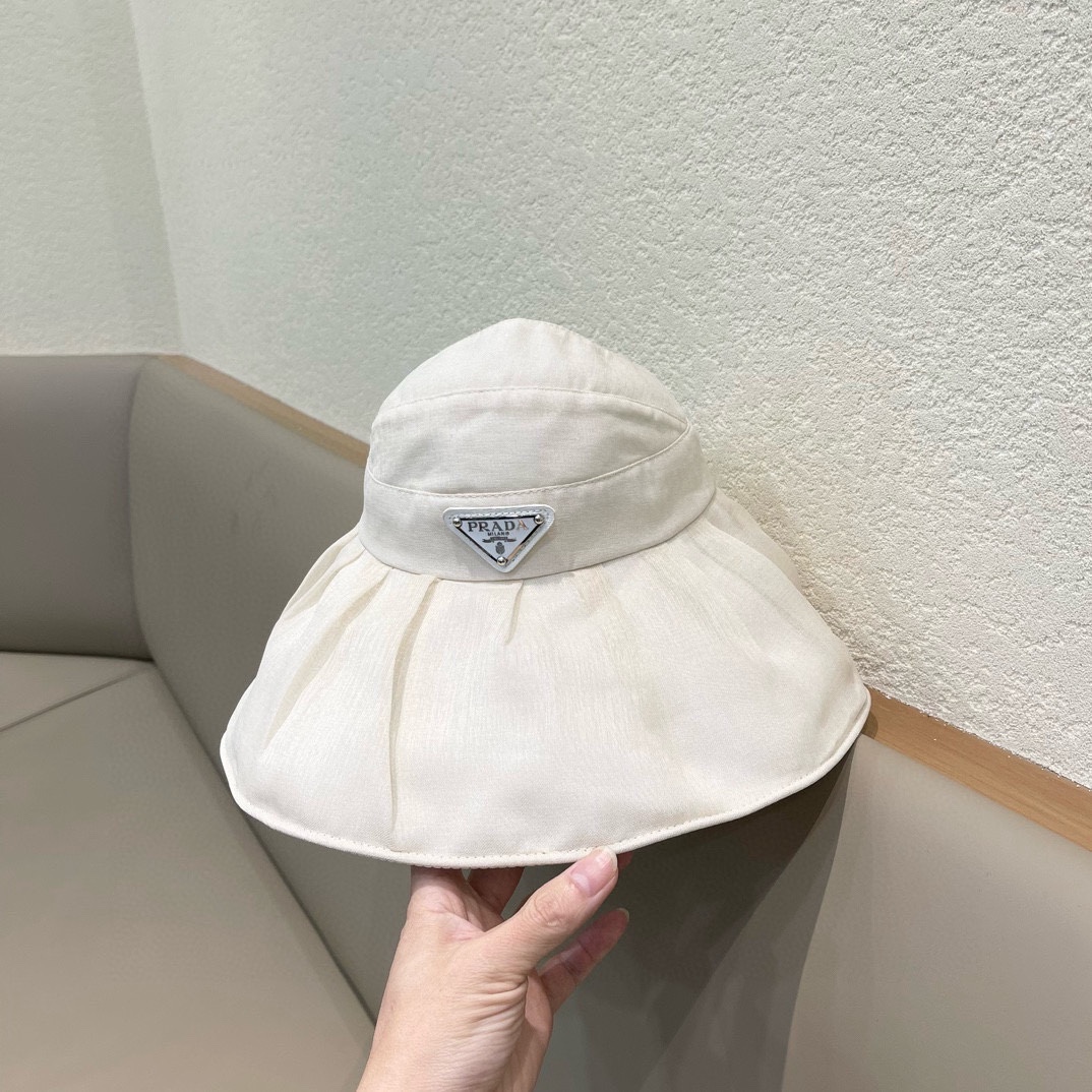 普拉达Prada新款春夏季防晒透气纯色简约空顶帽女遮阳大沿可调节帽子