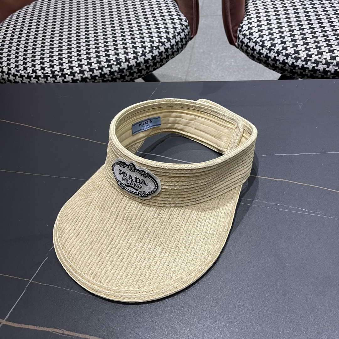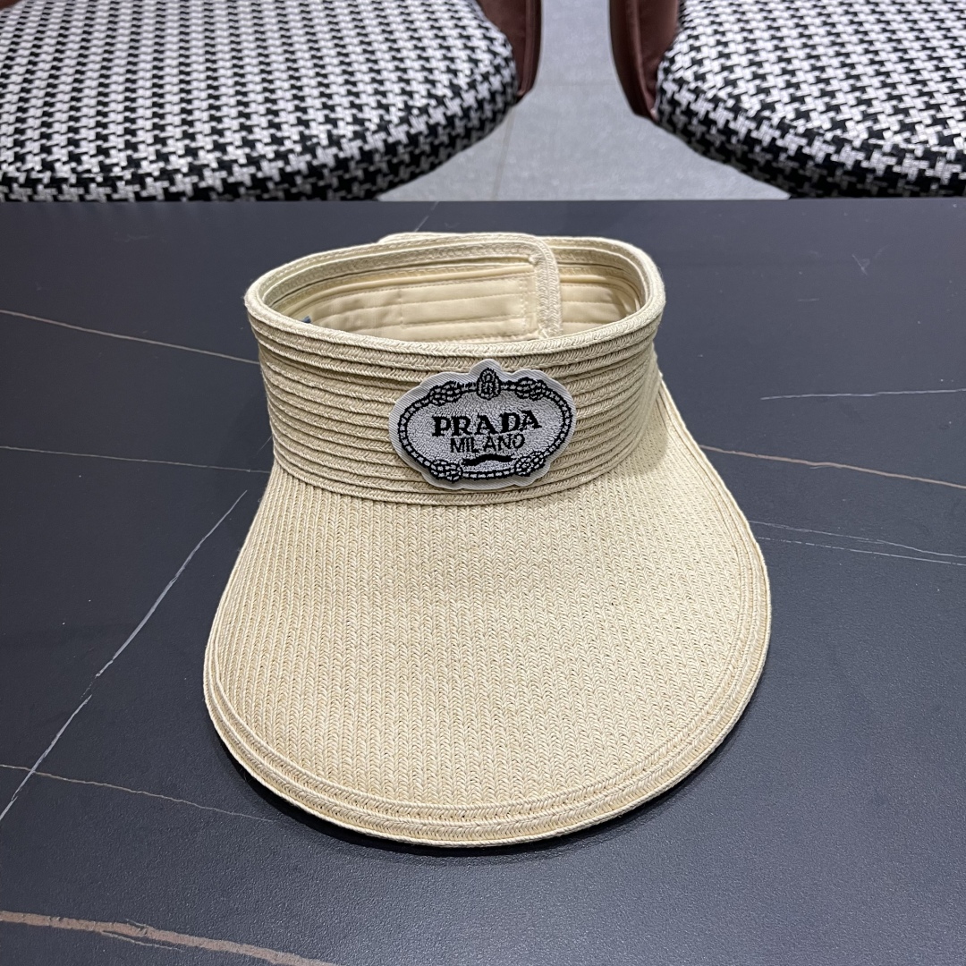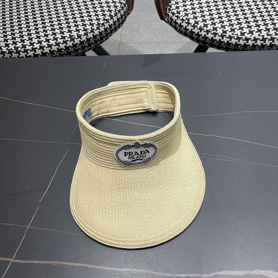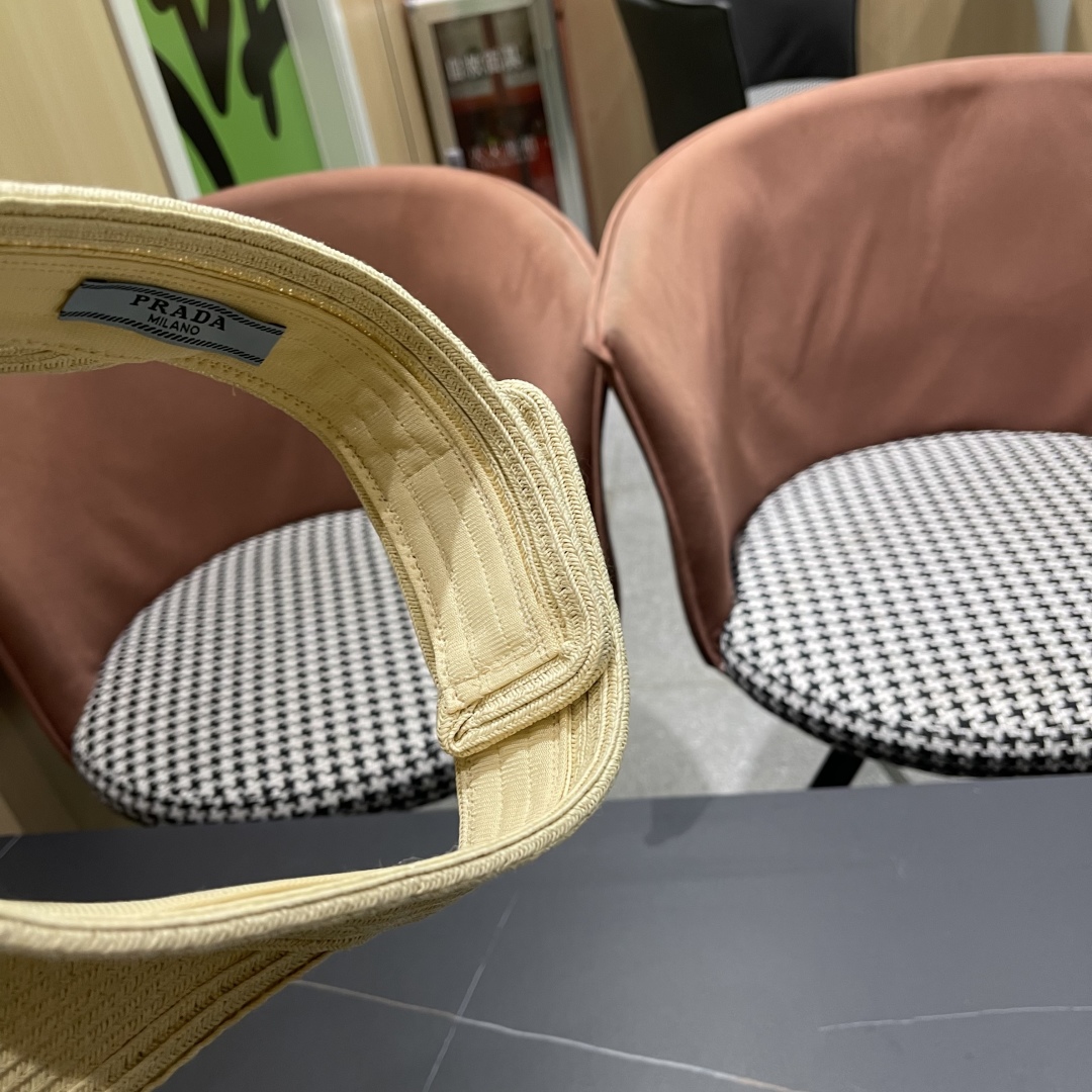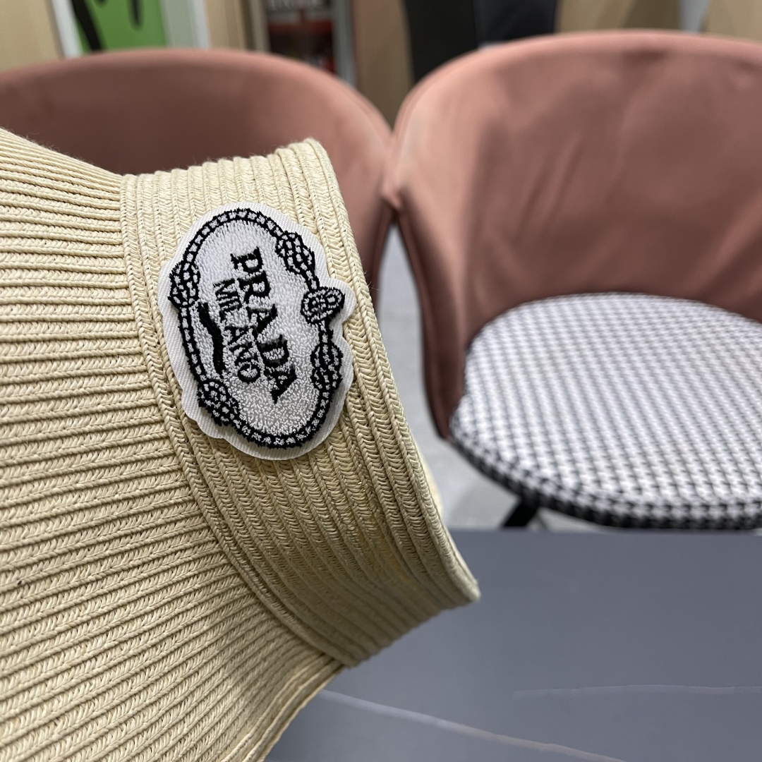 普拉达prada草编空顶帽子女夏季