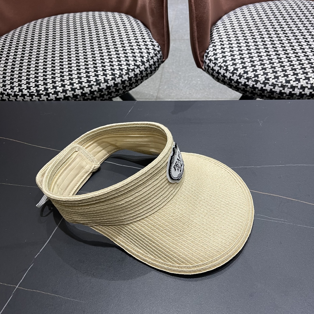 普拉达prada草编空顶帽子女夏季跑步马拉松运动