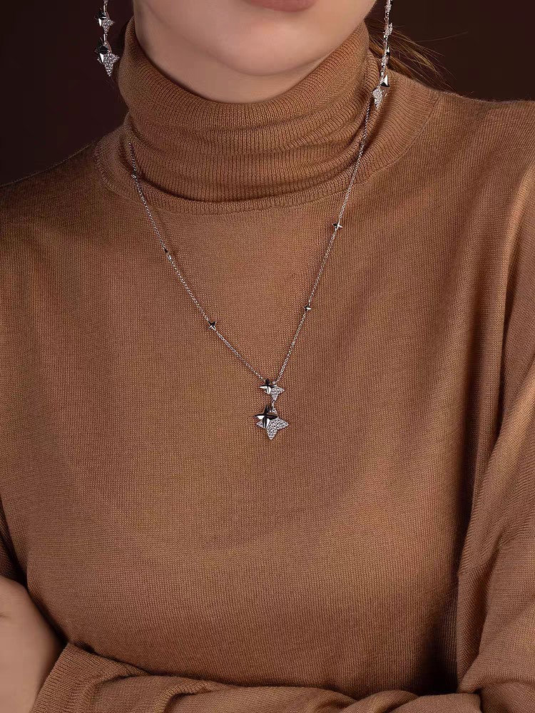 ⭐️[杨紫同款]⭐️APM 双流星银色可调节项链女设计感锁骨链时尚饰品礼物