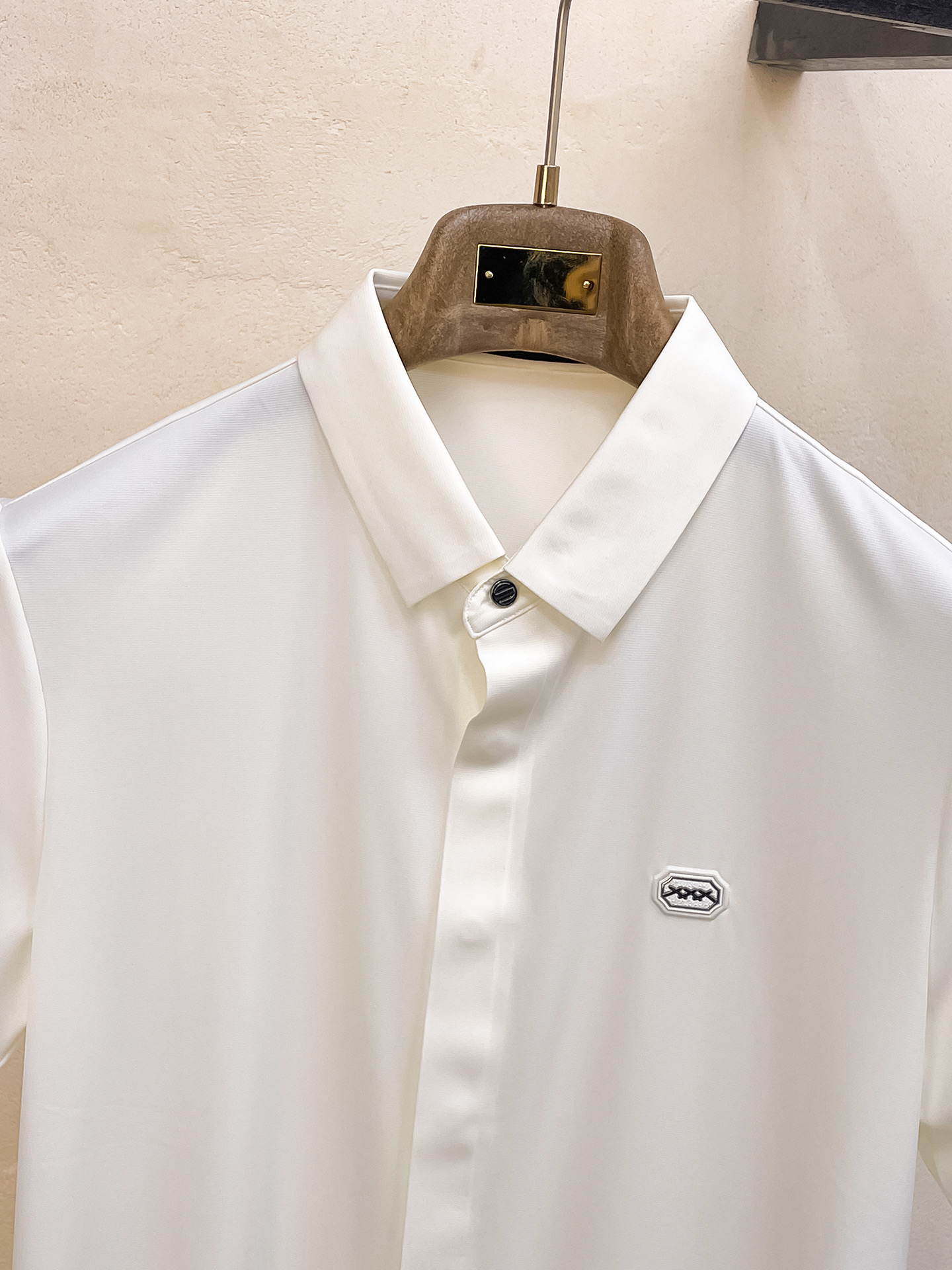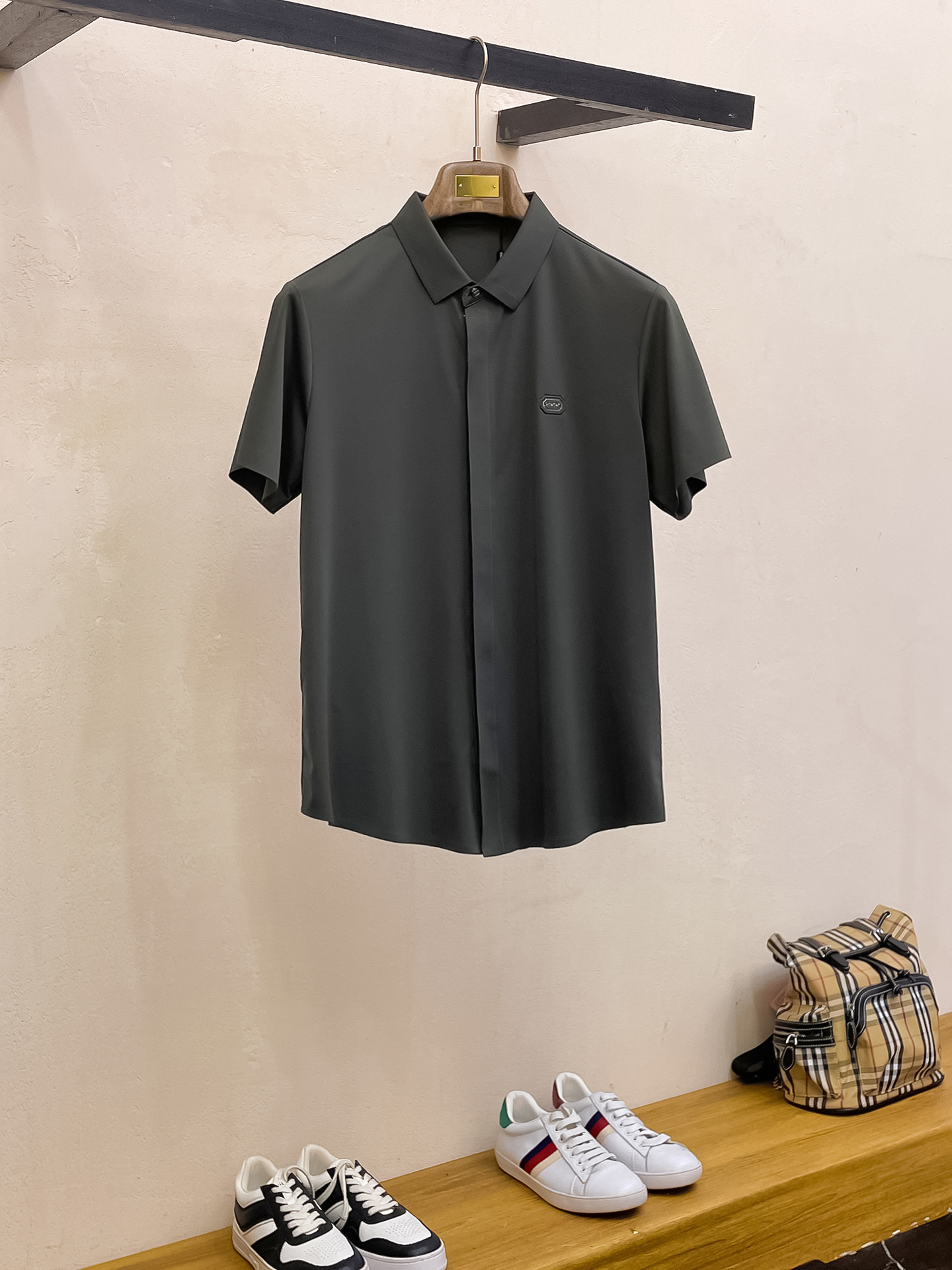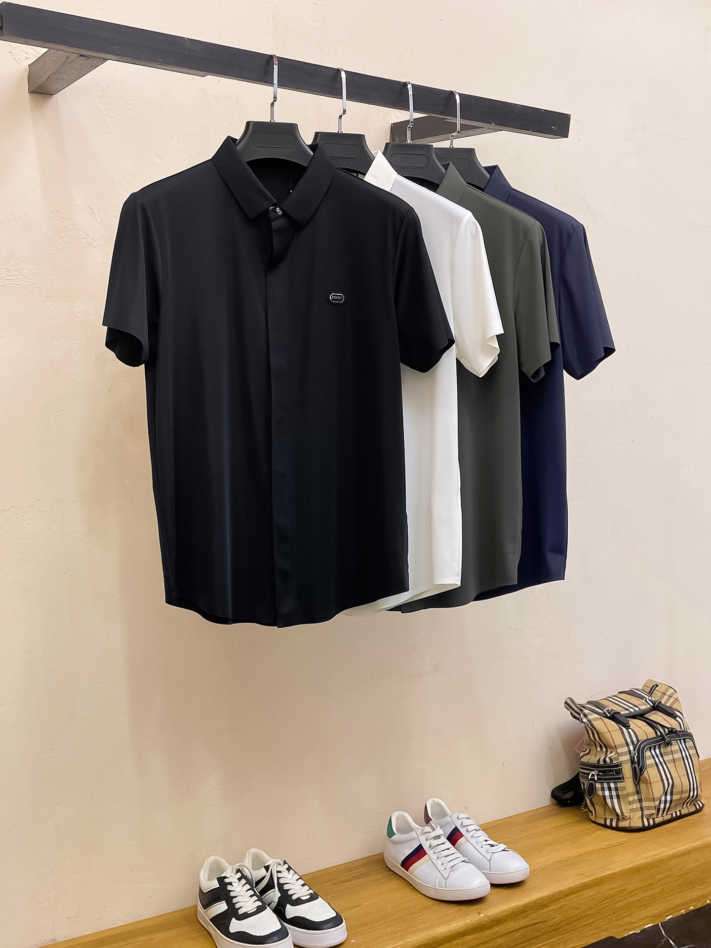杰尼亚 高端货商务 白领 单位人士必入单品! 珠地面料休闲商务短袖衬衫,科技面料,体感非常棒,手感顺滑质感很棒!弹性好,无任何束缚感,面料自带透气网孔,吸湿排汗,速干保持干爽,小翻领门襟排扣设计,展露挺拔姿态,不软踏,简约款式,商务休闲都可驾驭,强烈推荐!高弹冰丝,触感堪比玉蚕丝一样丝滑,干净利落,儒雅绅士风度。高级材质,重点就是面料上,品控的必上,手感极其细腻光滑,面料光泽感和上身骨架感好,打招成熟品质男装!夏天出汗秒干,全新体验 商务通勤休闲 码数:M-4XL,最大穿200斤