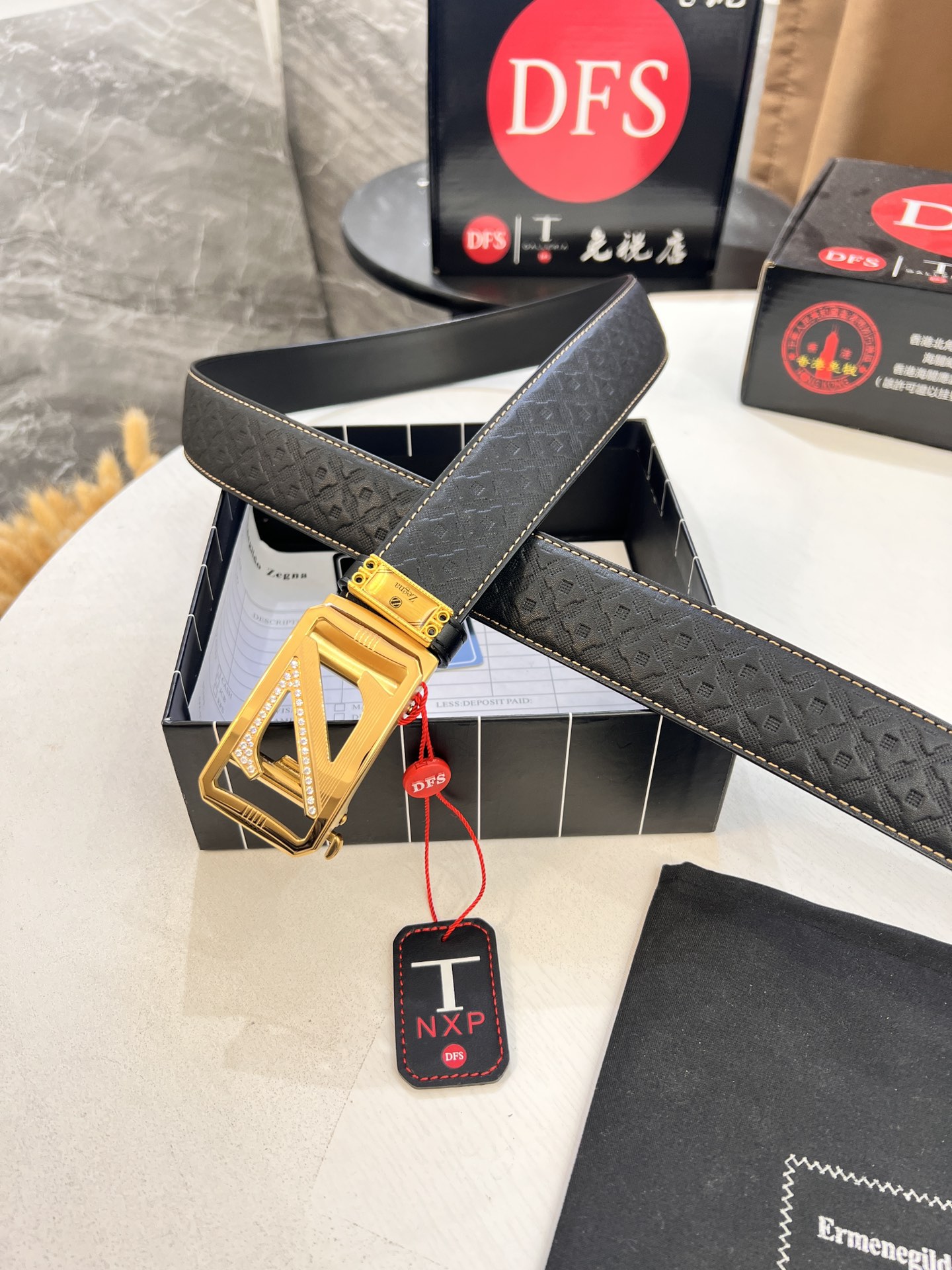 杰尼亚 ,原厂原单。 香港免税T礼盒 (NXP吊牌感应可识别官网,正版防伪芯片) 正品开模,Z字板扣镶钻精钢五金,自动滑轮系列五金:顶级皮带支持验货 意大利进口花纹头层,平纹小牛皮皮,pvx滑轨,时尚走秀款,顶级免税代购级别,媲美正品,高清视频图片实拍,3.5宽度,保量保质