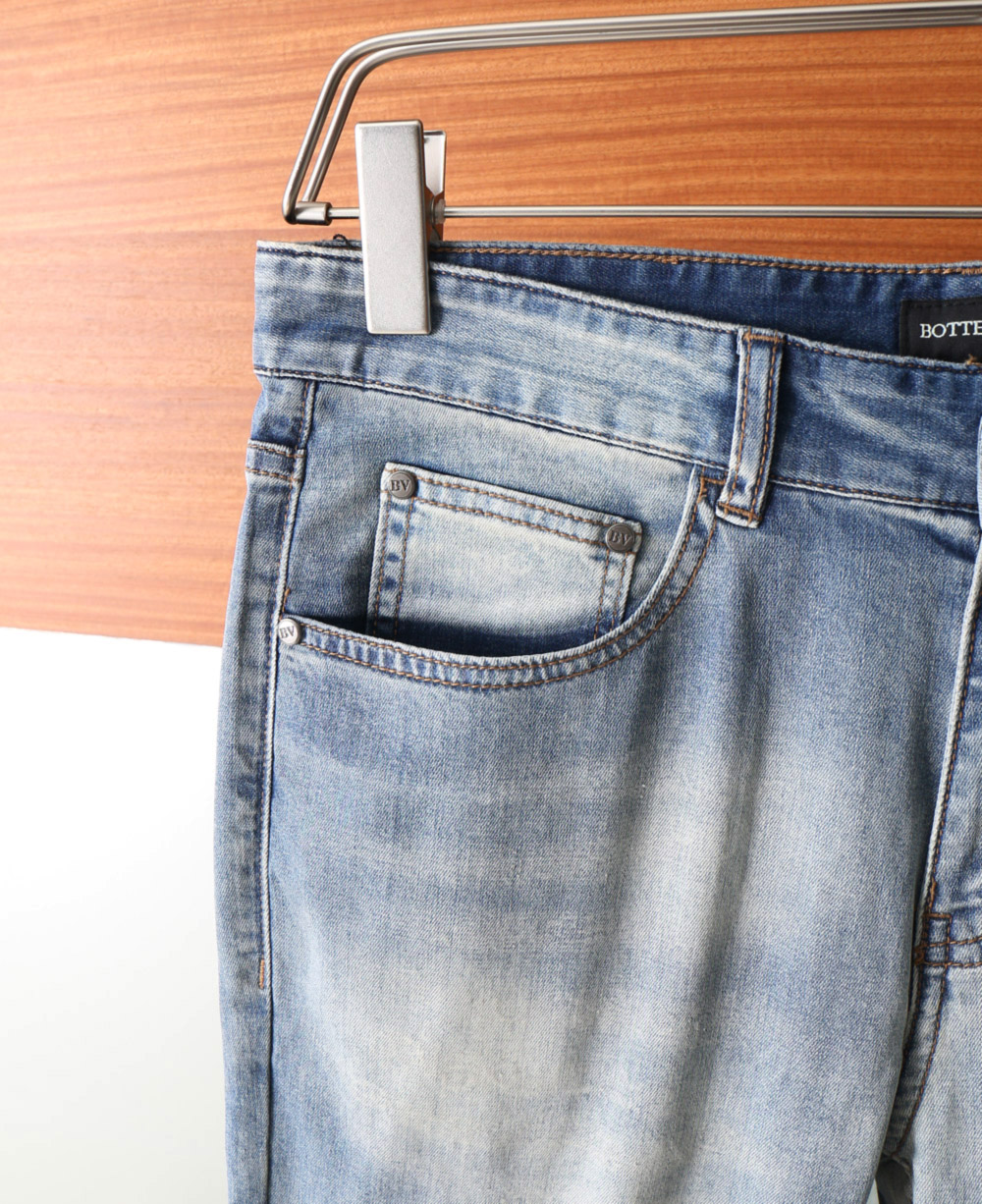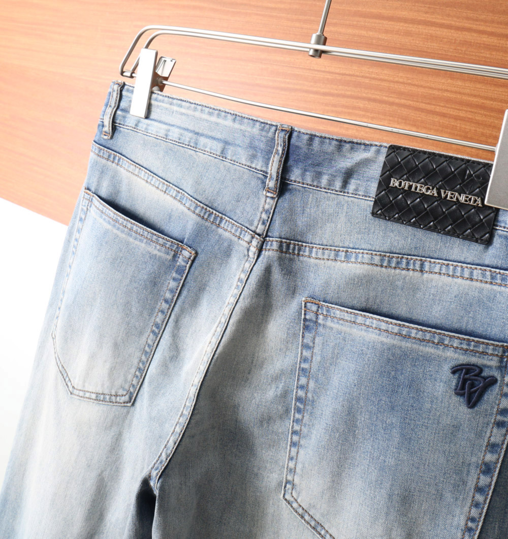 。BV2025春夏新款男士休闲牛仔裤,高端品质之选……一款休闲裤兼备的百搭裤装,也是男士衣橱里不可缺少的搭配神器,属于实穿型的经典款式!整条休闲裤的设计风格简洁时尚,非常符合低奢的风格设定,亲肤值优越,穿着方便,细节感十足!定制原版logo腰牌设计!经典logo标识设计!此款裤装采用优质棉面料打造而成,面料舒服,手感柔软细腻,有着很好的垂直感,看上去非常有质感,细品高级韵味十足。一流精湛的版型裁剪,走线细致平顺工整,休闲随意怎么搭配都好看的裤装,喜欢的赶紧入手吧,好货可不等人!