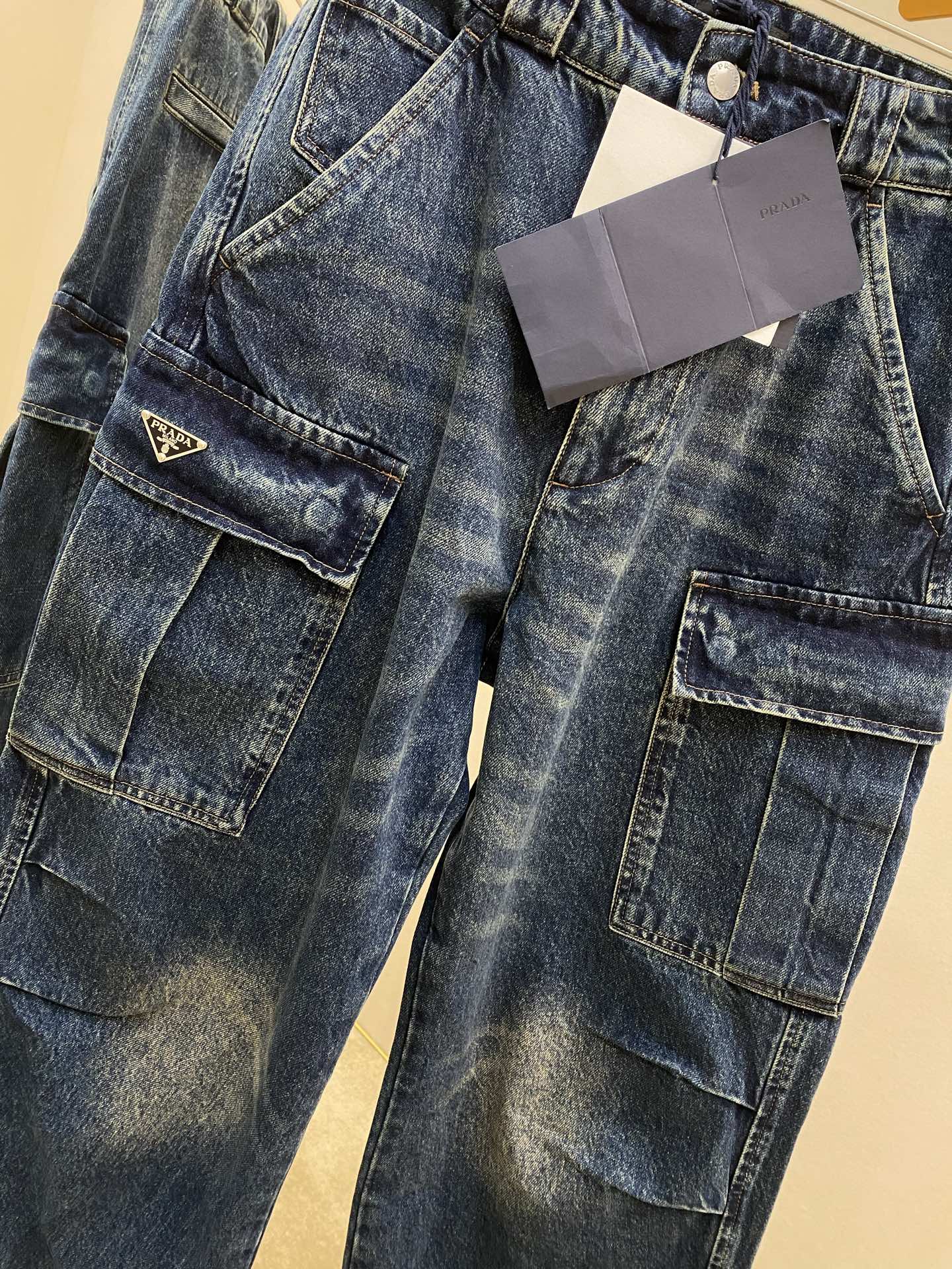 。prad 25SS 新款蓝色牛仔棉质牛仔裤