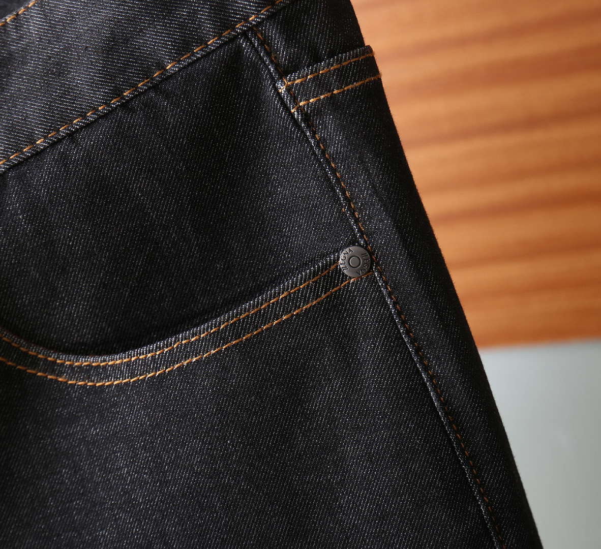 客供高级进口的丹宁原色面料,特选日本冈山纯正13oz 盎司牛仔布料,重磅环保植物酵素水洗工艺,肌理有着淡淡的复古色彩,相当漂亮,面料经过水洗后柔软细腻,但筋骨感极强,且略带弹力,提供了绝佳的舒适体验,通身无任何工艺元素破坏,保留了最纯粹的丹宁本色!