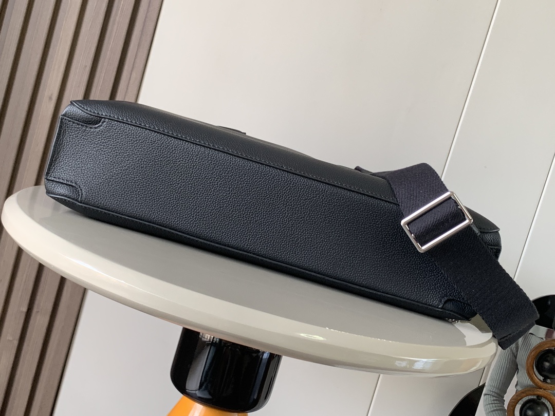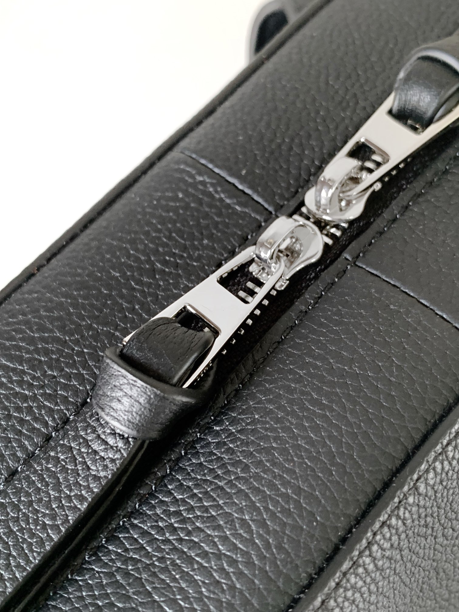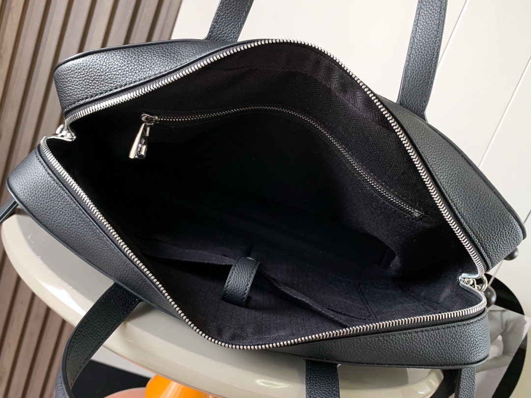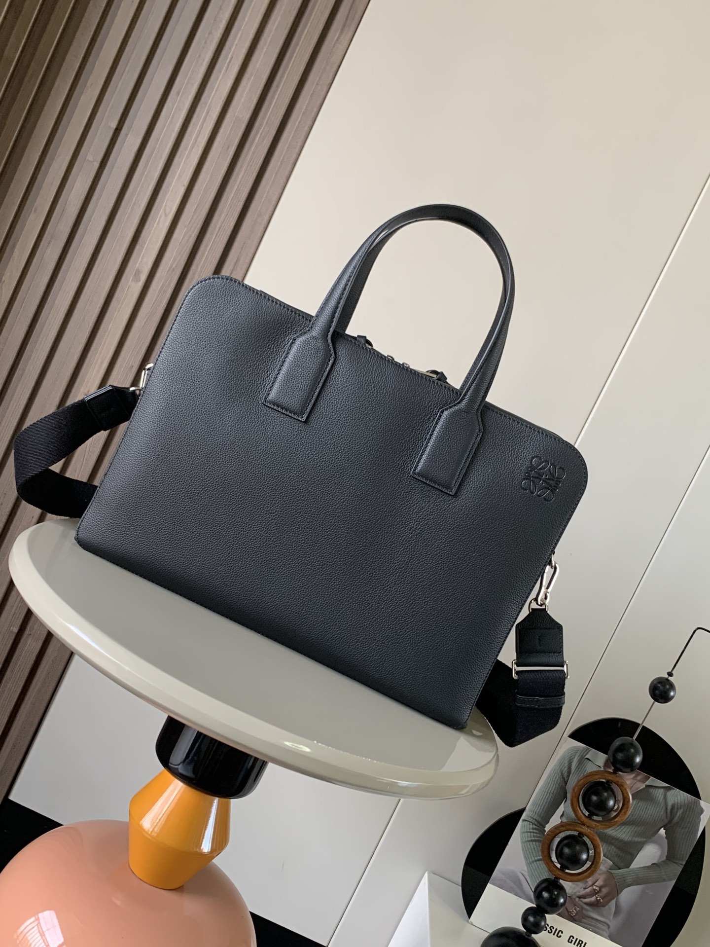 柔软粒面牛皮革 Goya 薄款简约公文包 柔软粒面牛皮革流线型公文包可通过顶部手提或可拆卸可调节肩带携带 *拉链开合,牛皮 革拉链头*大号口袋配有标签封口*容量大同时可以灵活调节手提袋长度 内部拉链口袋和两个插袋*人字纹棉质帆布衬里 * Anagram 压纹 颜色:黑色 尺寸:38cm~27cm~8cm 款号:9081
