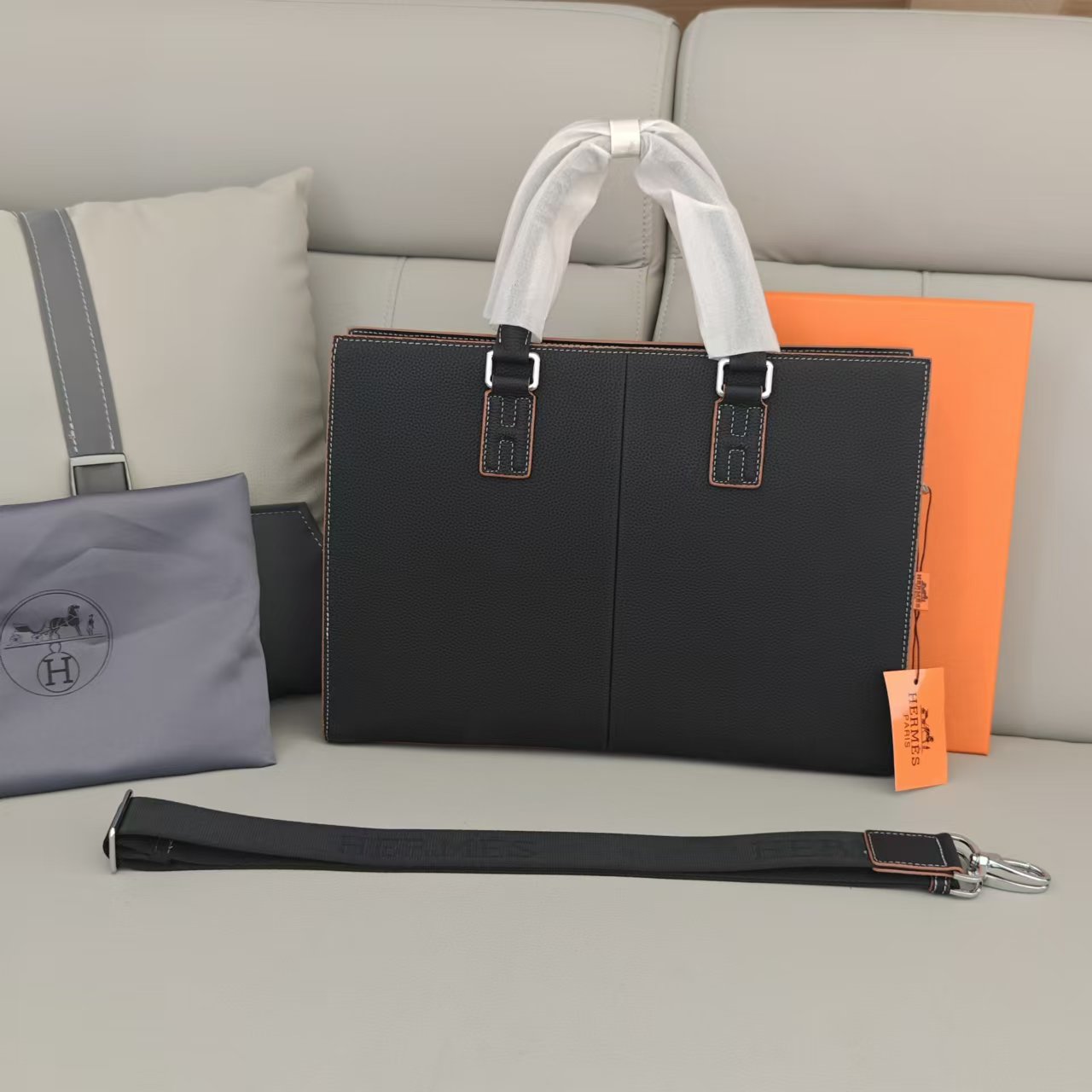 爆款来袭,精致公文包 选用由再生聚酯纤维头层牛皮和棉质纱线制成的面料打造,装饰专属标识图案丝印,搭配品牌徽标。可斜背,或使用可调式标志性条纹网纹纯棉 织带携带。