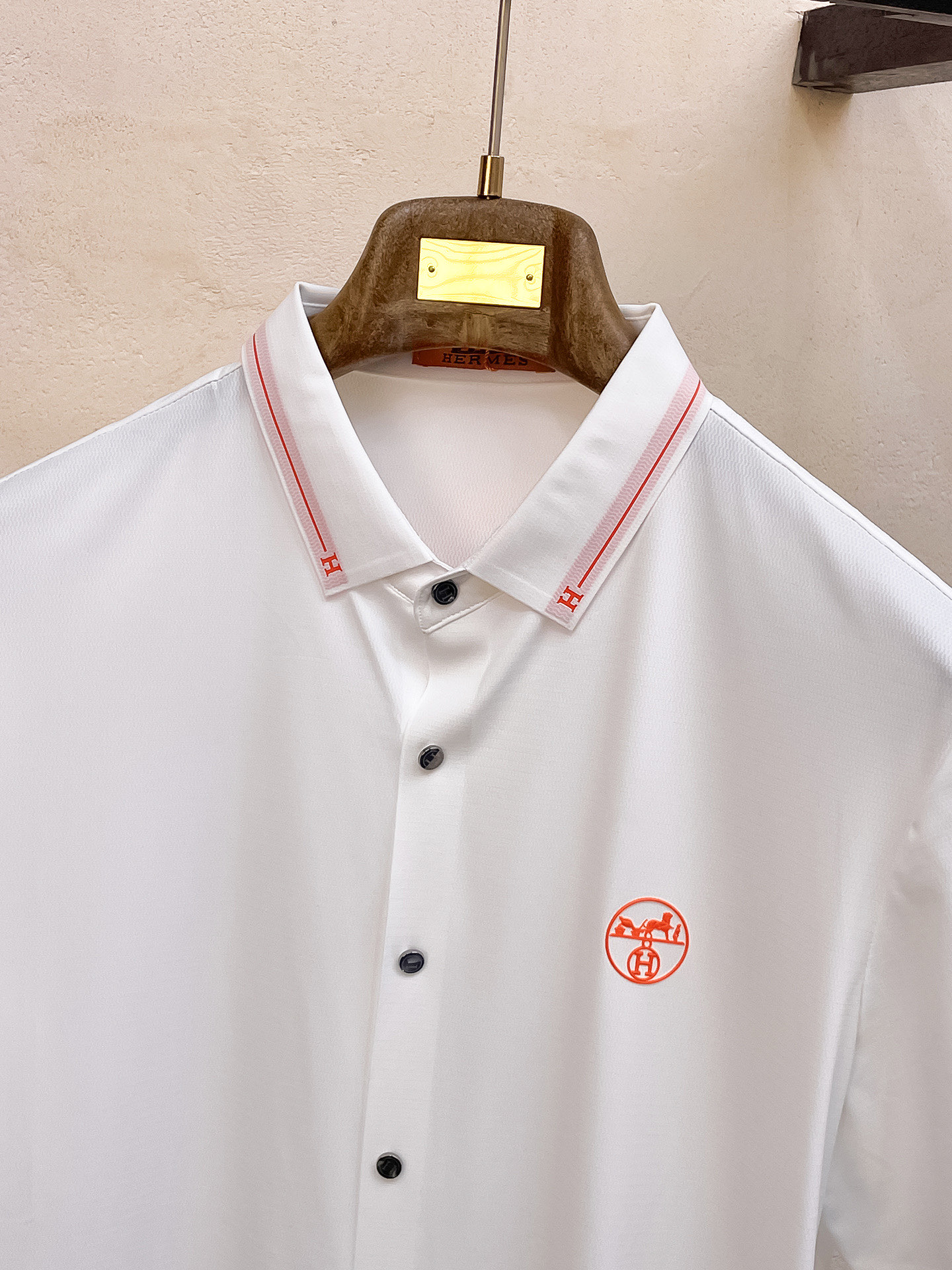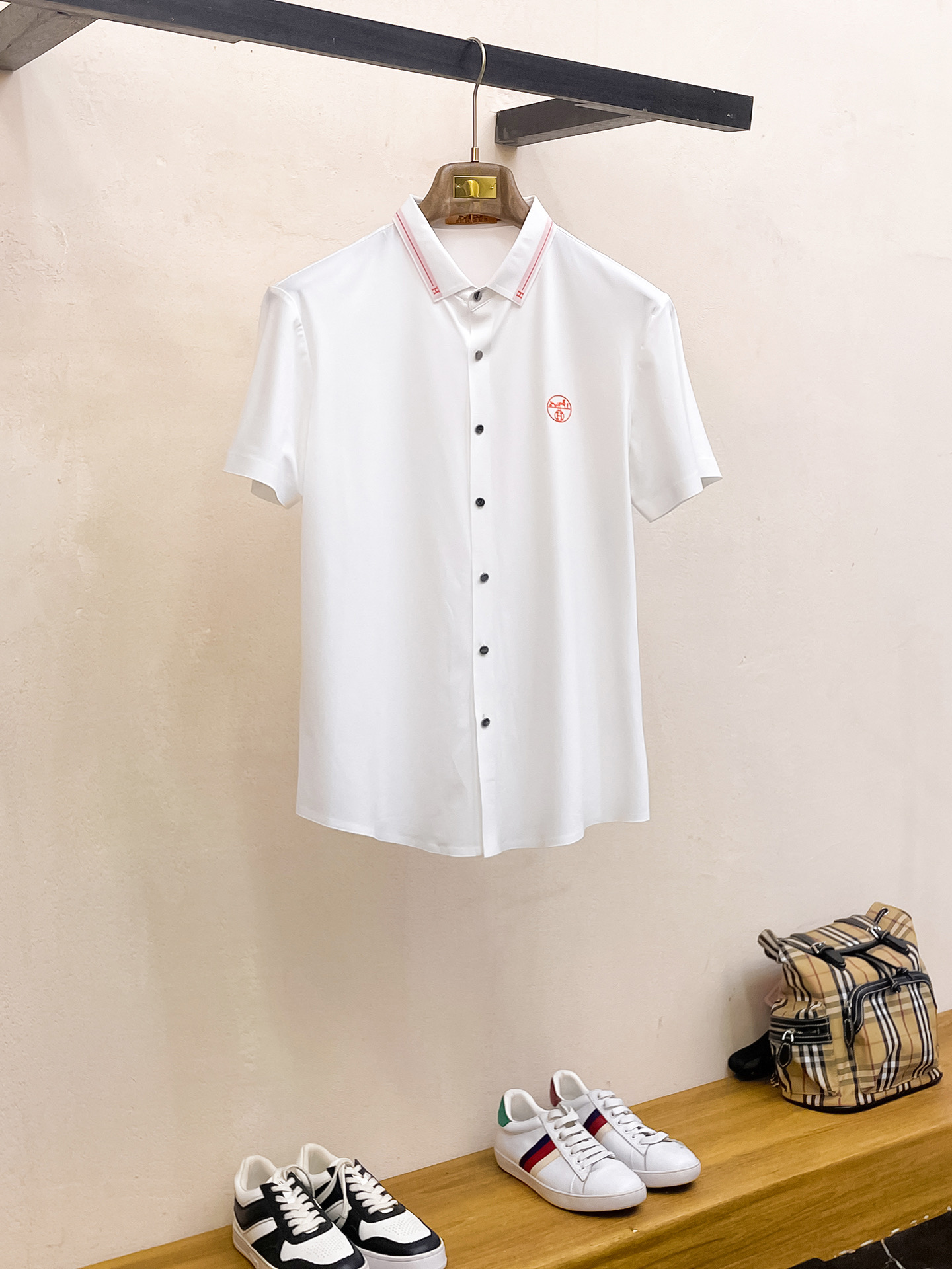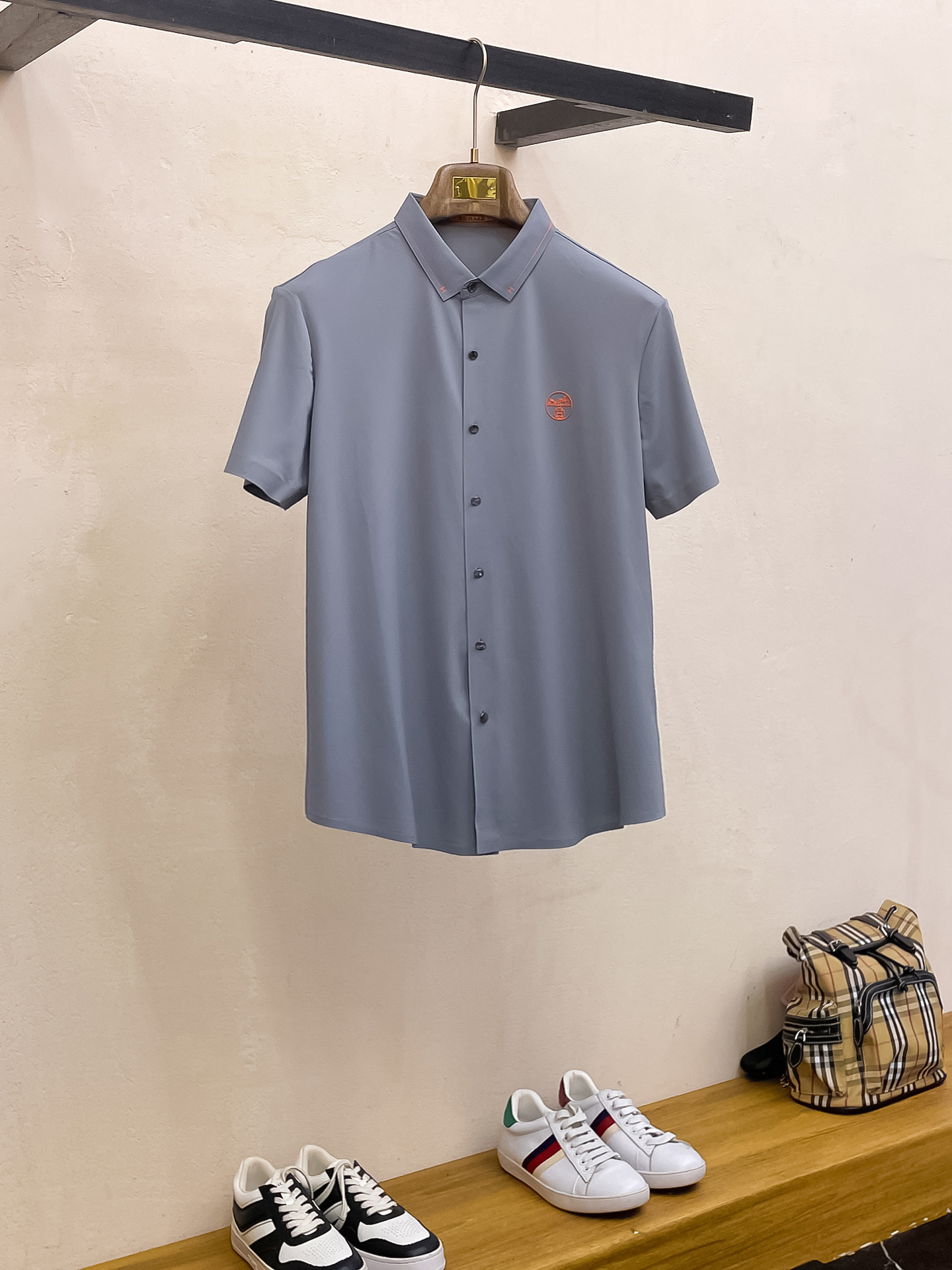 爱马仕 高端货商务 白领 单位人士必入单品! 珠地面料休闲商务短袖衬衫,科技面料,体感非常棒,手感顺滑质感很棒!弹性好,无任何束缚感,面料自带透气网孔,吸湿排汗,速干保持干爽,小翻领门襟排扣设计,展露挺拔姿态,不软踏,简约款式,商务休闲都可驾驭,强烈推荐!高弹冰丝,触感堪比玉蚕丝一样丝滑,干净利落,儒雅绅士风度。高级材质,重点就是面料上,品控的必上,手感极其细腻光滑,面料光泽感和上身骨架感好,打招成熟品质男装!夏天出汗秒干,全新体验 商务通勤休闲 码数:M-4XL,最大穿200斤