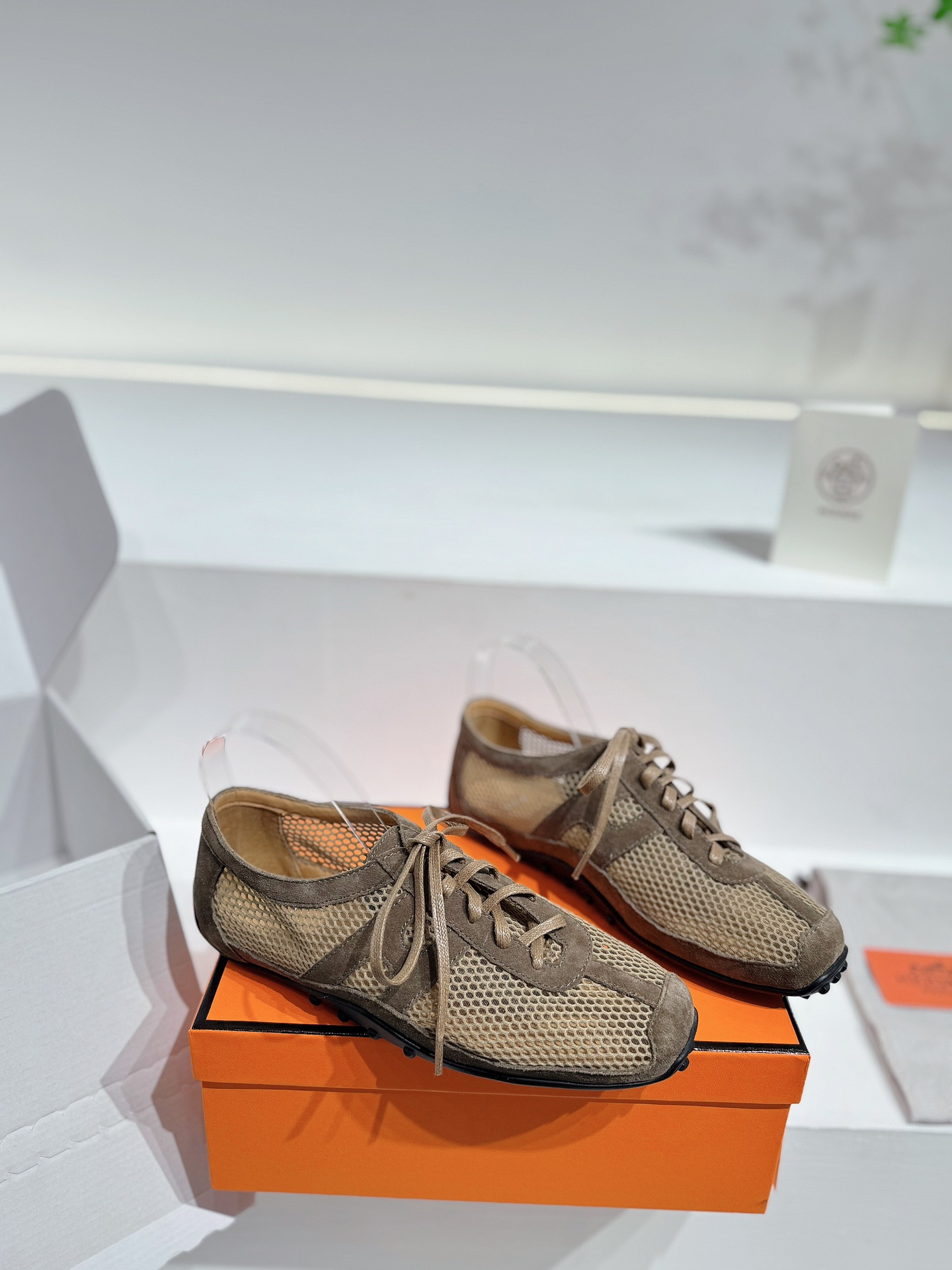 爱马仕HERMES春夏秀款德训网鞋 各大博都主有荐推的 永不褪色的网训德鞋 绝对人手入必的德训鞋 上脚比实物好看多了‼ 原版开发……选料对色完美大货‼ 越看单简细越节要做到差无别…… 原版定牛小制皮 定制透气网布 独家私模大底 原版全套包装 Size:女35-41(40 41定制) 厂【配飞机盒】