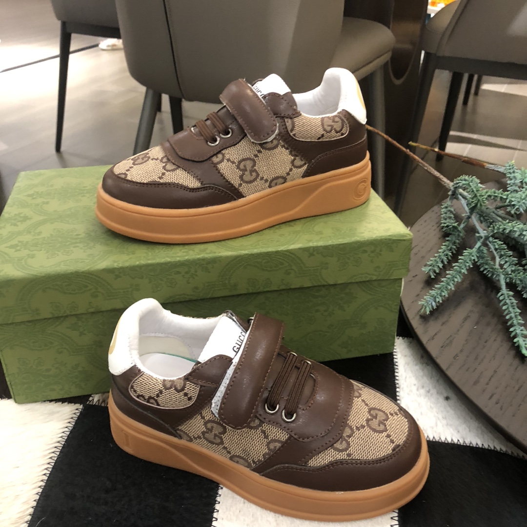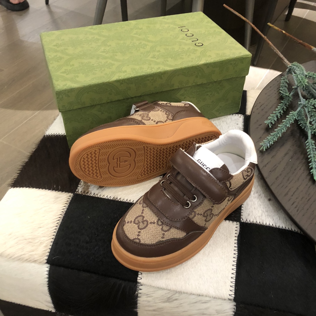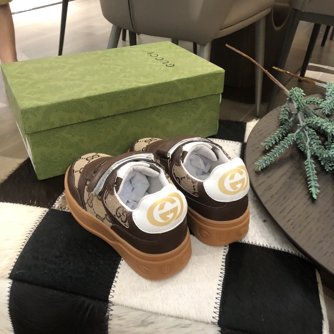 独家上新Guc*iKinds儿童 厚底小白鞋…复古系列运动鞋 魔术贴设计 方便儿童穿搭 明星 网红 小红书等必定种草打call❤Guci Logo,后跟还有个GG Logo 经典guci织带……码数26 27 28 29 30 31 32 33 34 35