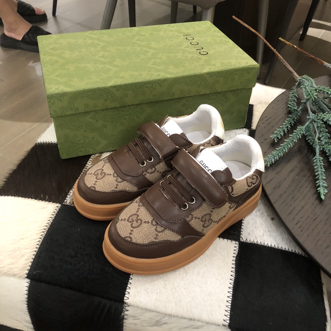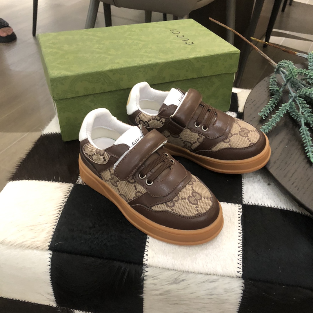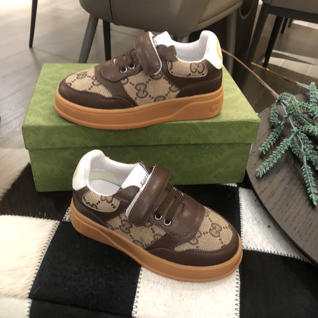 独家上新Guc*iKinds儿童 厚底小白鞋…复古系列运动鞋 魔术贴设计 方便儿童穿搭 明星 网红 小红书等必定种草打call❤Guci Logo,后跟还有个GG Logo 经典guci织带……码数26 27 28 29 30 31 32 33 34 35