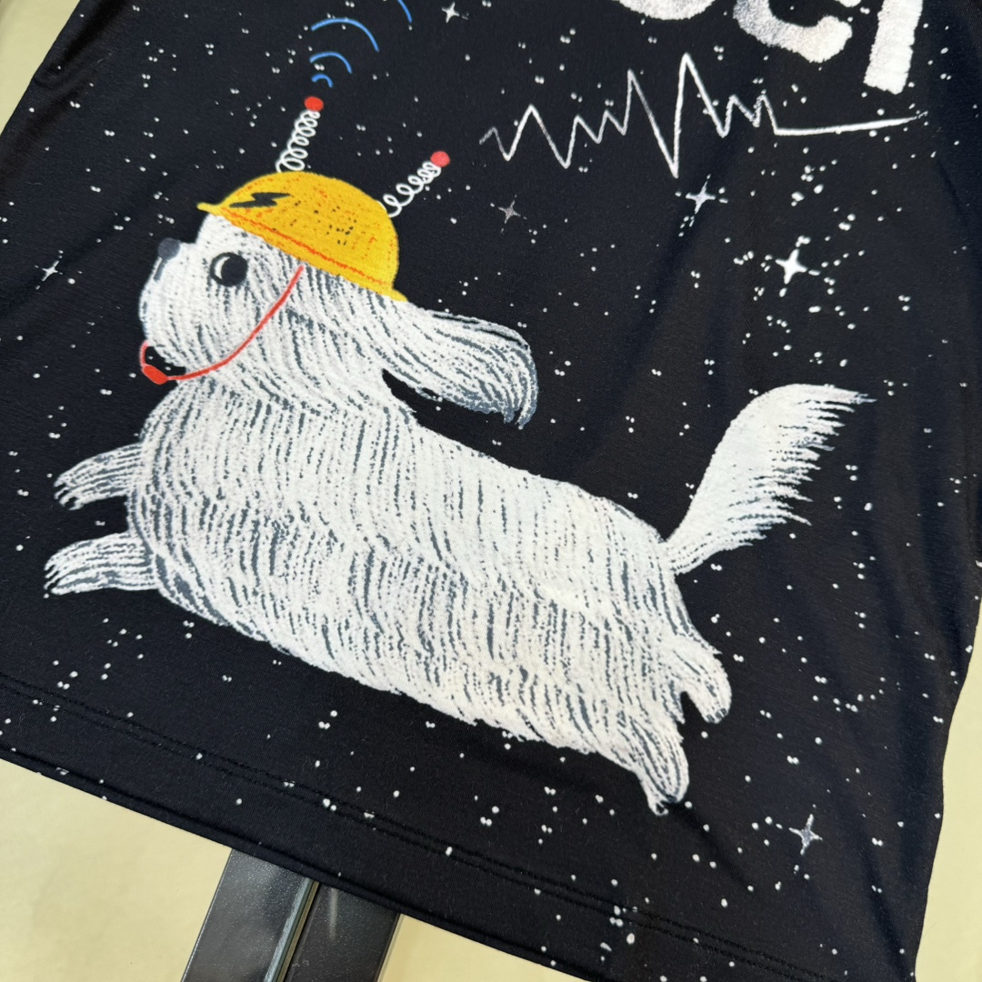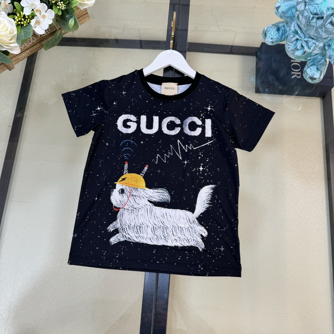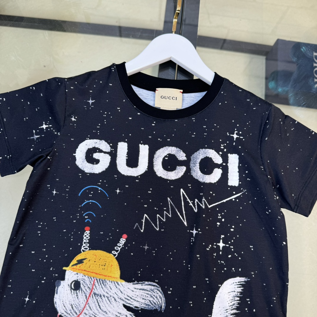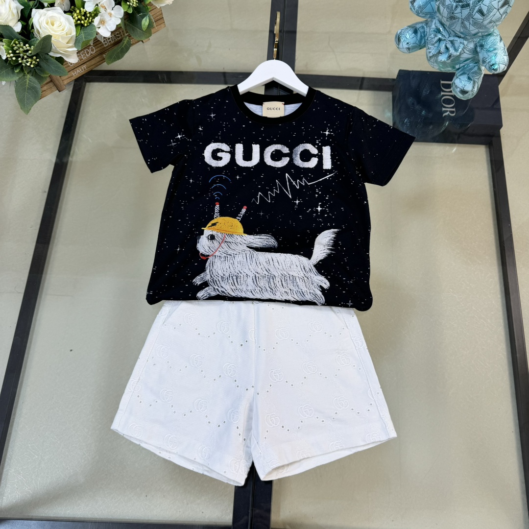 独家首发 高端童装 尺码:100-160 无折一套 CU*CCl 24/新款 童装 夜空繁星信号小狗狗logo图案前后印花圆领短袖T恤+短裤 男女宝宝同款 码数100-150cm