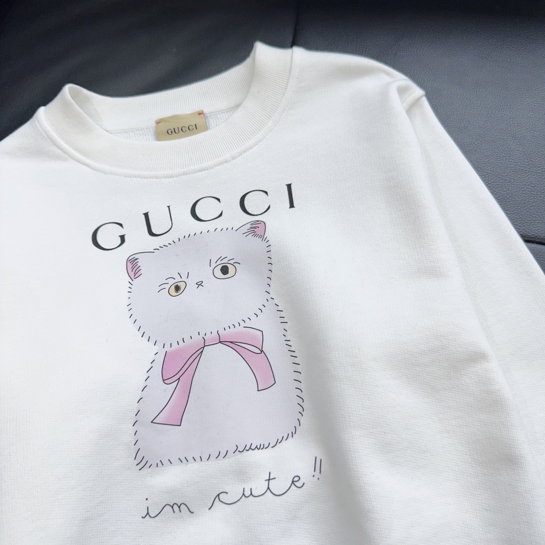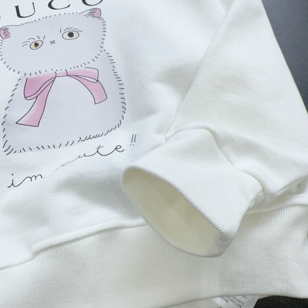 独家首发 高端童装 Gu*ci 24/新款 童装 可爱猫咪印花图案卫衣!实物又软糯又舒适 手感杠杠滴!男女宝宝同款 码数100-150 钱元无折