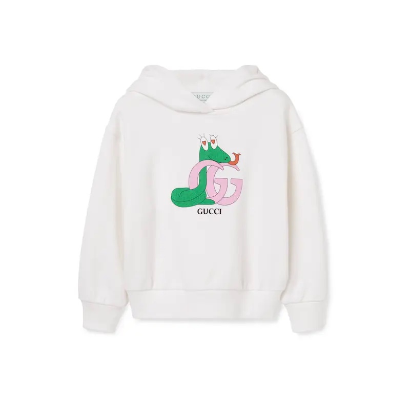 Gu*ci 25/新款 童装 可爱小蛇双G印花图案连帽卫衣!实物又软糯又舒适 手感杠杠滴!男女宝宝同款 码数100-150 钱元无折