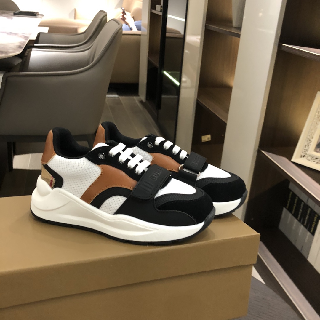 现货发售 Burberry巴宝莉儿童 最新魔术贴Vintage格纹厚底老爹运动鞋鞋- 满满的英伦风格,材料楦头最磨人,设计了魔术贴的款式颜值爆表,格子条纹又经典不容易过时。 想搭亲子的不要错过 超百搭 码数26-35