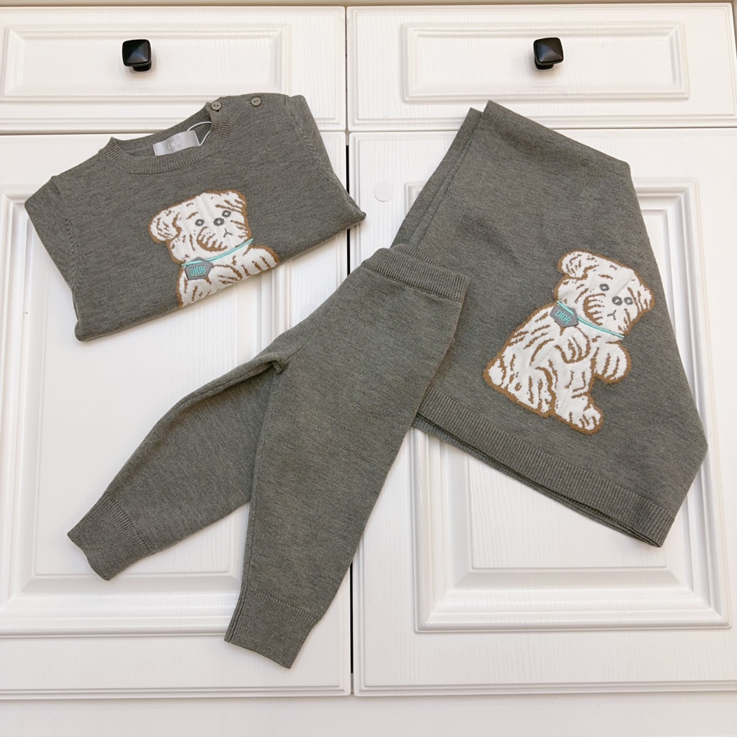 现货秒发 D家套装三件套 (毛衣+裤子+毯子) 单毯子 套装 对版纯棉针织 柔软亲肤 不起球,不掉色!深秋初冬春季必备 轻薄又保暖 三标齐全 高级复刻 高品质!刺绣logo SIZE: 73-80-90-100-110-120-130