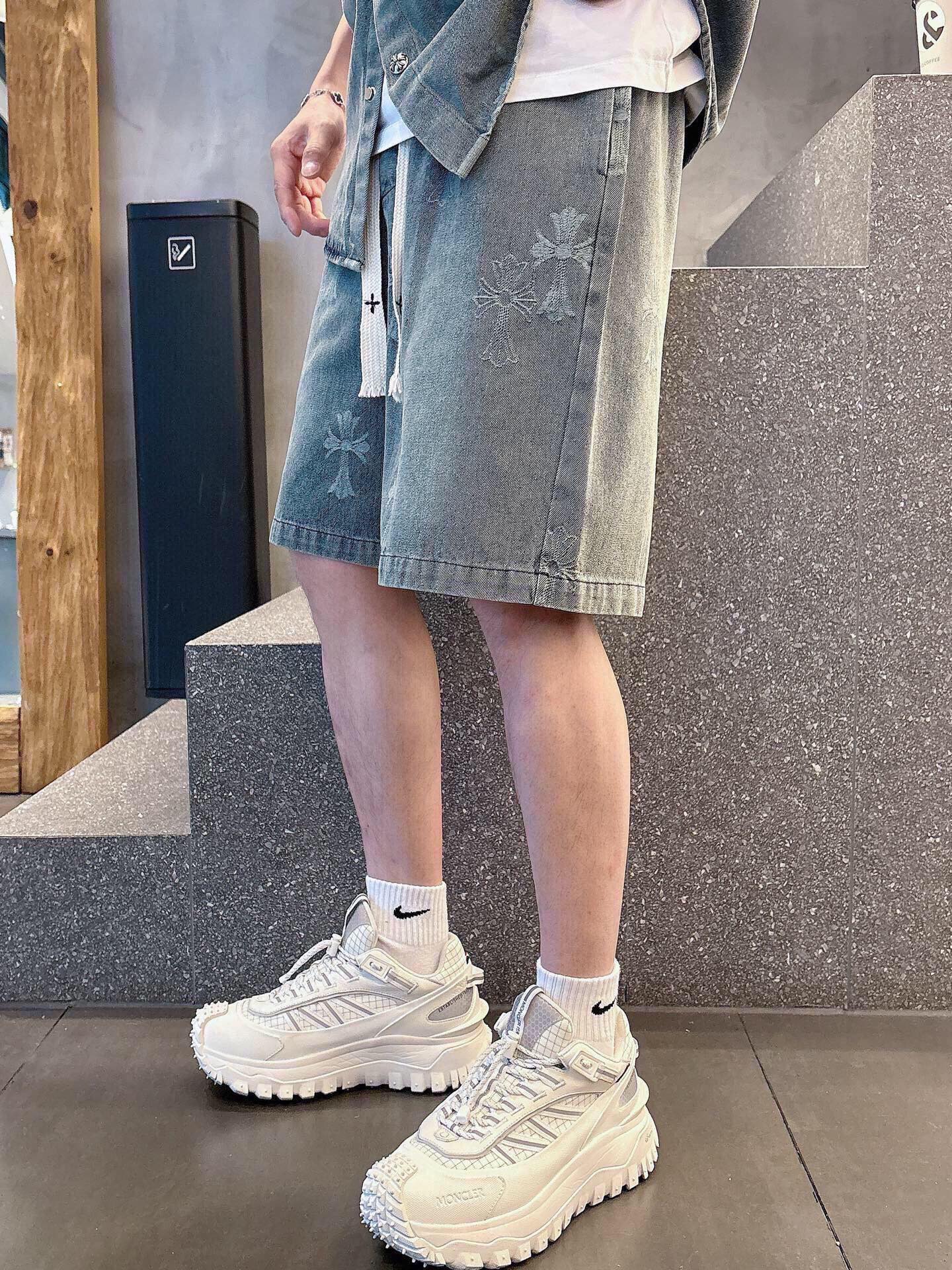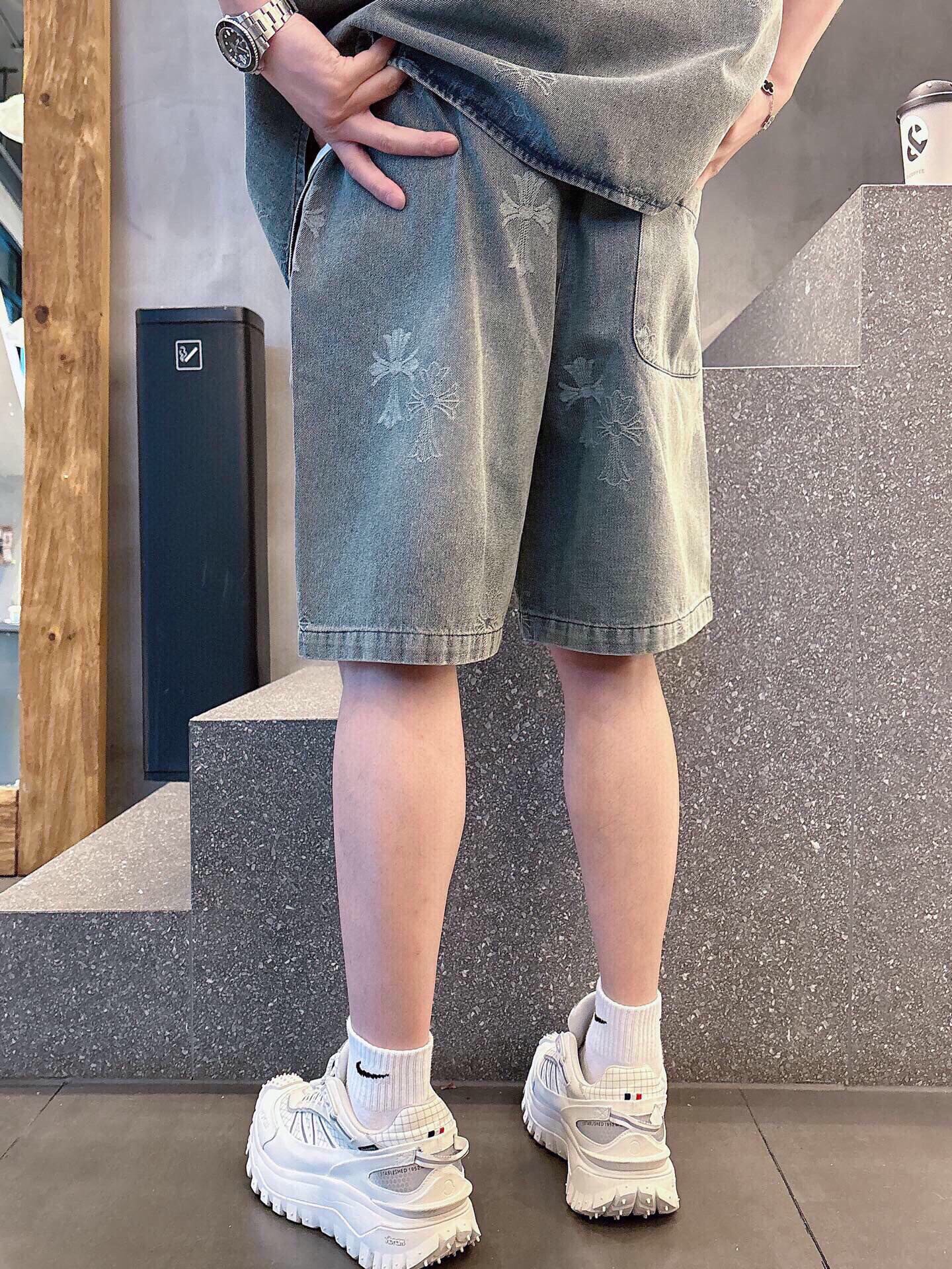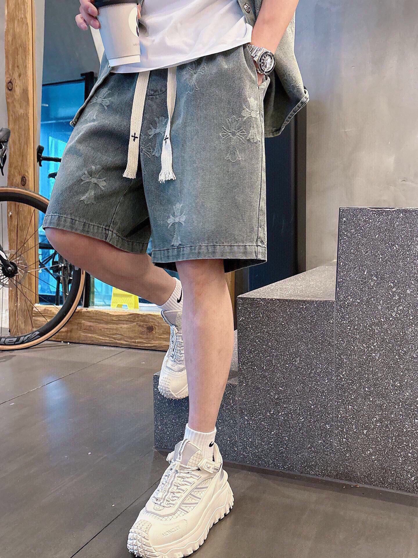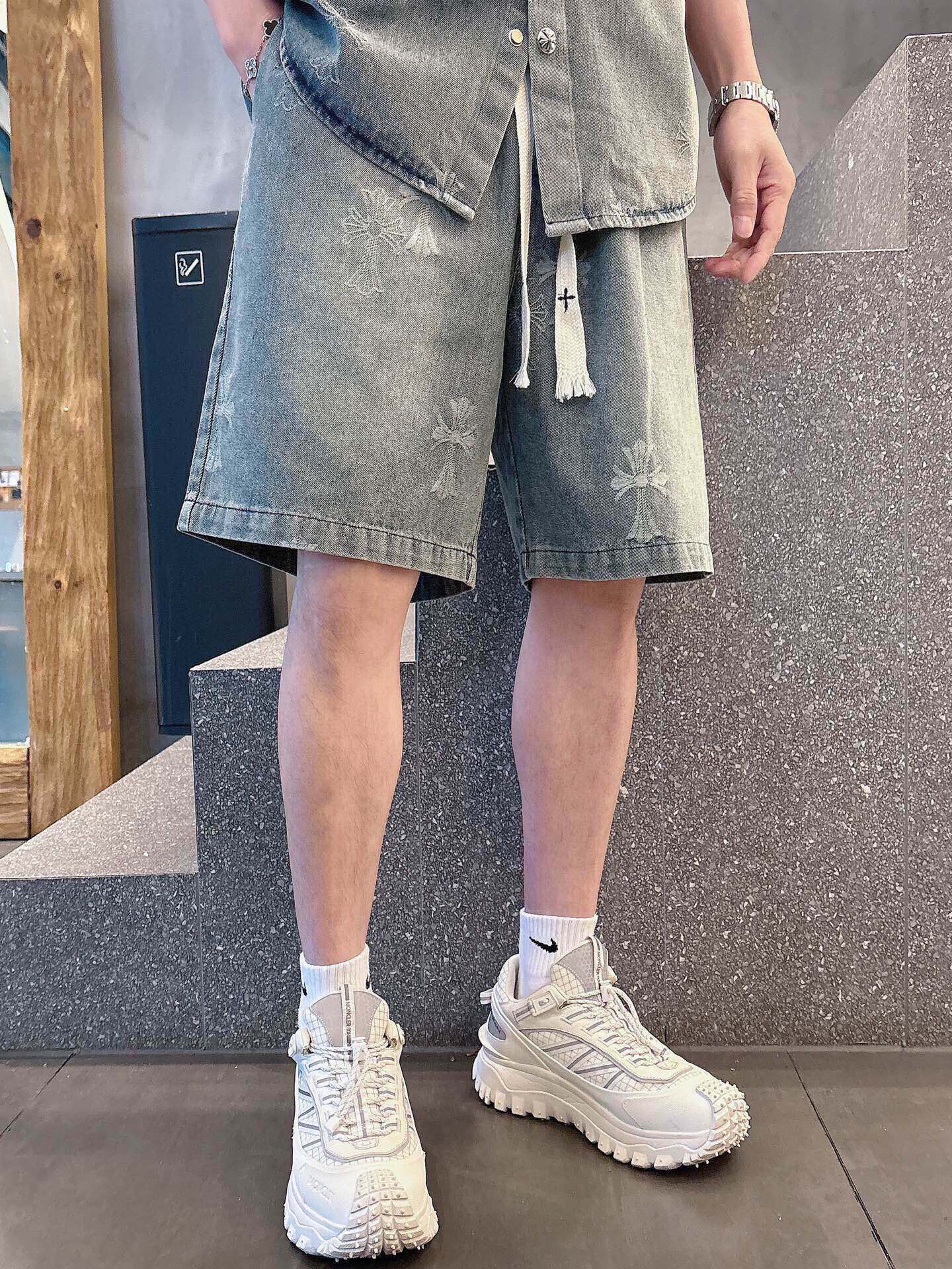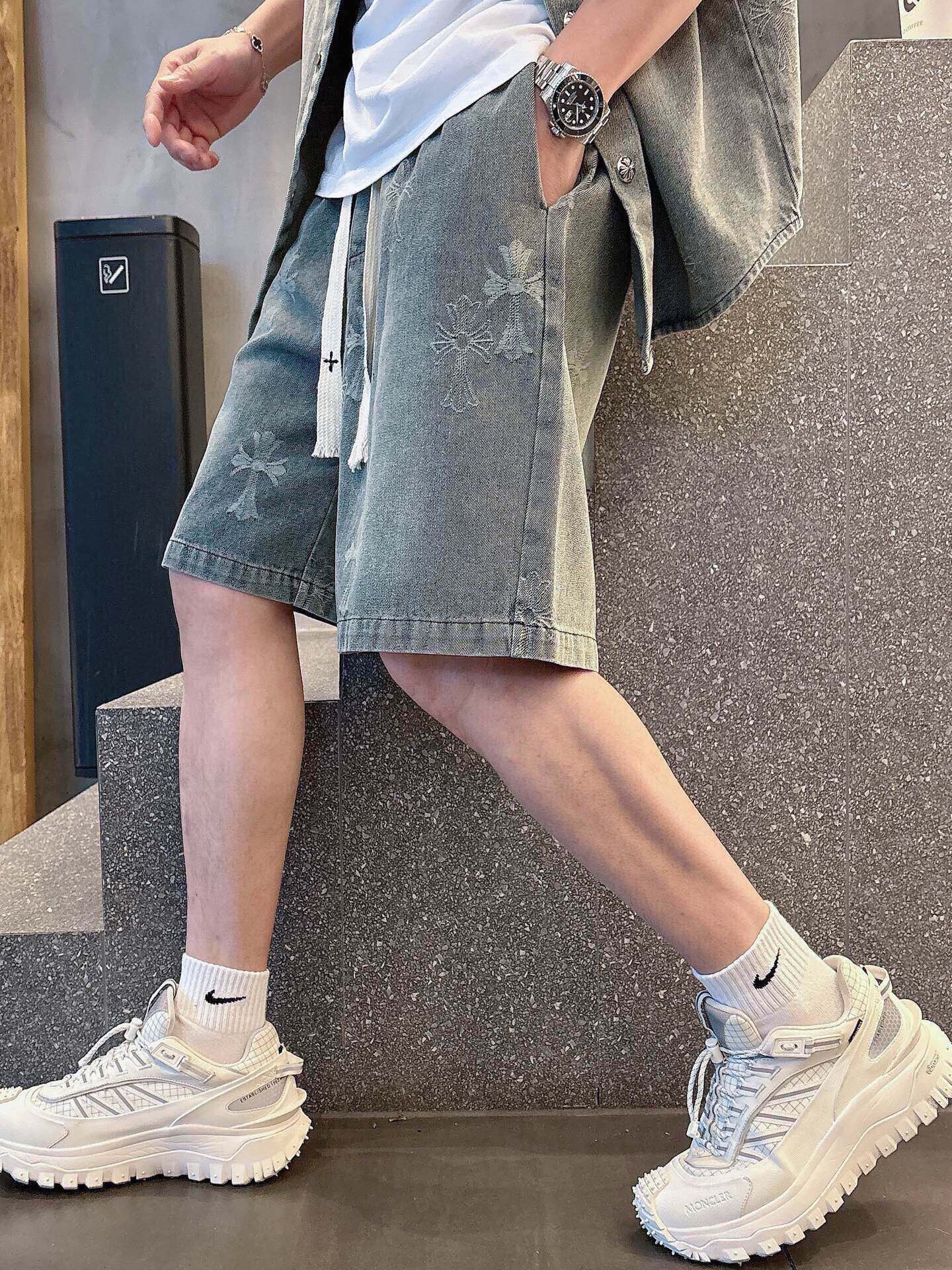 短裤 上衣 《克罗心系列提花牛仔短袖套装》 高端版本!专柜定制最新面料,定织定染的洗水牛仔。轻薄透气时尚个性,细节无可挑剔,品牌元素设计理念,体现高品质。呈现休闲裁剪,上身版型超赞!情侣 穿非常洋气!