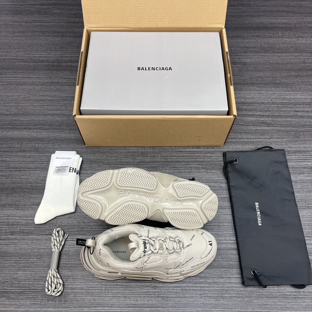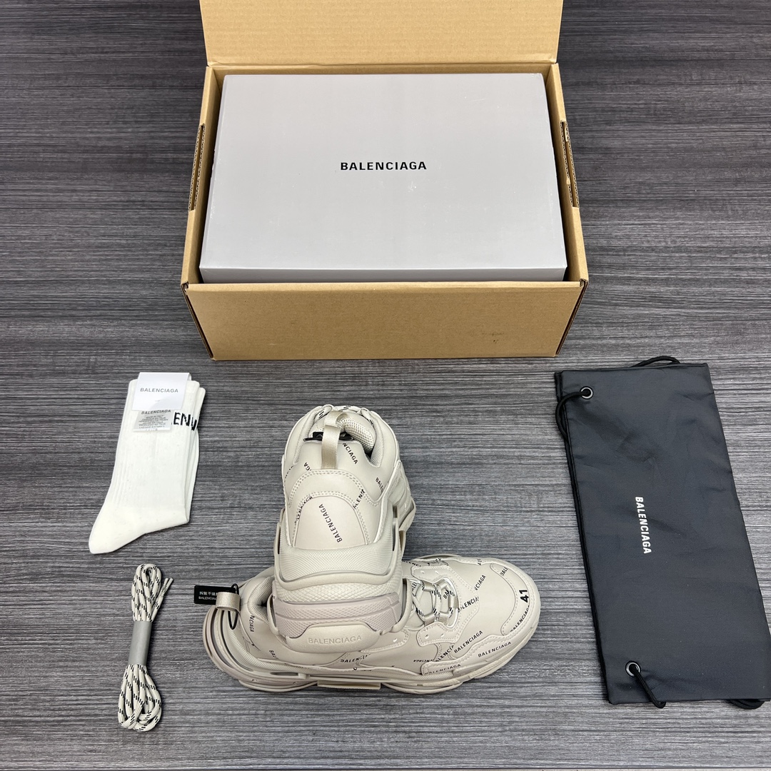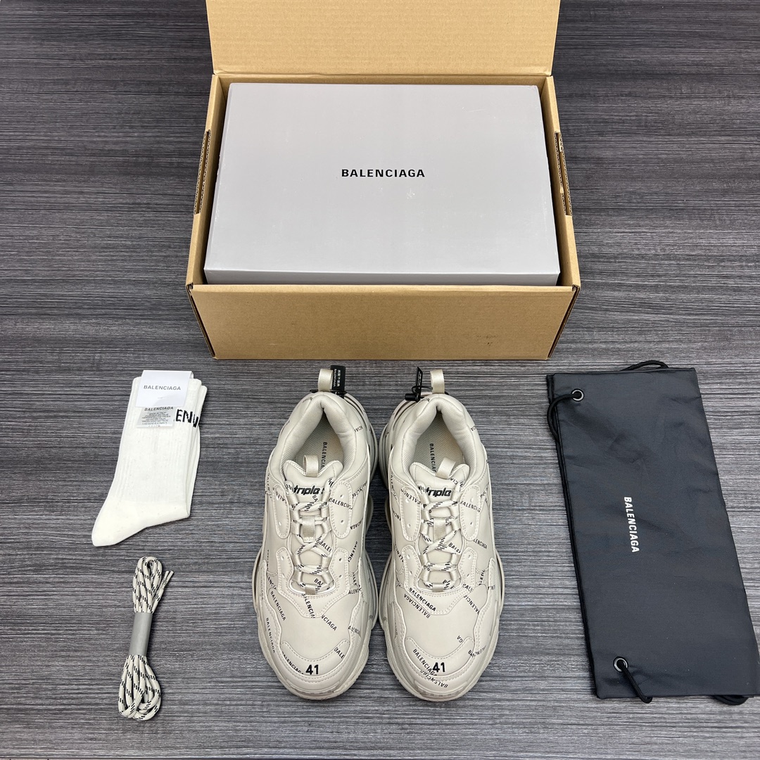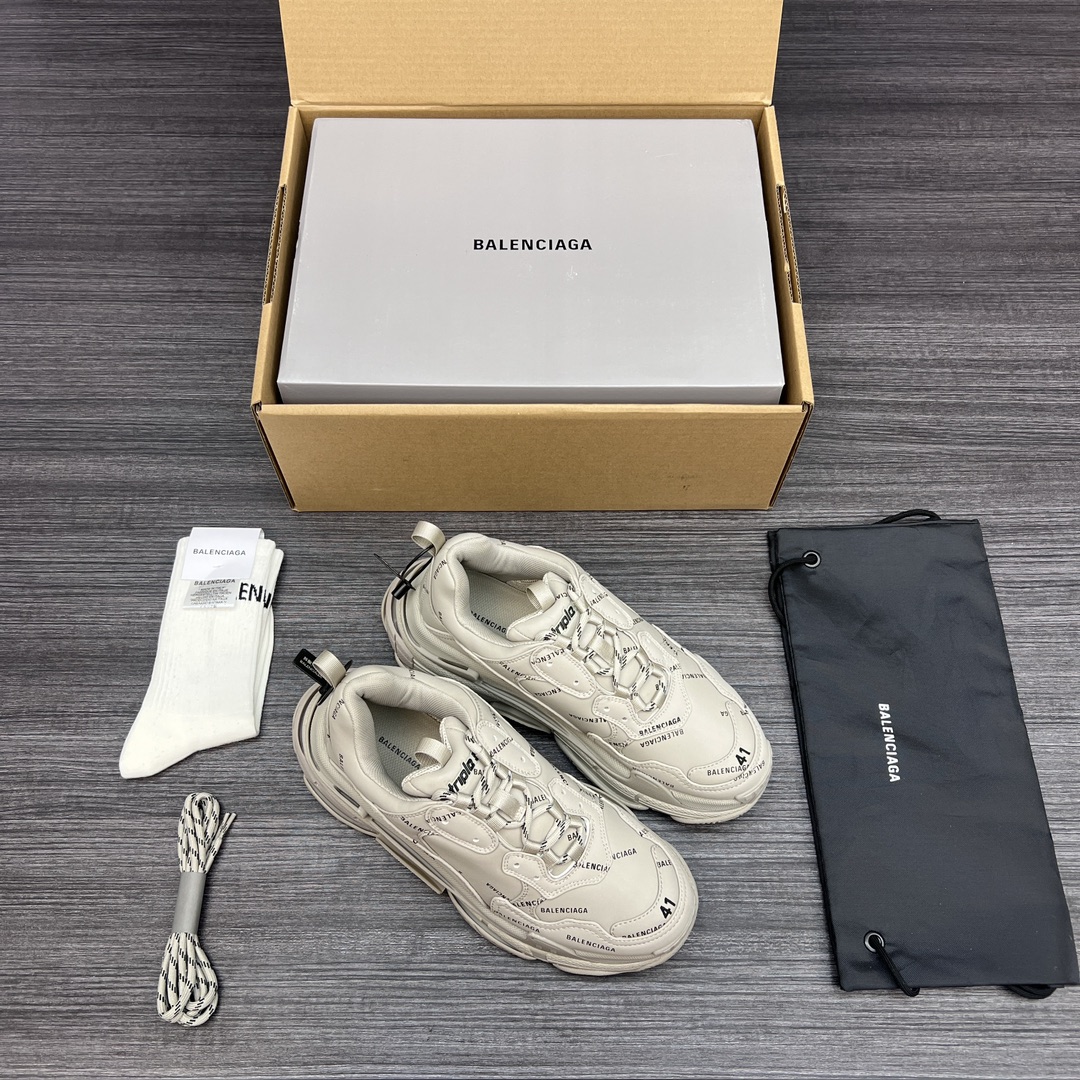 纯原做旧版本Balenciaga Triple S 联名款 一代巴黎世家 原版复刻 无限还原ZP正确字体粗细、位置、大小 ,正确侧边透气孔。正确的楦型让鞋子穿起来不掉脚,包裹舒适感十足。⚠️注意区分:垫脚一鞋一码标注! 鞋面: 进口头层牛皮,ZP一致纱网。 大底:意产八层组合大底 TPU发泡软底 原版一致”Balenciaga” 大底LOGO 非常立体。 包装:全套得物配件加固飞机盒包装! 码数:35-46码(正码)