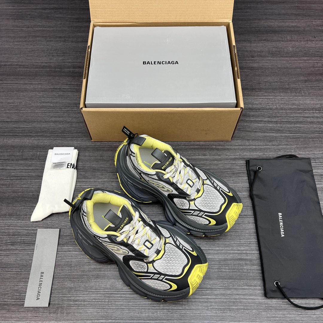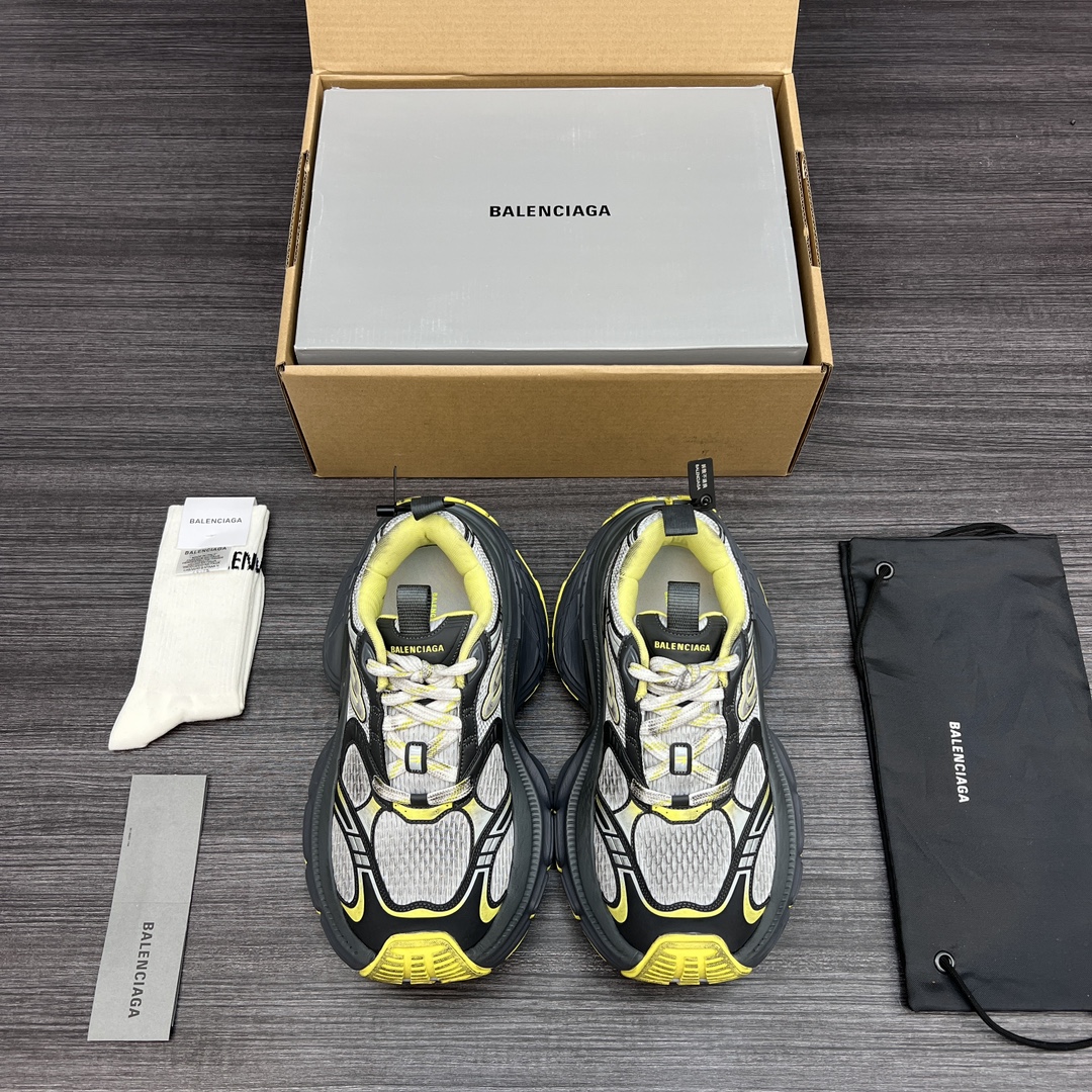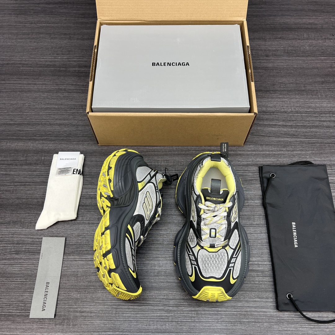 纯原巴黎世家十二代灰黄做旧。10XL运动鞋强势出货 重工打造 所有配件均通过定做出产正品裁片 正确字体电绣 粗细、位置、大小正确 侧边TPU 透气孔匹配意产原版 ,TPU软底 原版一致 “Balenciaga” 大底LOGO 立体感十足 原厂皮料 采购原厂网纱。 包装:全套得物配件加固飞机盒包装! 码数:35-46码!