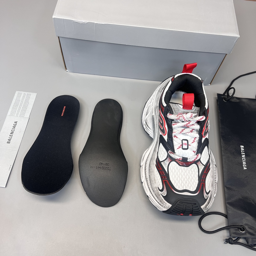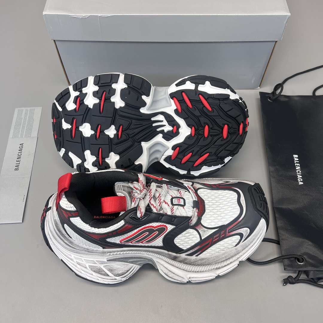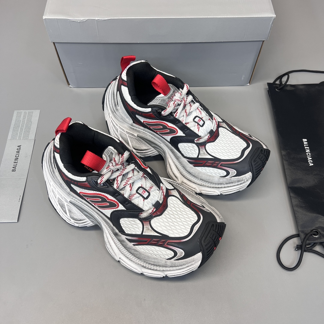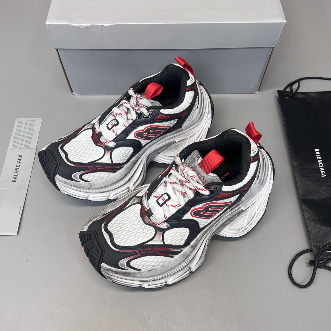 纯原巴黎世家十二代白灰红做旧。10XL运动鞋强势出货 重工打造 所有配件均通过定做出产正品裁片 正确字体电绣 粗细、位置、大小正确 侧边TPU 透气孔匹配意产原版 ,TPU软底 原版一致 “Balenciaga” 大底LOGO 立体感十足 原厂皮料 采购原厂网纱。 码数:35-46码!
