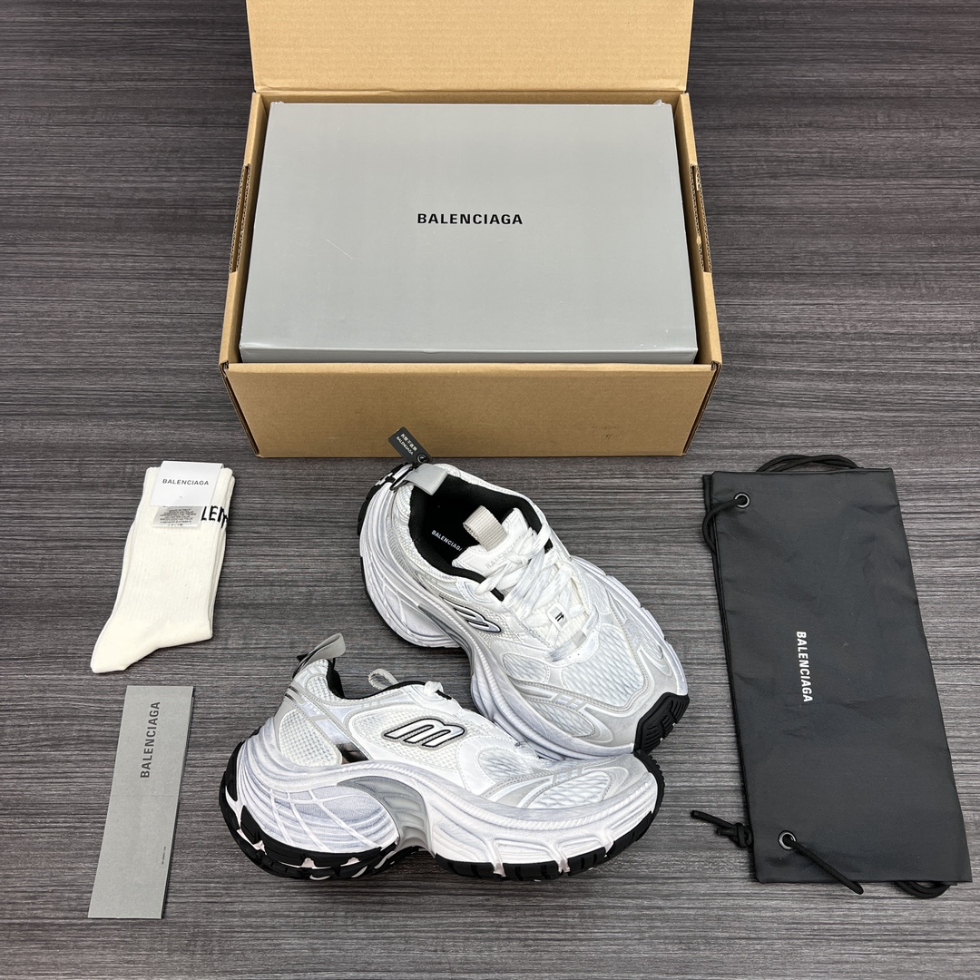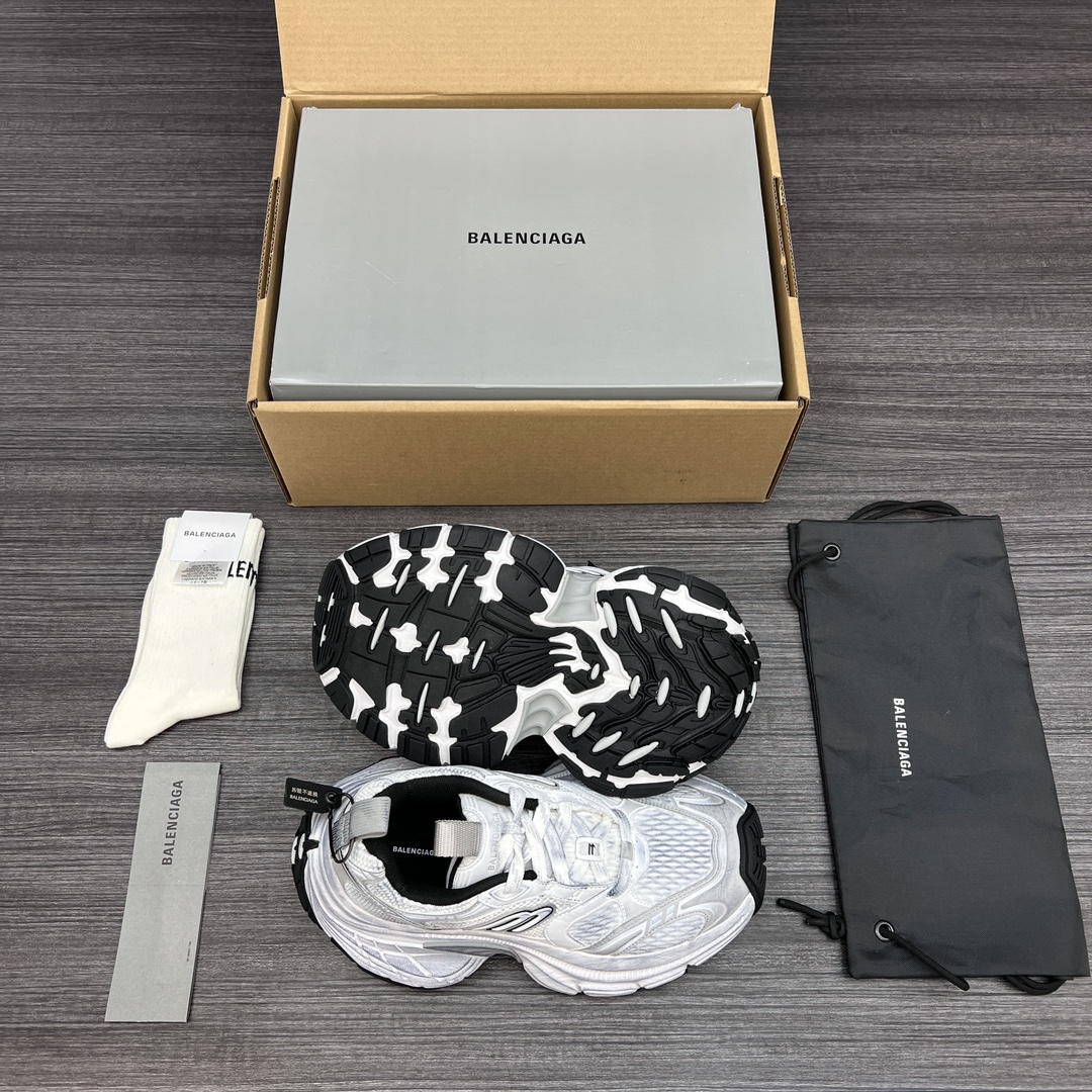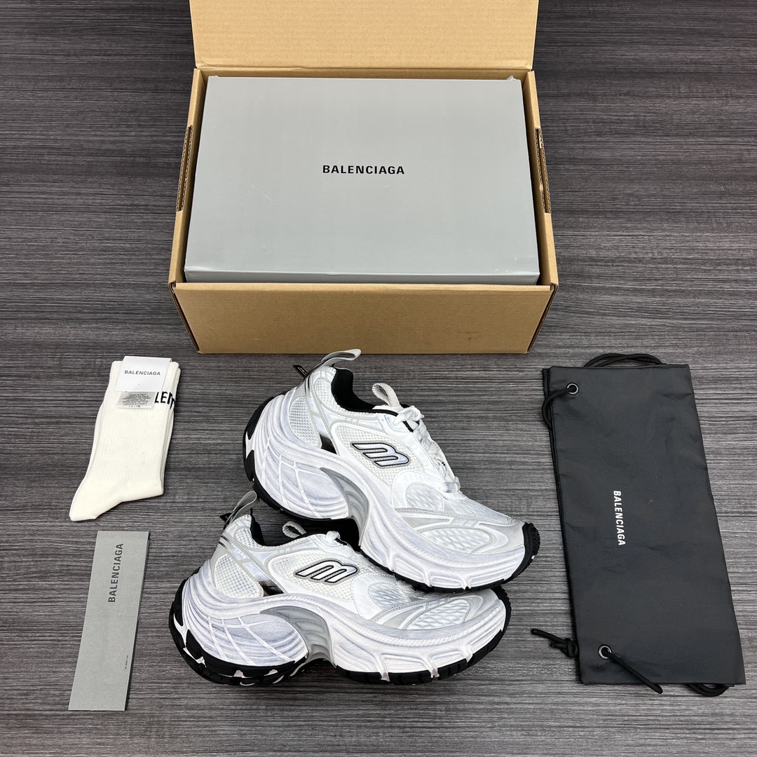 纯原巴黎世家十二代白色做旧。10XL运动鞋强势出货 重工打造 所有配件均通过定做出产正品裁片 正确字体电绣 粗细、位置、大小正确 侧边TPU 透气孔匹配意产原版 ,TPU软底 原版一致 “Balenciaga” 大底LOGO 立体感十足 原厂皮料 采购原厂网纱。