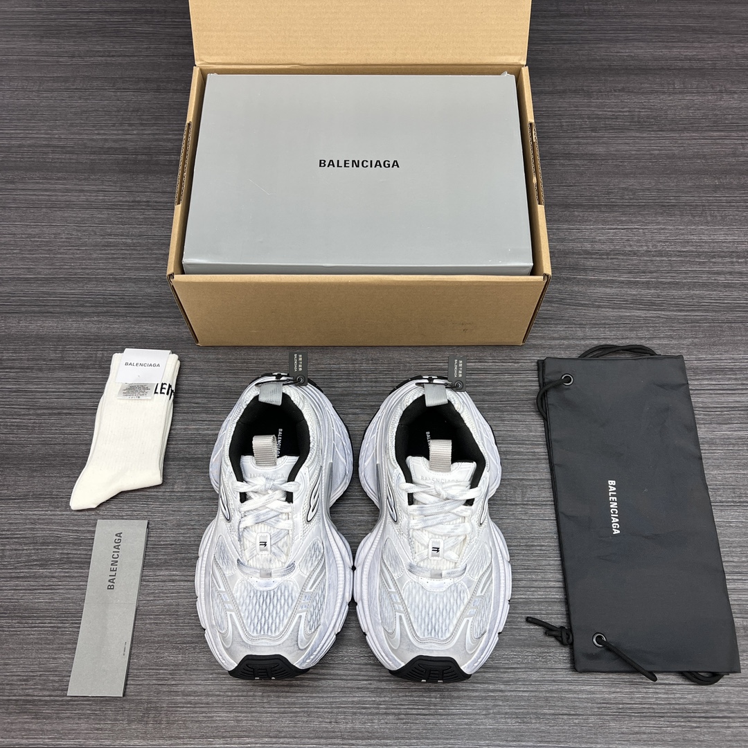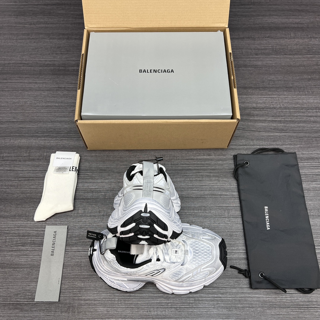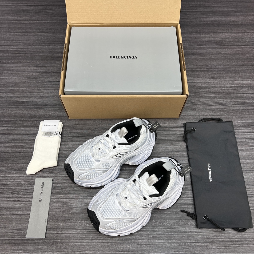 纯原巴黎世家十二代白色做旧。10XL运动鞋强势出货 重工打造 所有配件均通过定做出产正品裁片 正确字体电绣 粗细、位置、大小正确 侧边TPU 透气孔匹配意产原版 ,TPU软底 原版一致 “Balenciaga” 大底LOGO 立体感十足 原厂皮料 采购原厂网纱。
