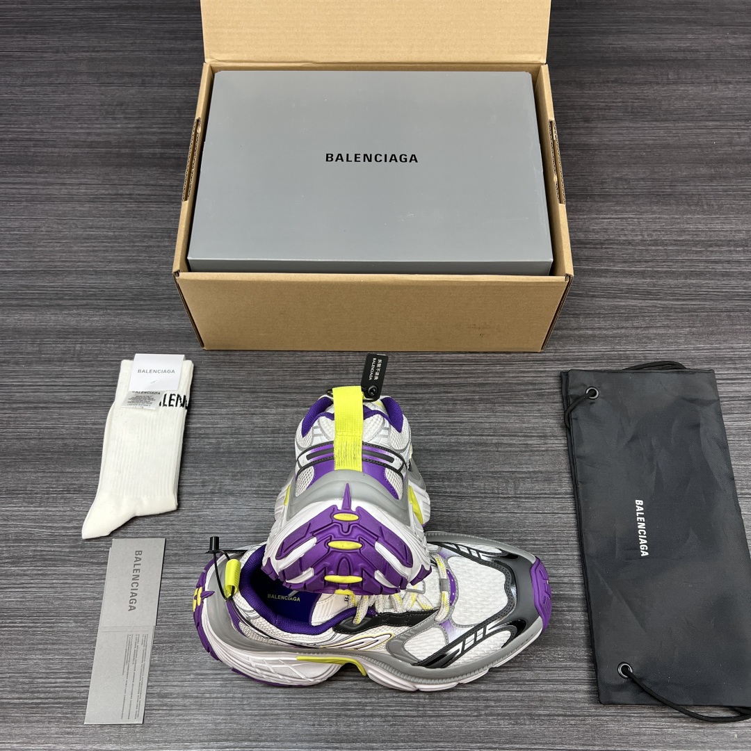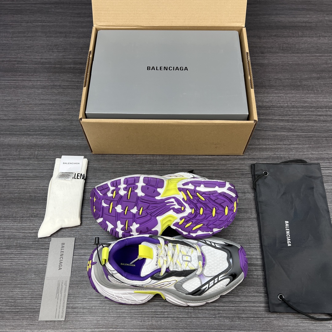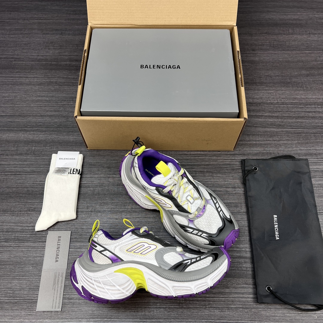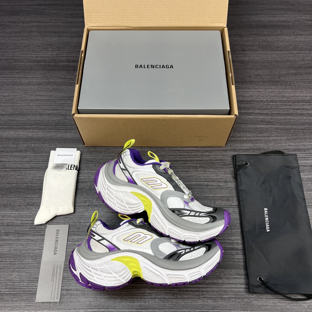 纯原版本Balenciaga巴黎世家 6XL 圆头系带 低帮 老爹鞋白紫。重工打造 所有配件均通过定做出产正品裁片 正确字体电绣 粗细、位置、大小正确 侧边TPU 透气孔匹配意产原版 ,TPU软底 原版一致 “Balenciaga” 大底LOGO 立体感十足 原厂皮料 采购原厂网纱。6XL比10XL大底相对显修长不会太宽体! 包装:全套得物配件加固飞机盒包装! 码数:35-46码!