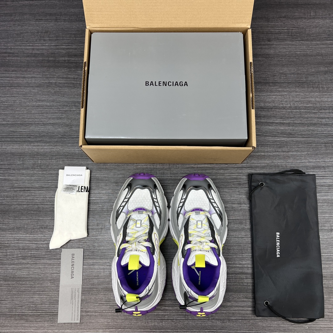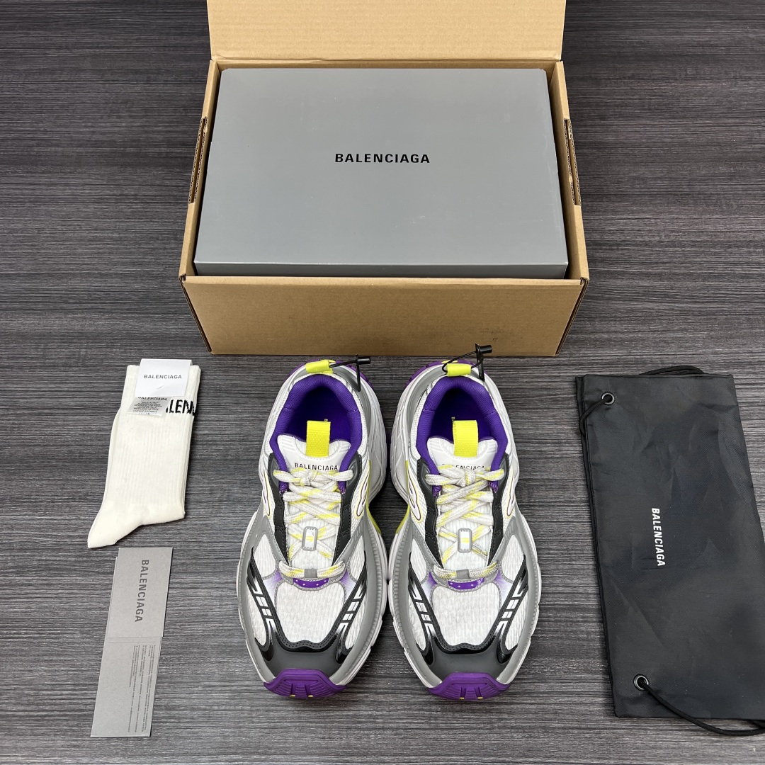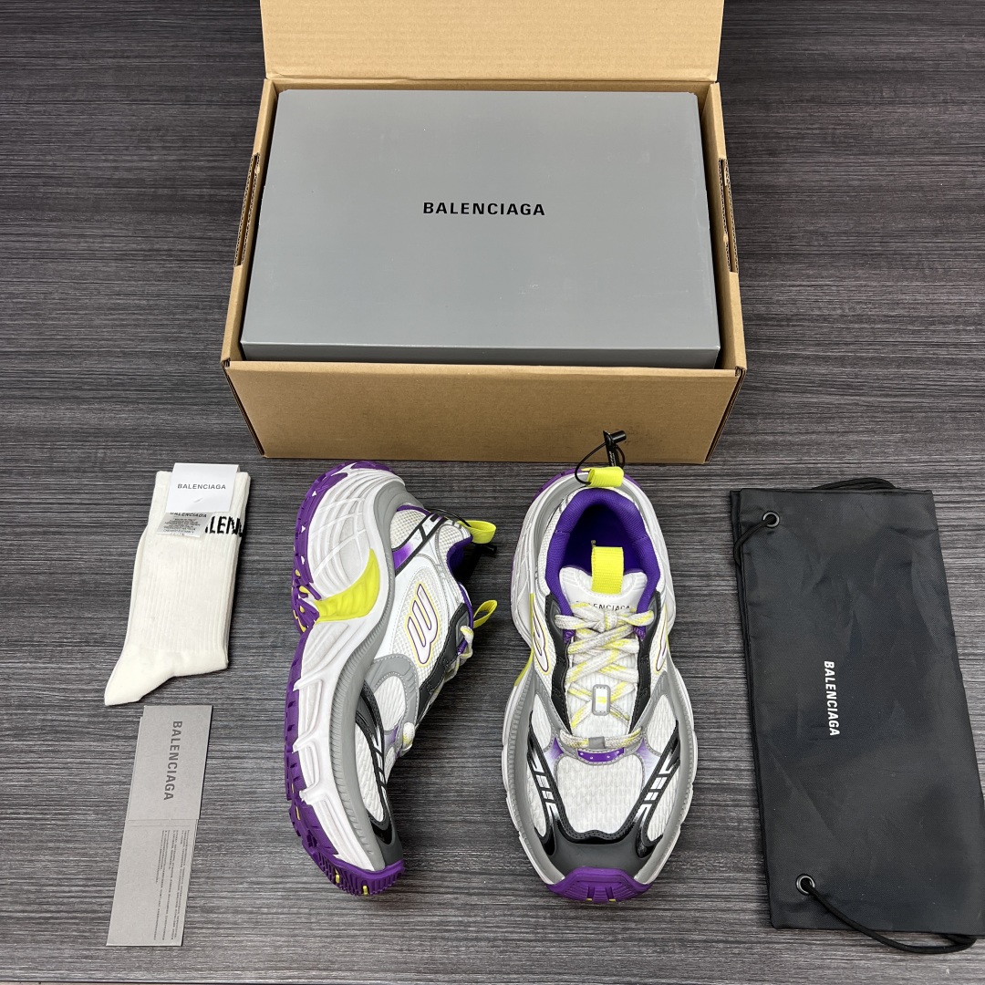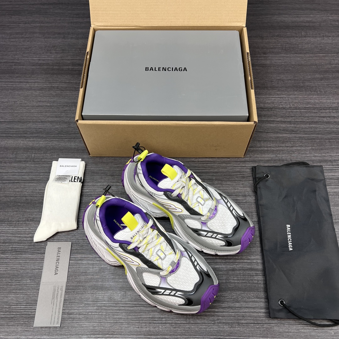 纯原版本Balenciaga巴黎世家 6XL 圆头系带 低帮 老爹鞋白紫。重工打造 所有配件均通过定做出产正品裁片 正确字体电绣 粗细、位置、大小正确 侧边TPU 透气孔匹配意产原版 ,TPU软底 原版一致 “Balenciaga” 大底LOGO 立体感十足 原厂皮料 采购原厂网纱。6XL比10XL大底相对显修长不会太宽体! 包装:全套得物配件加固飞机盒包装! 码数:35-46码!