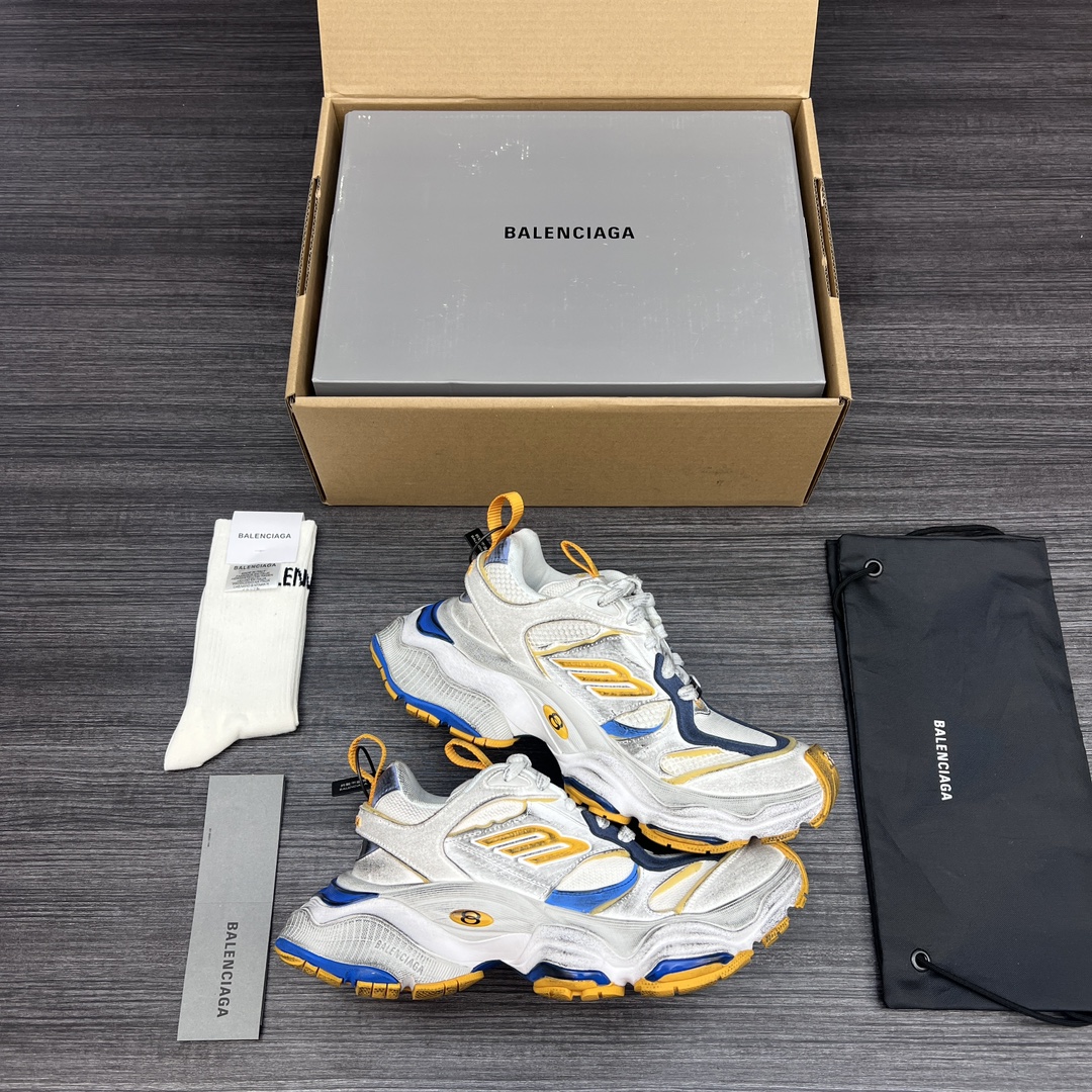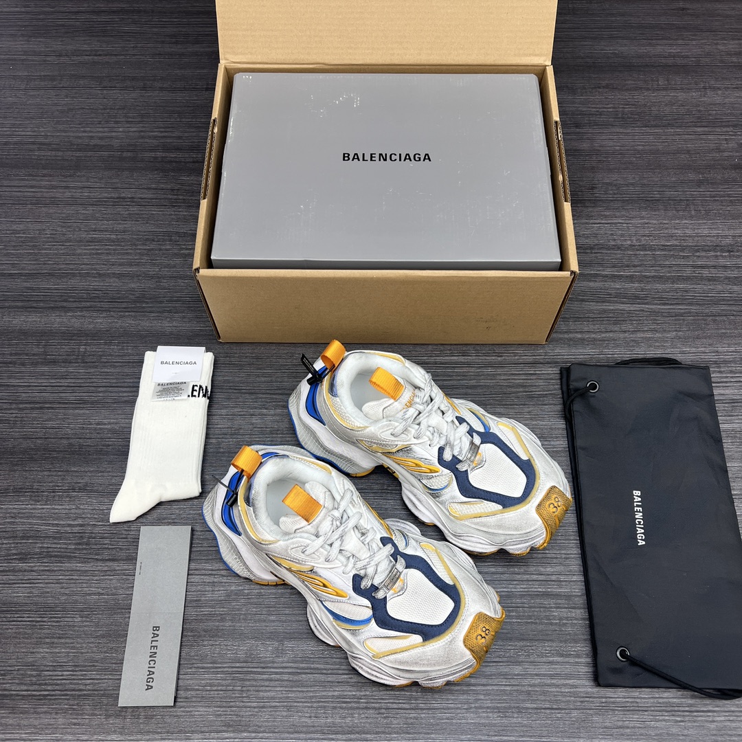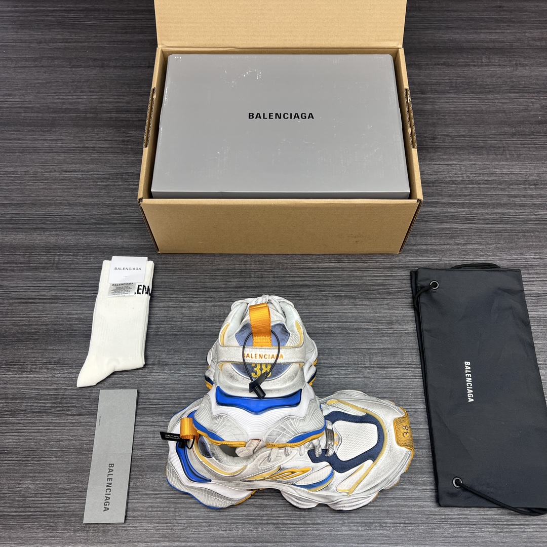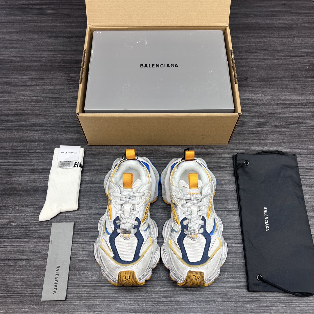 巴黎世家打造的一双天生为阔腿Cargo而生的鞋款。外观设计上除了「比大更大」,做旧的厚网布鞋面,还有一种经典Track鞋款融合New Balance 9060中底之即视感。标志性Sporty B Logo置于鞋面中间。做旧擦色具有超强复古感!