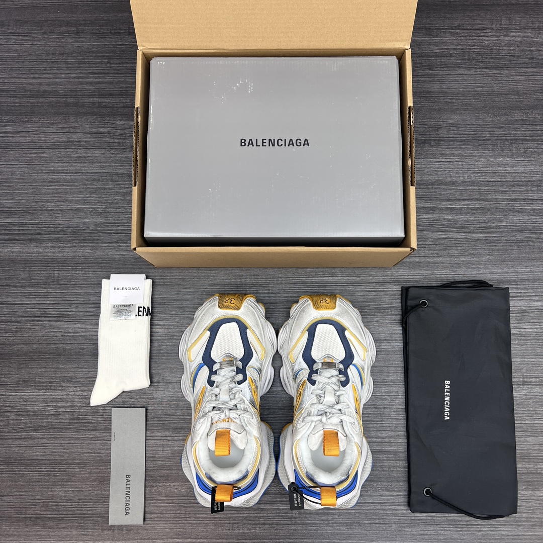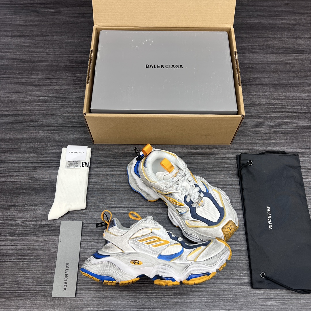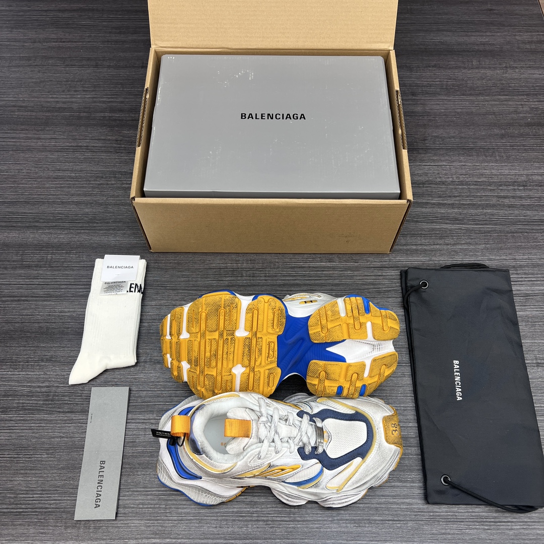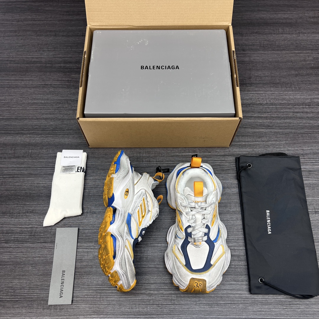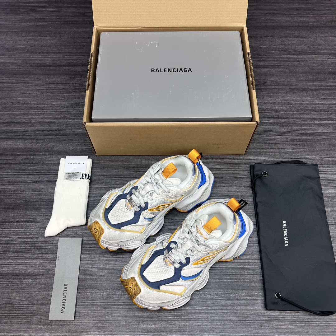 巴黎世家打造的一双天生为阔腿Cargo而生的鞋款。外观设计上除了「比大更大」,做旧的厚网布鞋面,还有一种经典Track鞋款融合New Balance 9060中底之即视感。标志性Sporty B Logo置于鞋面中间。做旧擦色具有超强复古感!