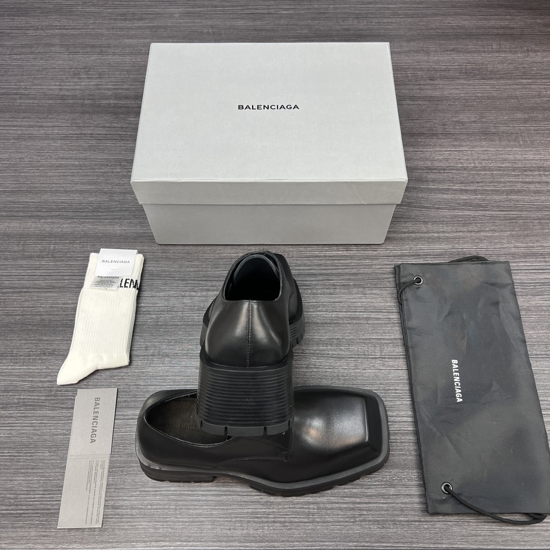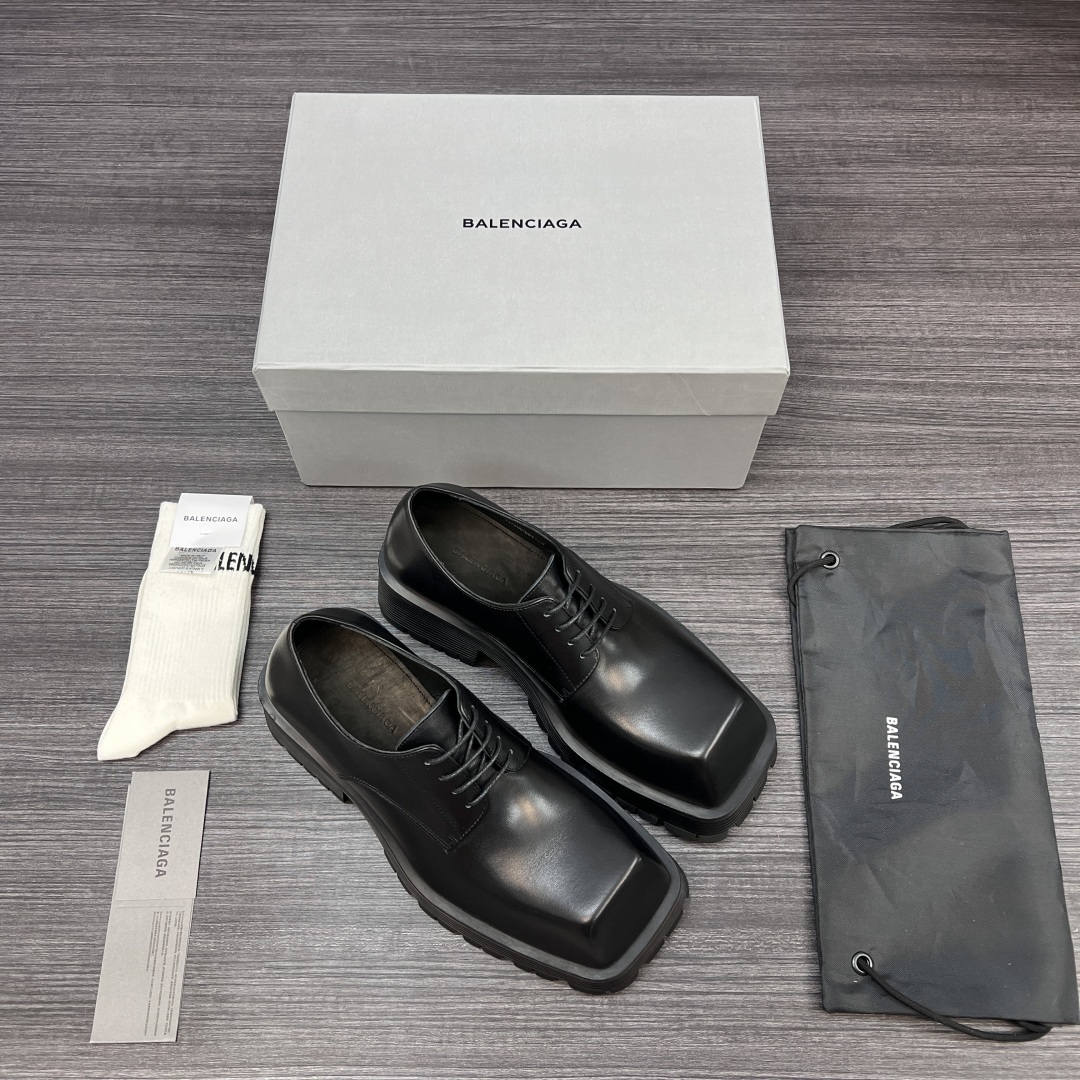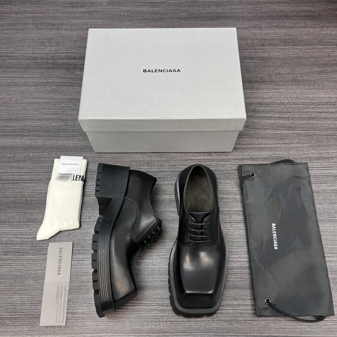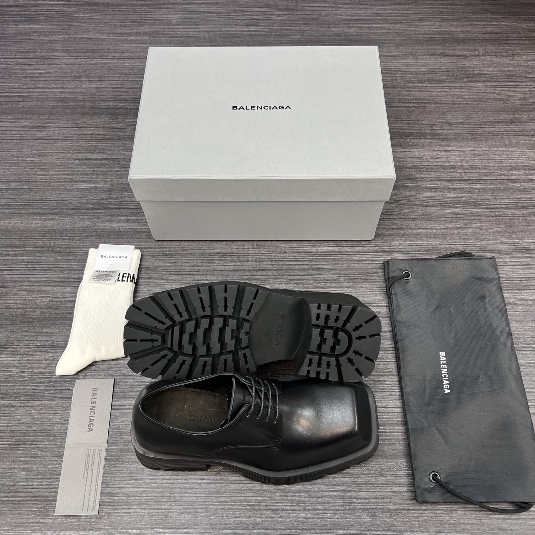 纯原版本Balenciaga巴黎世家 Trooper 皮革 4孔绑带鞋面时尚 休闲鞋 男款 黑色牛皮。 巴黎世家德比鞋经典之作方头皮鞋.面料采用进口牛皮制作.内里水洗牛皮.大底防滑橡胶组合大底。 码数:39-46(脚瘦拿小一码 46定做不退换)