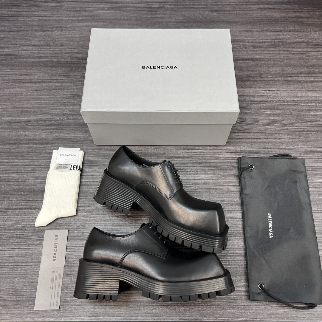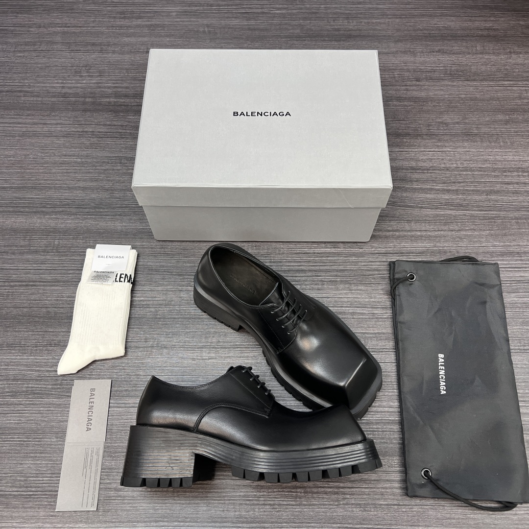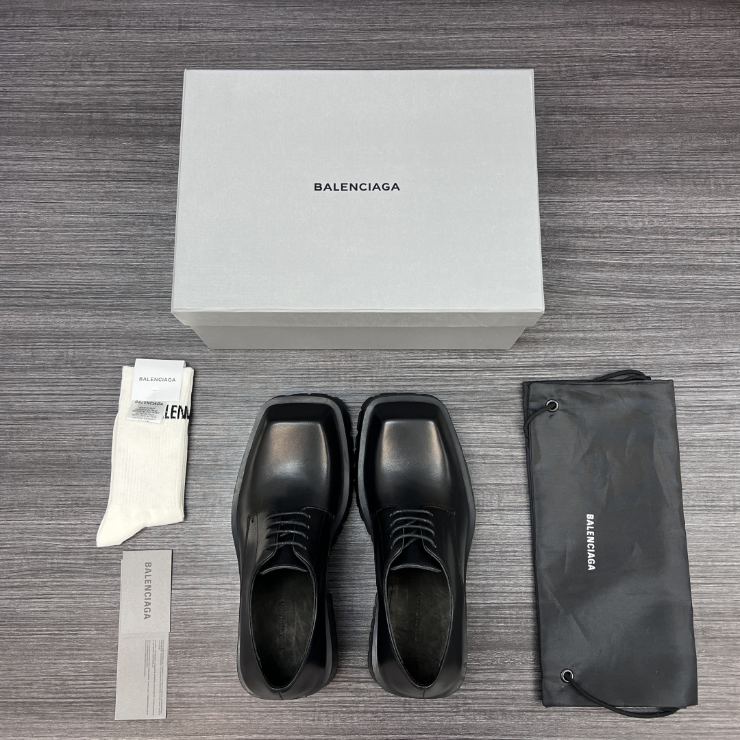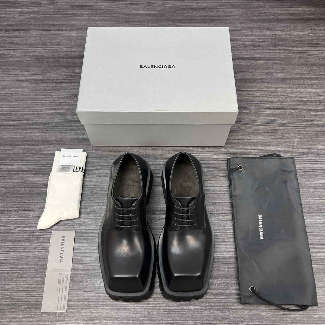 纯原版本Balenciaga巴黎世家 Trooper 皮革 4孔绑带鞋面时尚 休闲鞋 男款 黑色牛皮。 巴黎世家德比鞋经典之作方头皮鞋.面料采用进口牛皮制作.内里水洗牛皮.大底防滑橡胶组合大底。 码数:39-46(脚瘦拿小一码 46定做不退换)