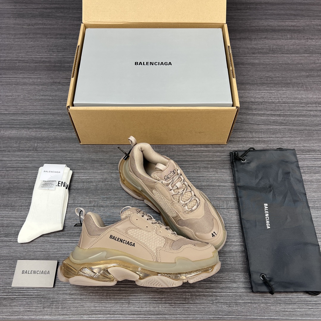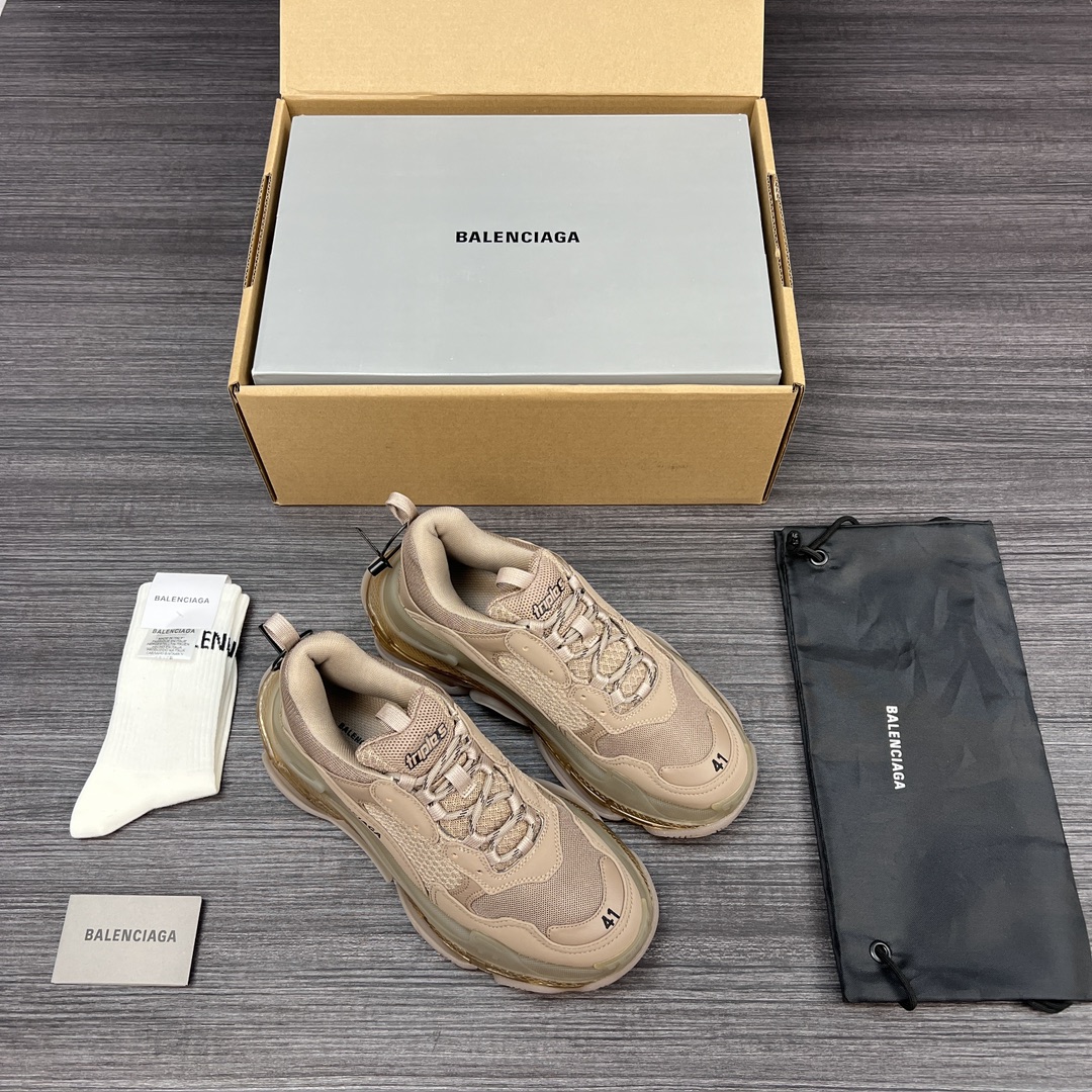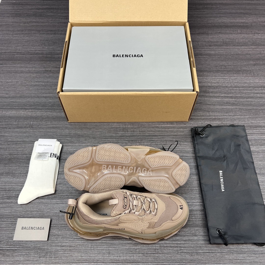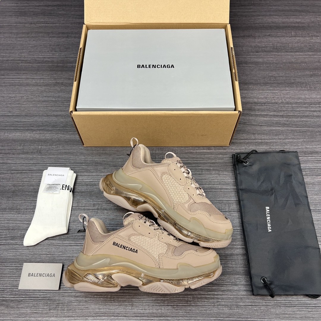 纯原版本 Balenciaga Triple S 巴黎世家 官方发售气垫版本纯原版本 正确字体电绣 粗细、位置、大小正确侧边TPU 透气孔匹配意产原版正确气垫分离大底,⚠️注意区分一鞋一码标注!原版大底做旧工艺 原版一致”Balenciaga” 大底LOGO 。鞋面采购原厂网纱。 包装:全套得物配件加固飞机盒包装! 码数:35-45码(正码)