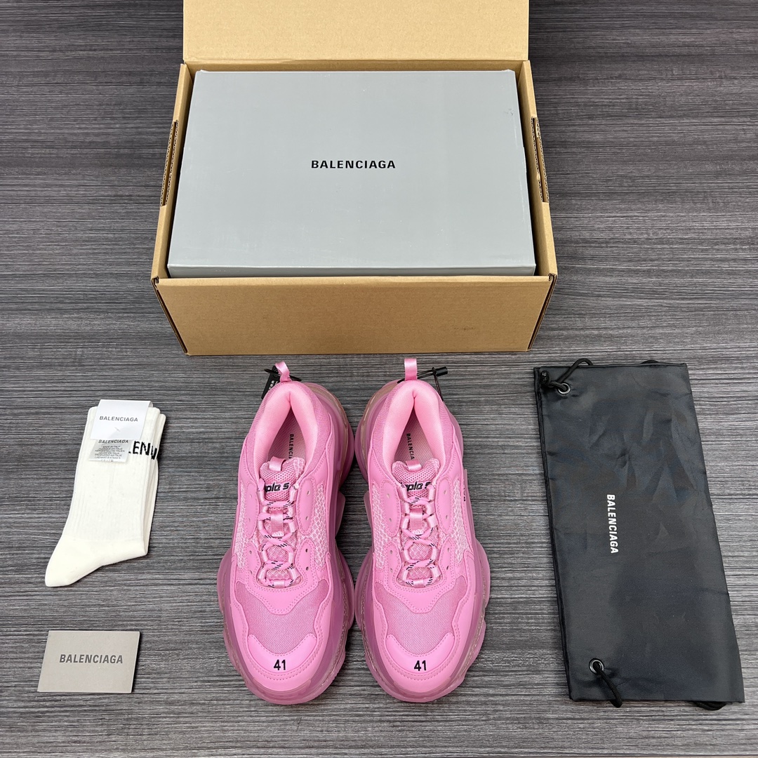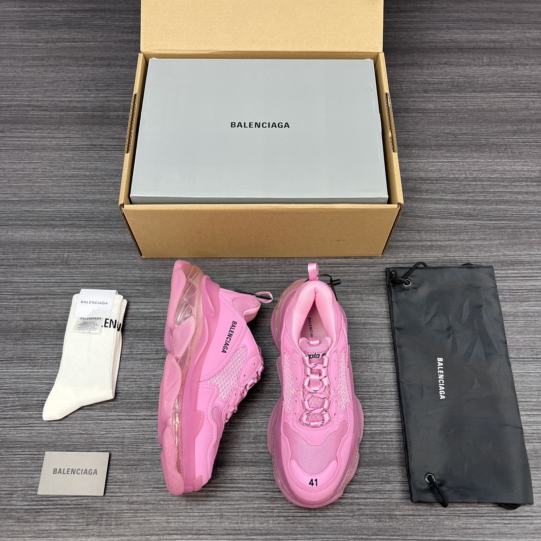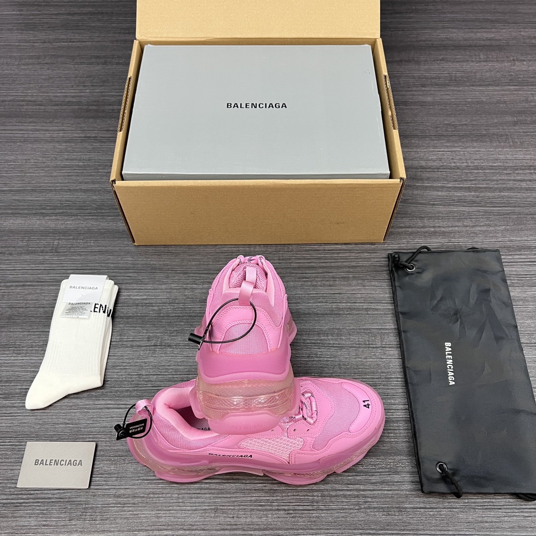纯原版本 Balenciaga Triple S 巴黎世家 官方发售气垫版本纯原版本 正确字体电绣 粗细、位置、大小正确侧边TPU 透气孔匹配意产原版正确气垫分离大底,⚠️注意区分一鞋一码标注!原版大底做旧工艺 原版一致”Balenciaga” 大底LOGO 。鞋面采购原厂网纱。