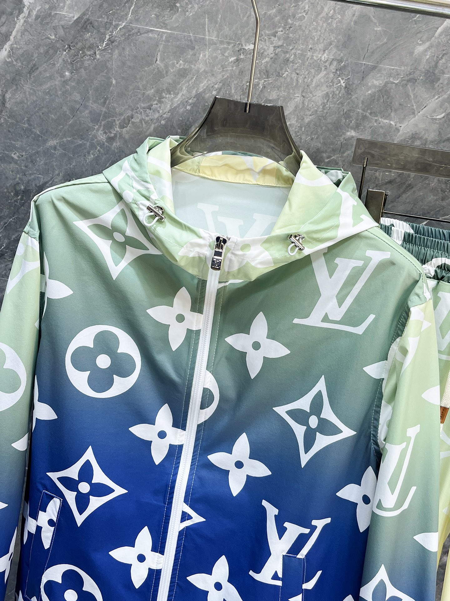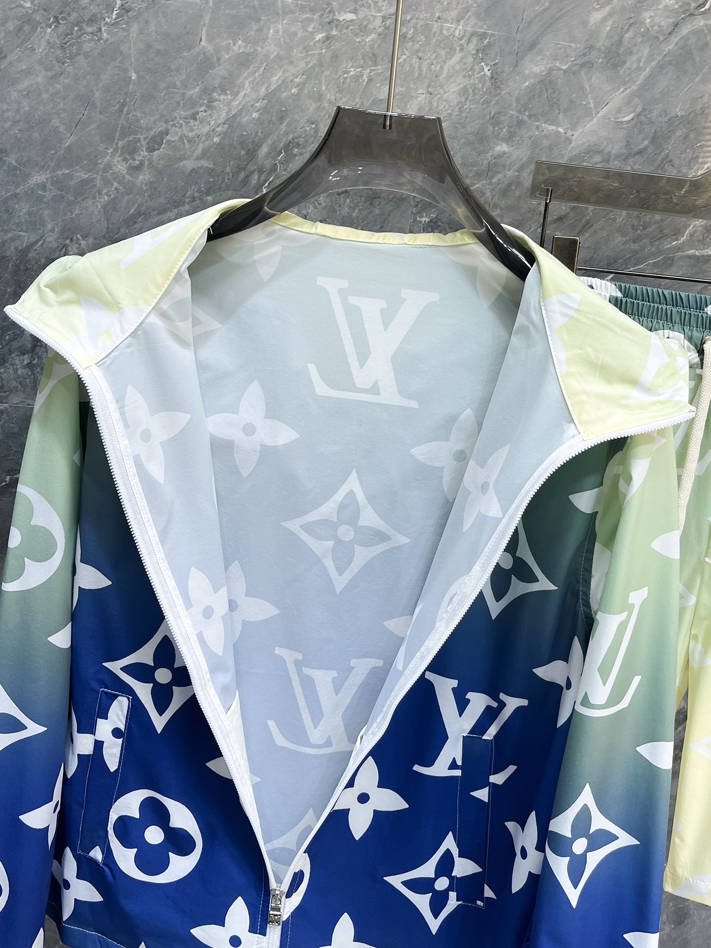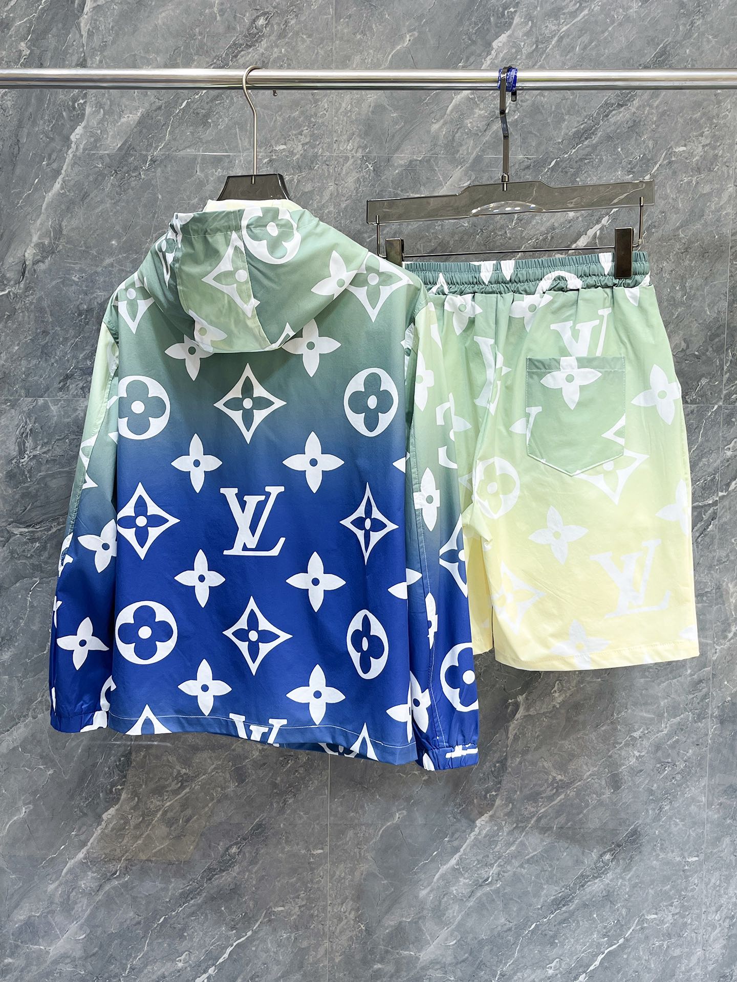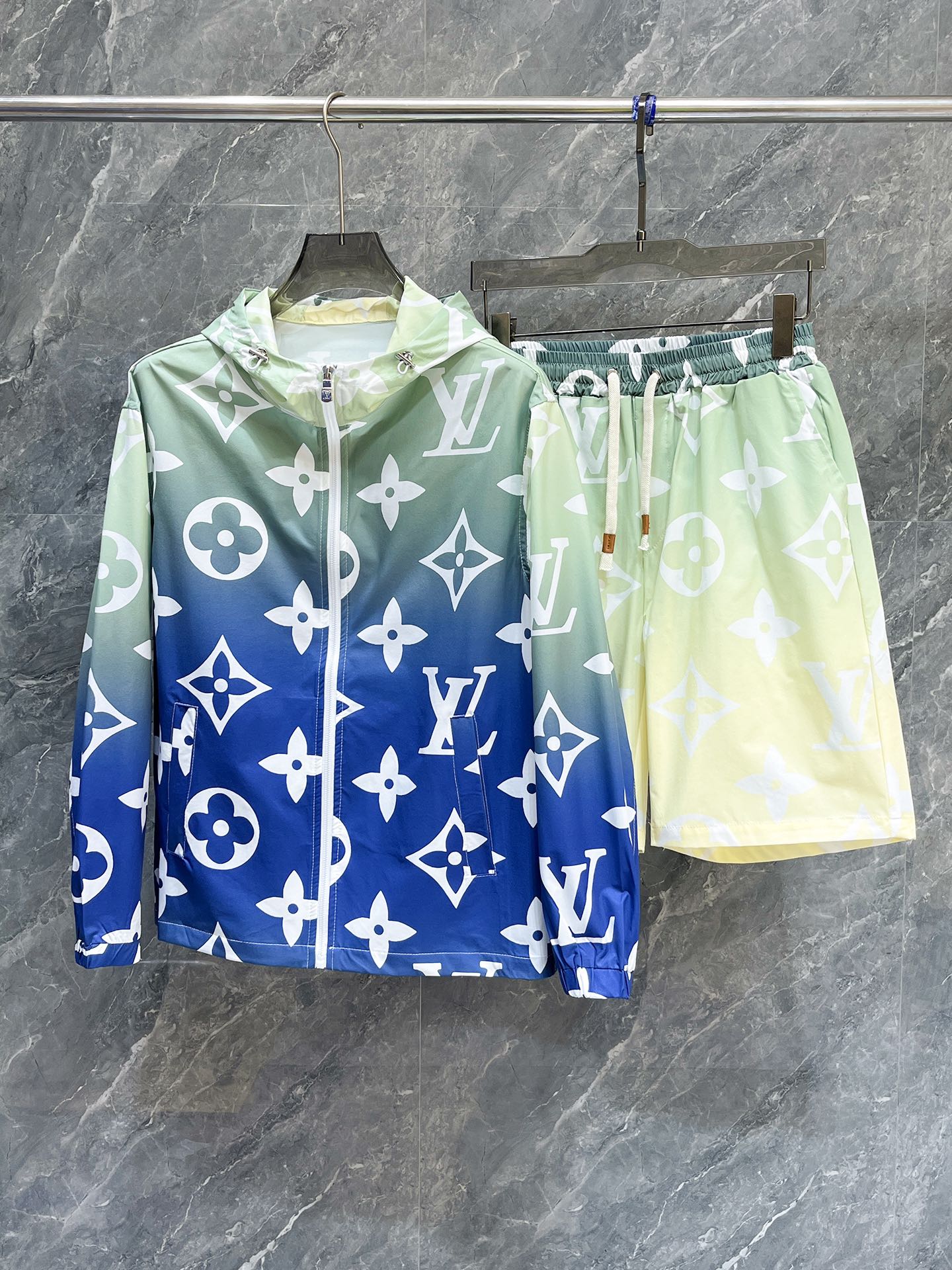 路易威登LV 2025夏季防晒衣短裤套装,海外专柜同步 奢华高级定制 任何人都可以轻松驾驭,客供进口聚纤维面料 手软舒适有型 吸汗透气 ,外贸公司订单,国内一线代工厂出品,订制高密度面料,过水不变型,奢华上身显年轻,街头时尚居家必备款。 码数:M~XXXL下单报身高体重