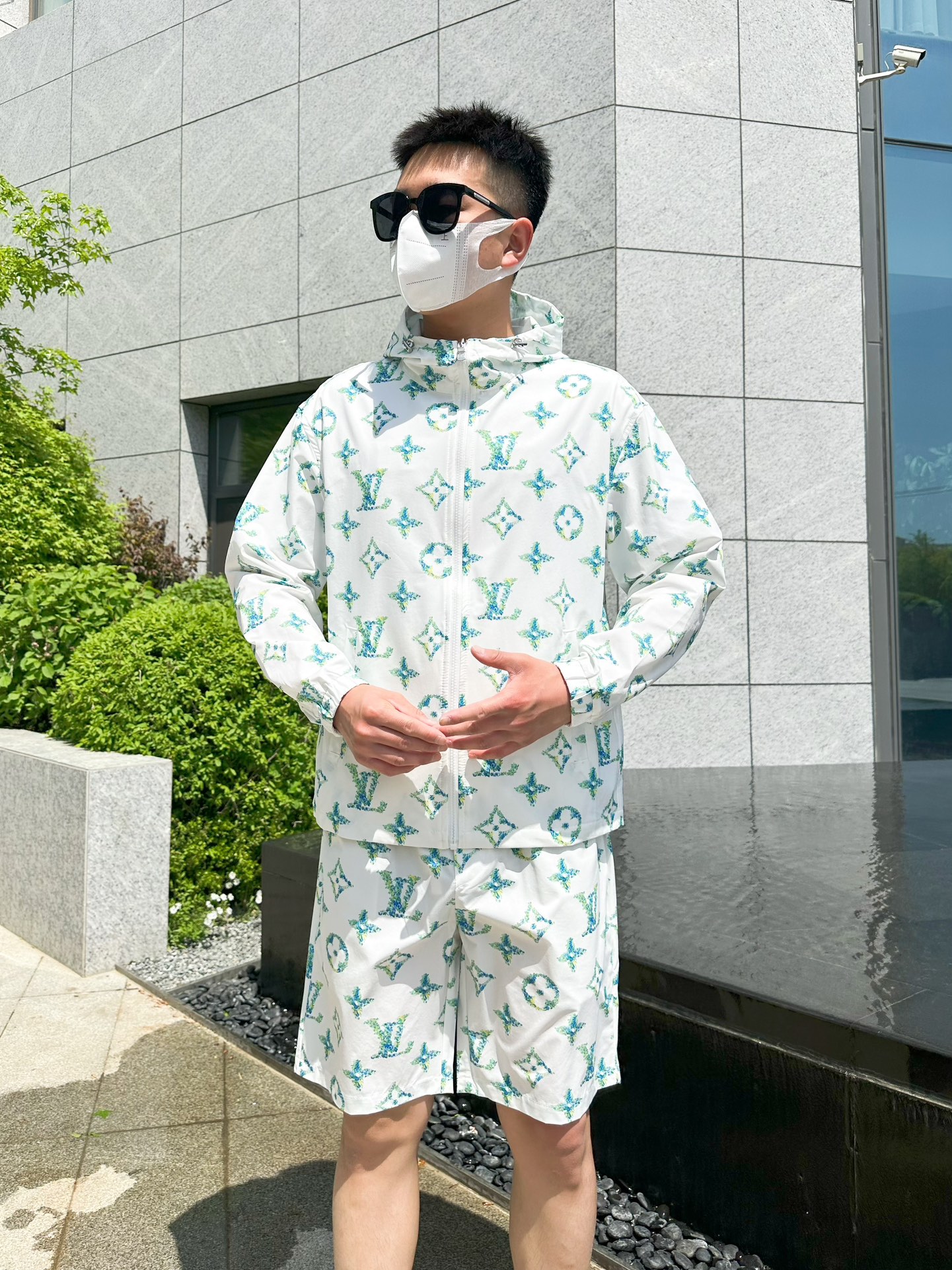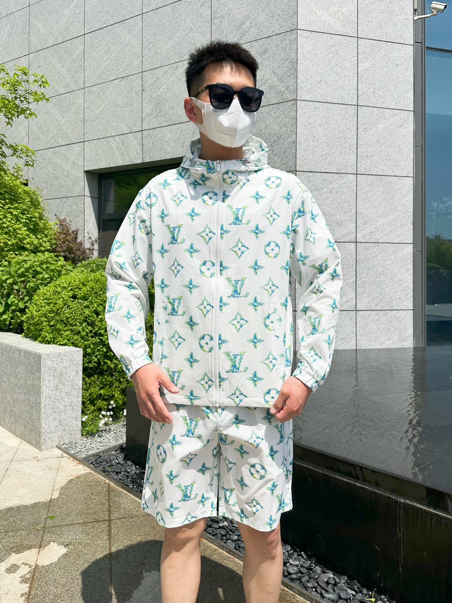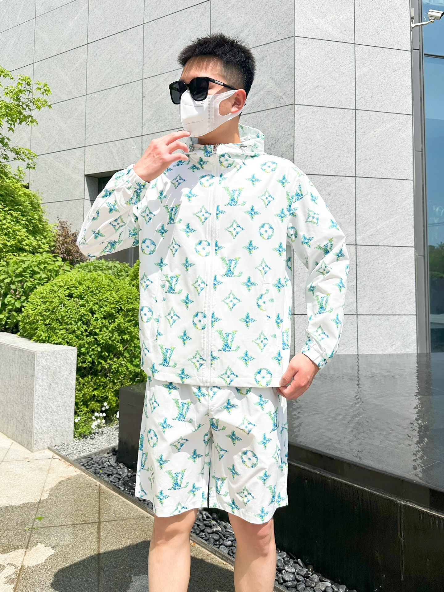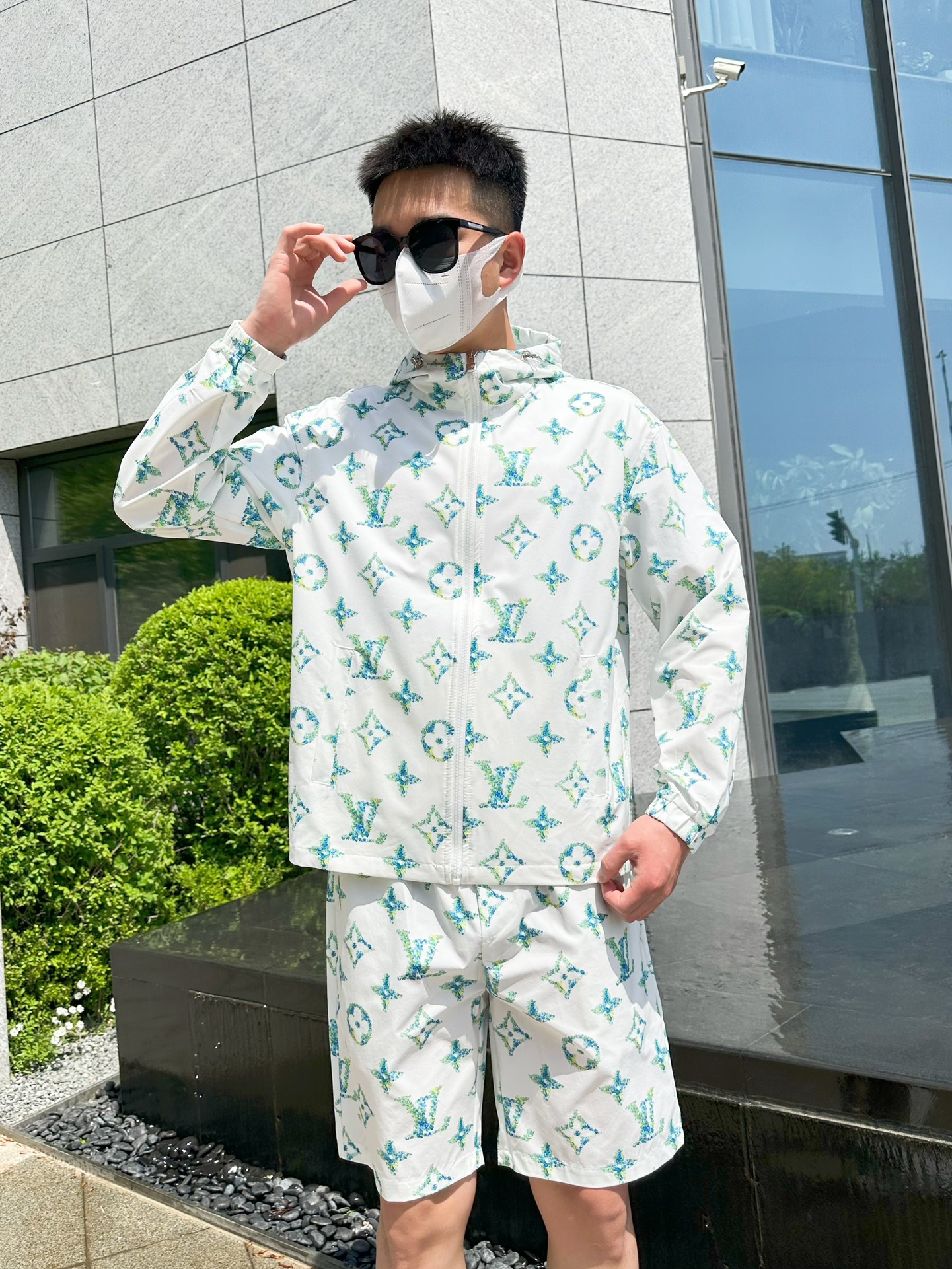路易威登LV 2025夏季防晒衣短裤套装,海外专柜同步 轻薄高品质面料奢华高级定制 任何人都可以轻松驾驭,客供进口聚纤维面料 手软舒适有型 吸汗透气 ,外贸公司订单,n国内一线代工厂出品,订制高密度面料,过水不变型,奢华上身显年轻,街头时尚居家必备款 m-xxxL L穿175/140斤 下单报身高体重